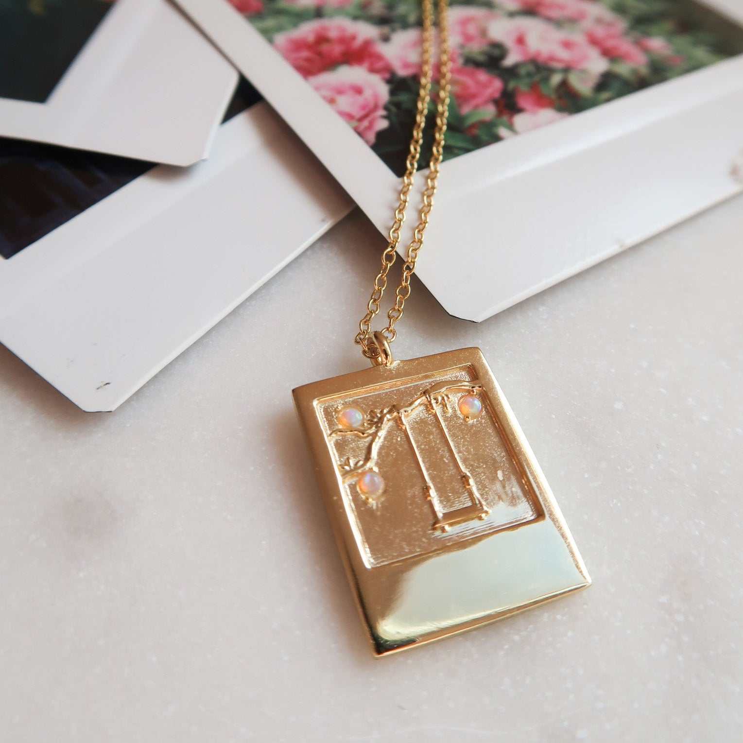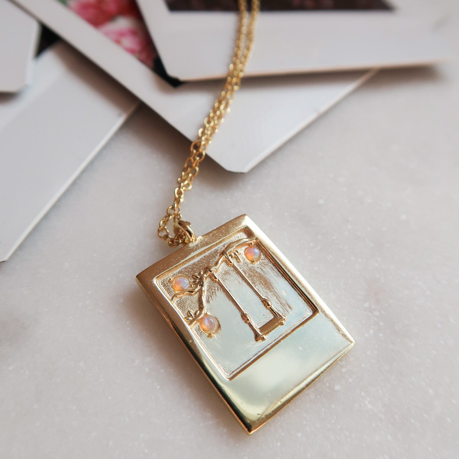 The Memory Lane Polaroid Necklace features a polaroid-inspired pendant engraved with a tree swing & three glistening opal leaves—an emblem of childhood innocence, first friendships, and moments too precious to fade. A tribute to nostalgia, this necklace is designed to capture the magic of days spent chasing fireflies, sharing secrets, and dreaming under open skies. Whether you’re reminiscing about the past or carrying a piece of it with you into the future, the Memory Lane Necklace is a wearable keepsake—proof that some memories never fade, they just grow fonder with time.