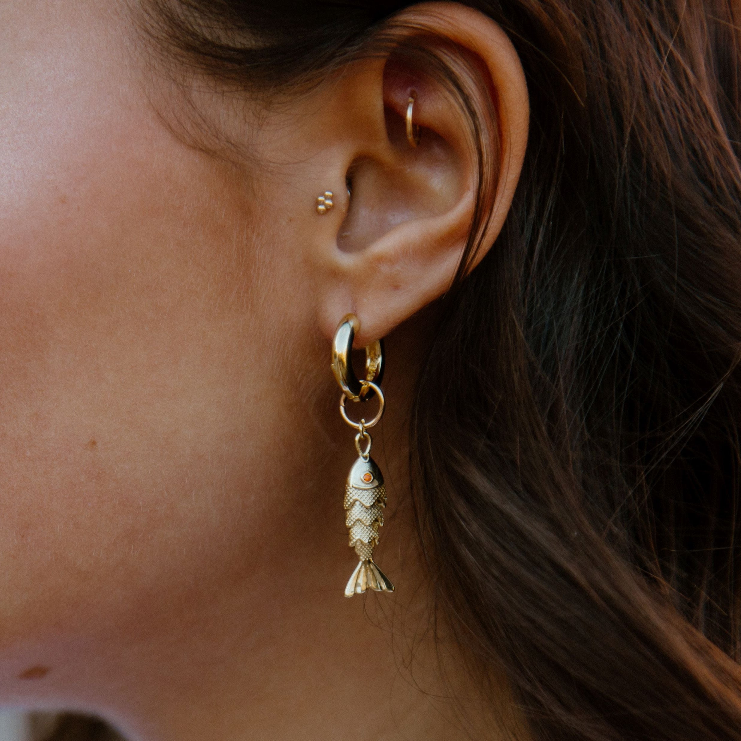 The Lost in the Drift Earrings capture the feeling of floating between places, where time slows and the world feels endless. These delicate fish-shaped earrings shimmer and wiggle, like sunlit ripples on an open road's forgotten lake. Inspired by the uncharted moments of a road trip—the detours, the daydreams, the quiet pauses in between—they’re a tribute to wanderlust and the stories we collect along the way. Whether you're chasing horizons or simply longing for the freedom of the unknown, these earrings are a reminder to surrender to the drift and see where the current takes you.