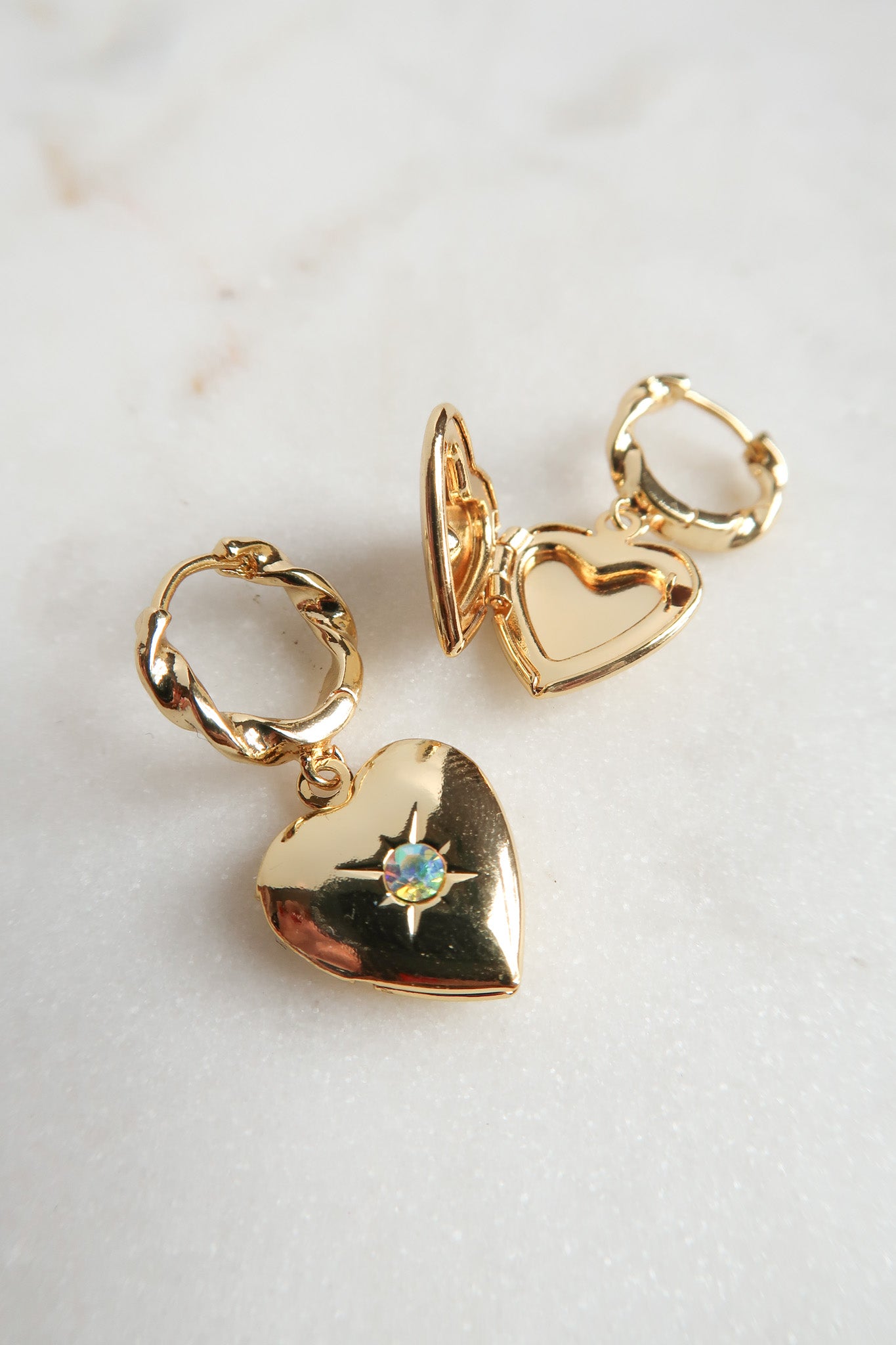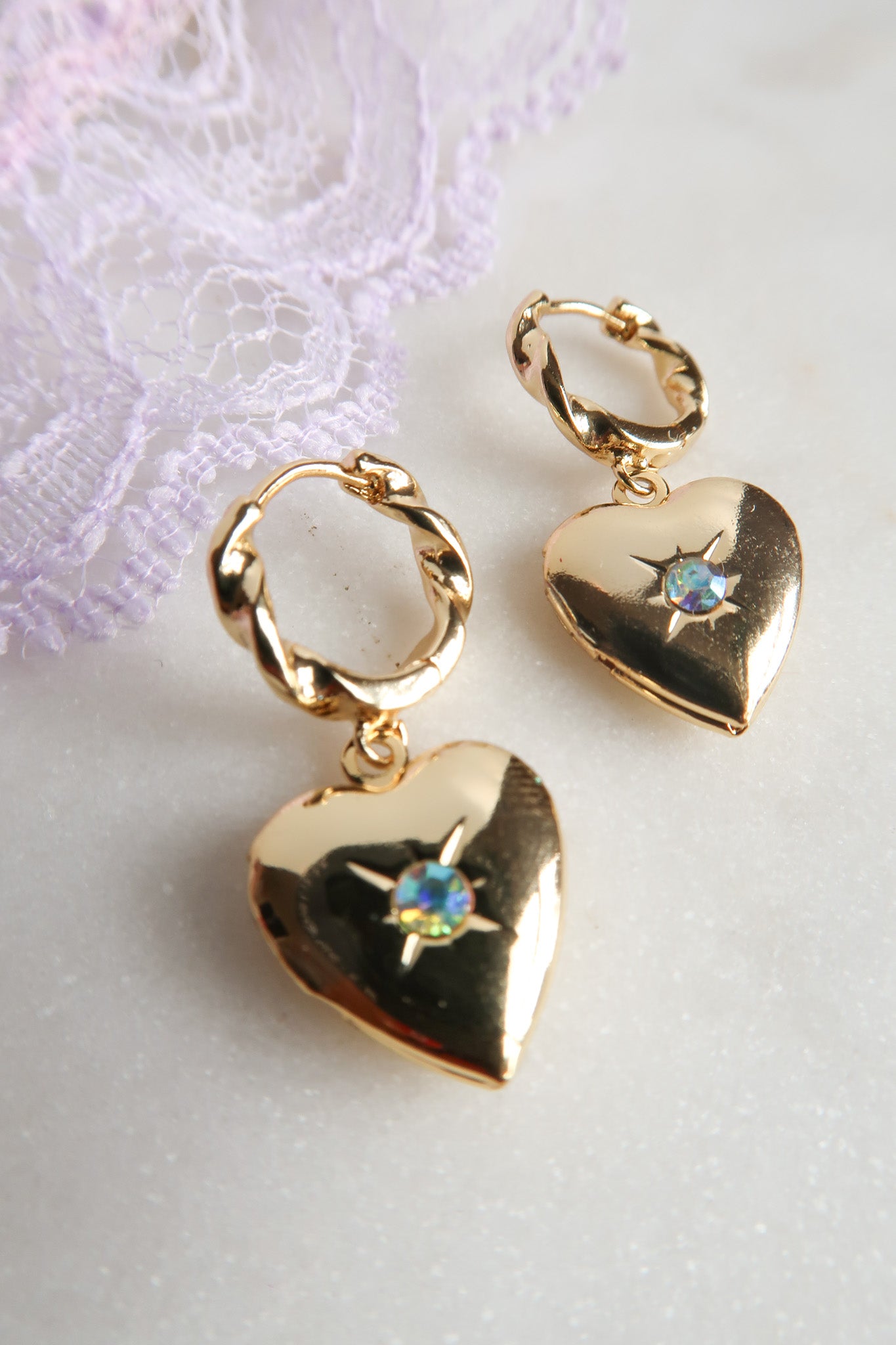 Yearning for You huggie earrings are a quiet ode to longing, secret glances, and the soft ache of hearts in love but not together. Tiny heart lockets cradle iridescent cubic zirconia, catching light like memories that shimmer in the mind long after a goodbye. These earrings are for those who feel deeply, yearn quietly, and carry the hope of one day finding your way back to each other.
