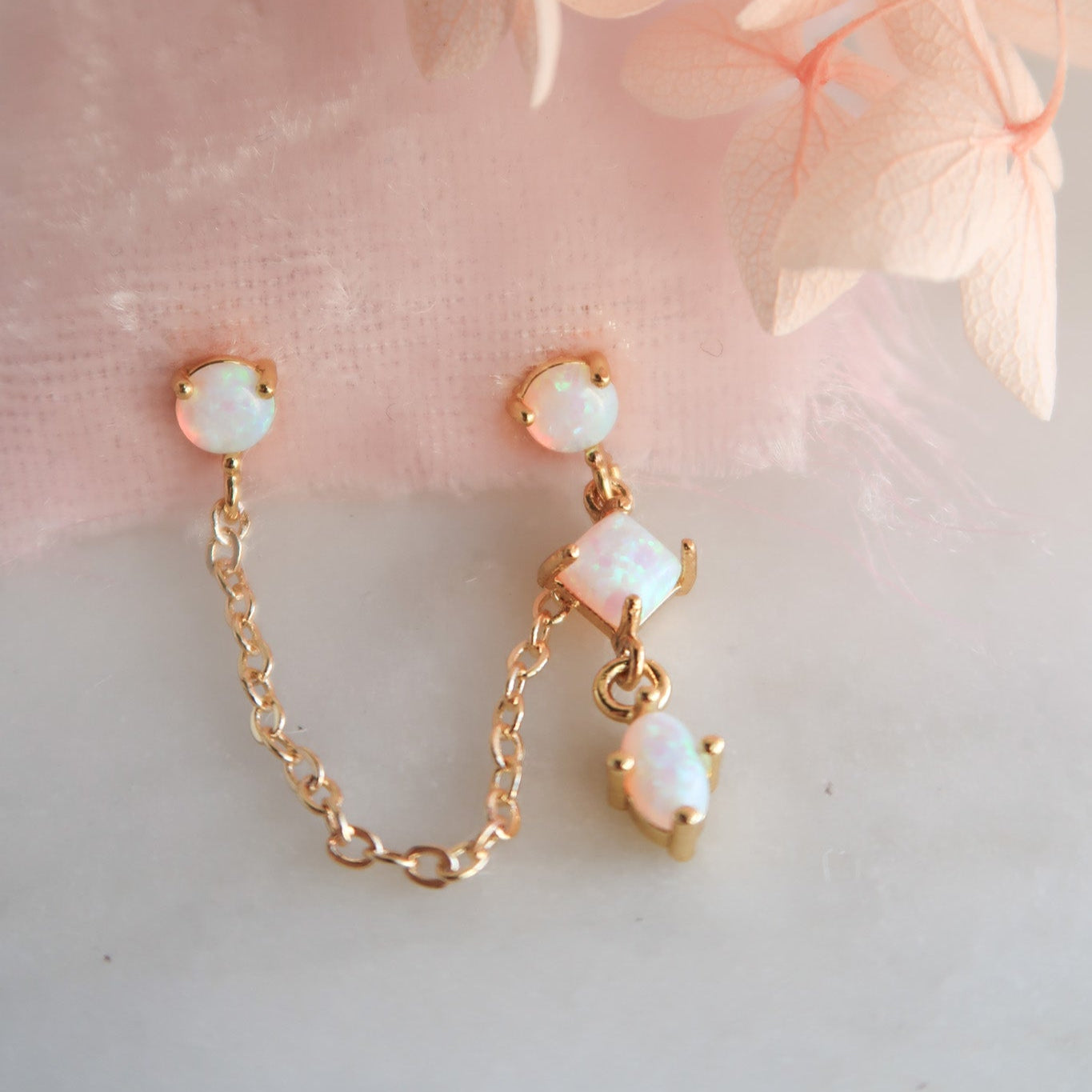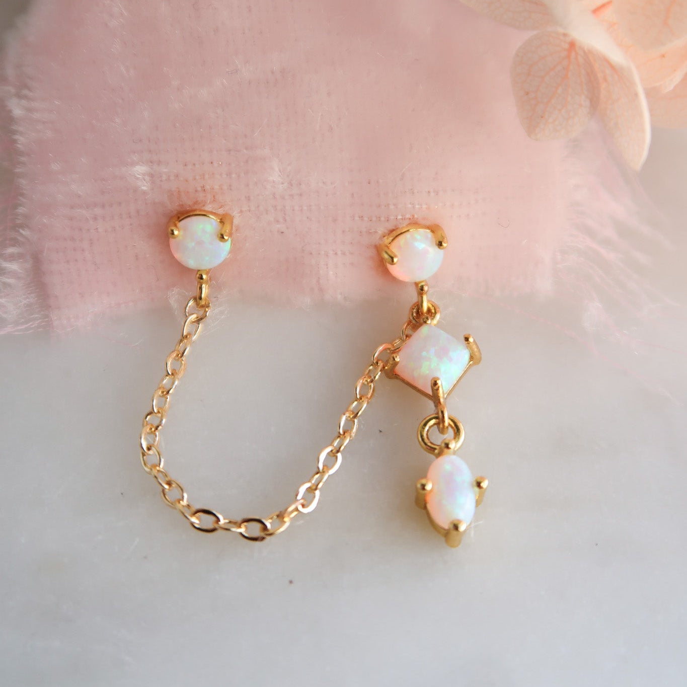 - Gold-plated Brass Opal Earring Posts with Sterling Silver Stick x 2