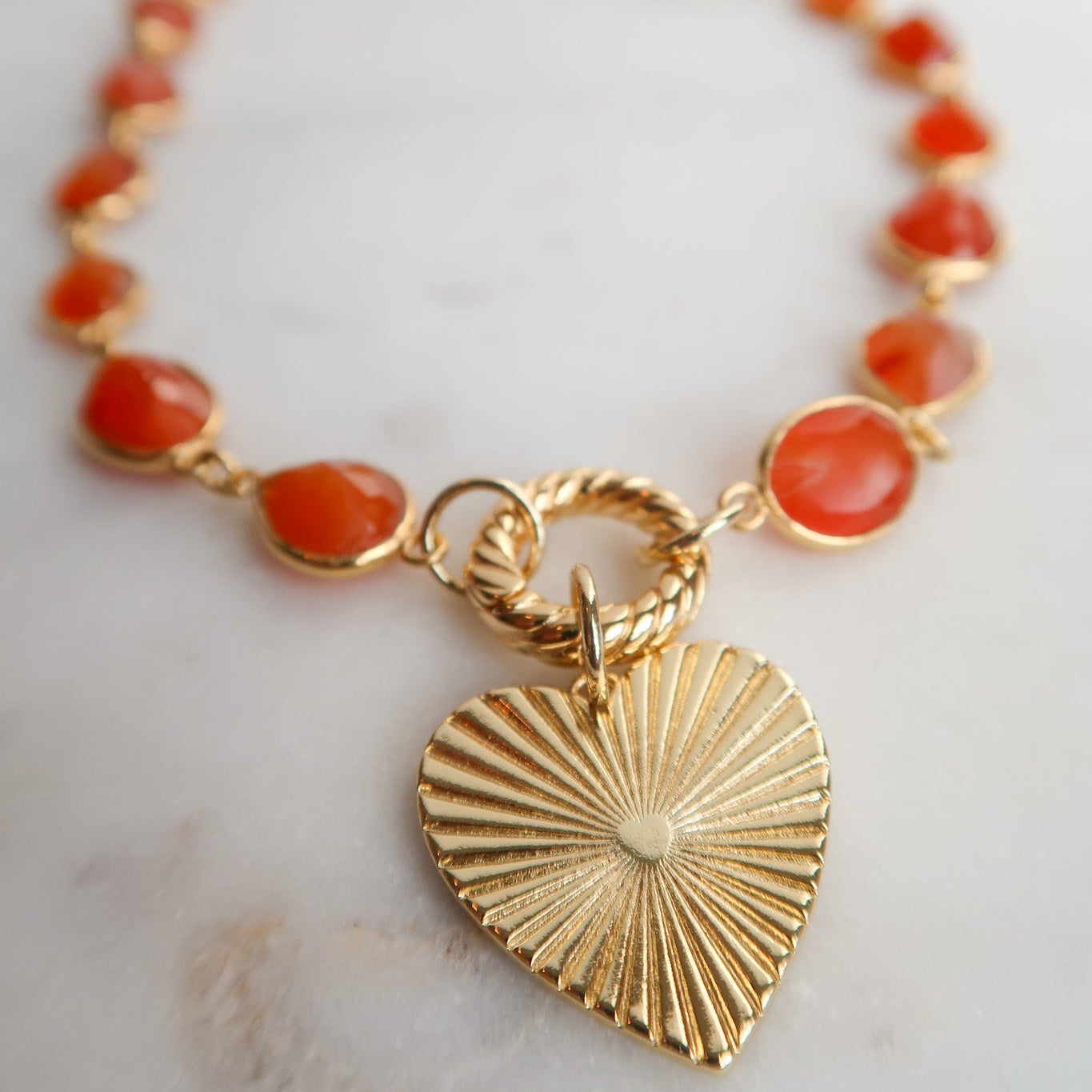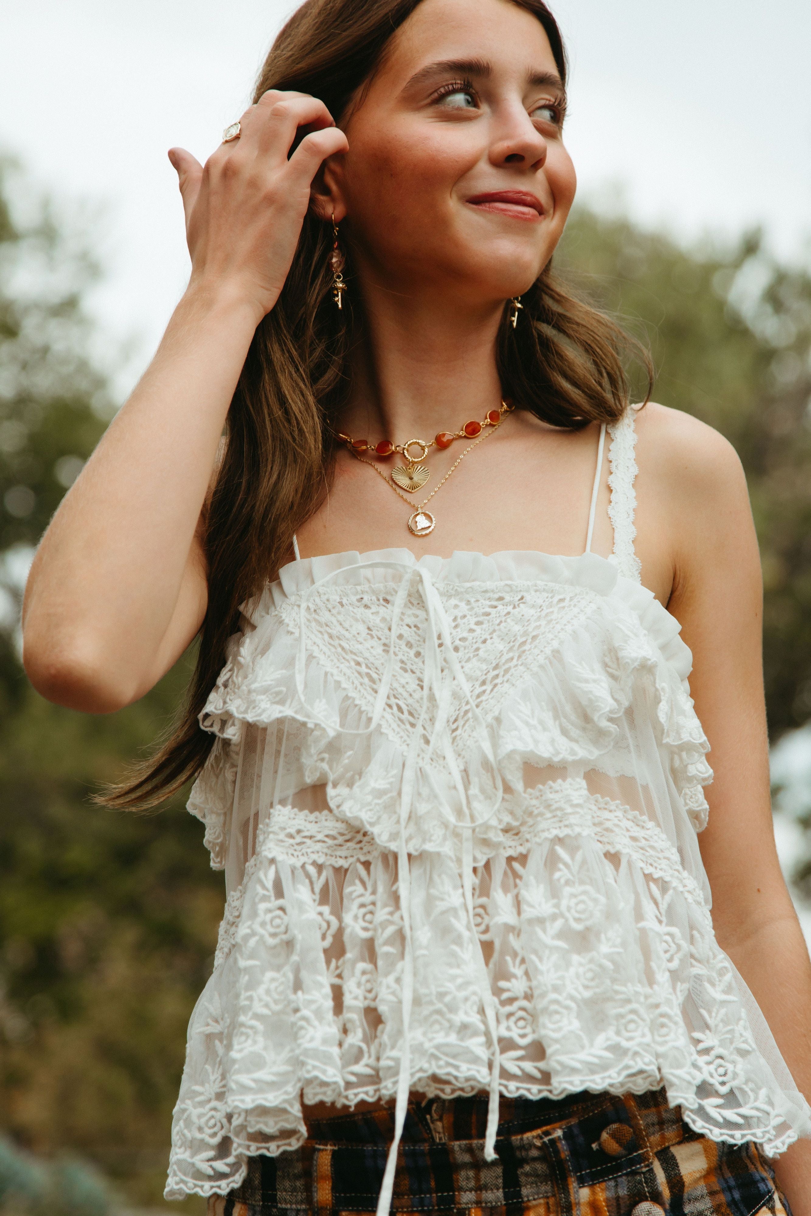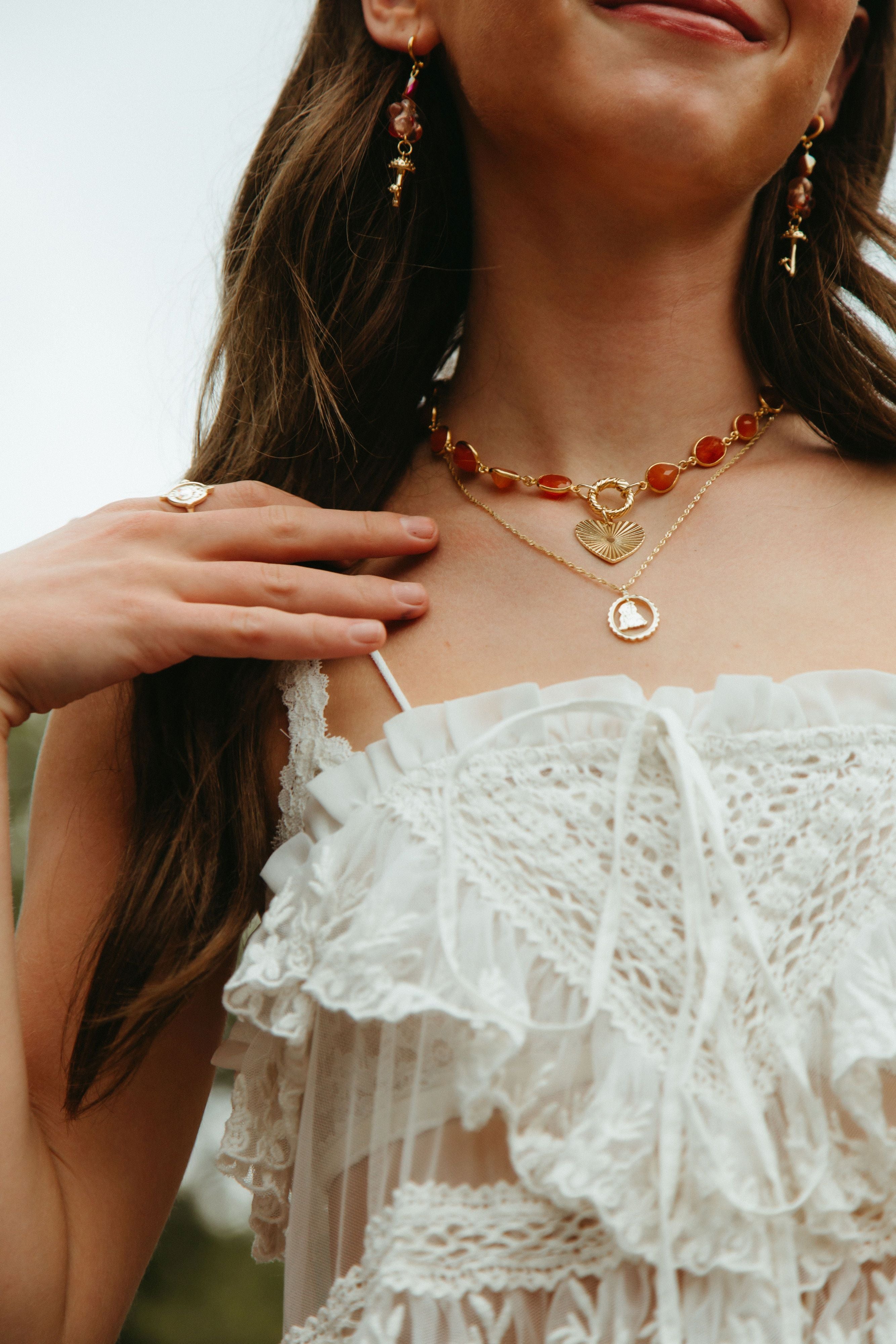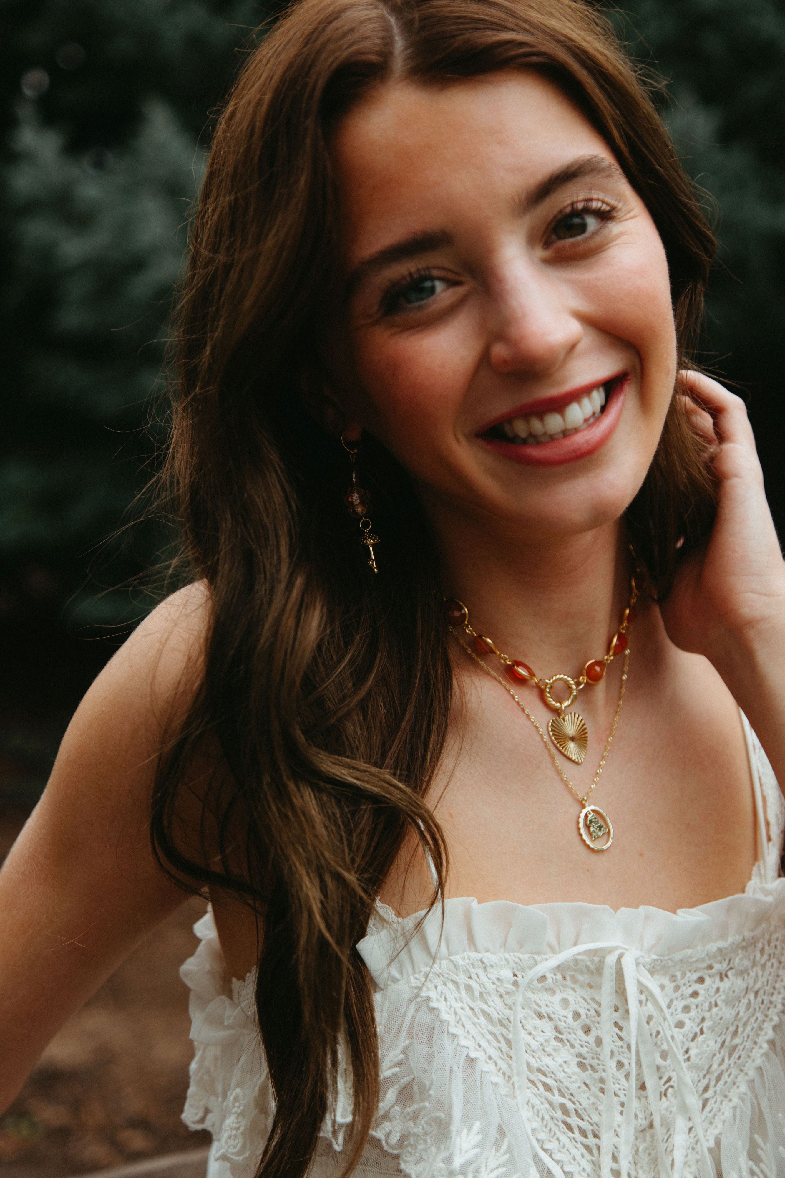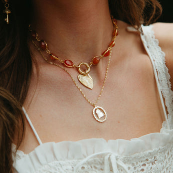 Margins of Autumn Necklace is an ode to the golden light flares of fleeting seasons, where leaves whisper and sunlight spills like honey. Featuring a warm carnelian chain and a tender heart charm, this necklace carries the bittersweet ache of crisp fall evenings, cozy walks through amber fields, and the gentle magic of moments that linger just at the edges of memory. Margins of Autumn is perfect for those who cherish the warmth in change, the beauty in small moments, and the poetry of the season tucked close to the heart.