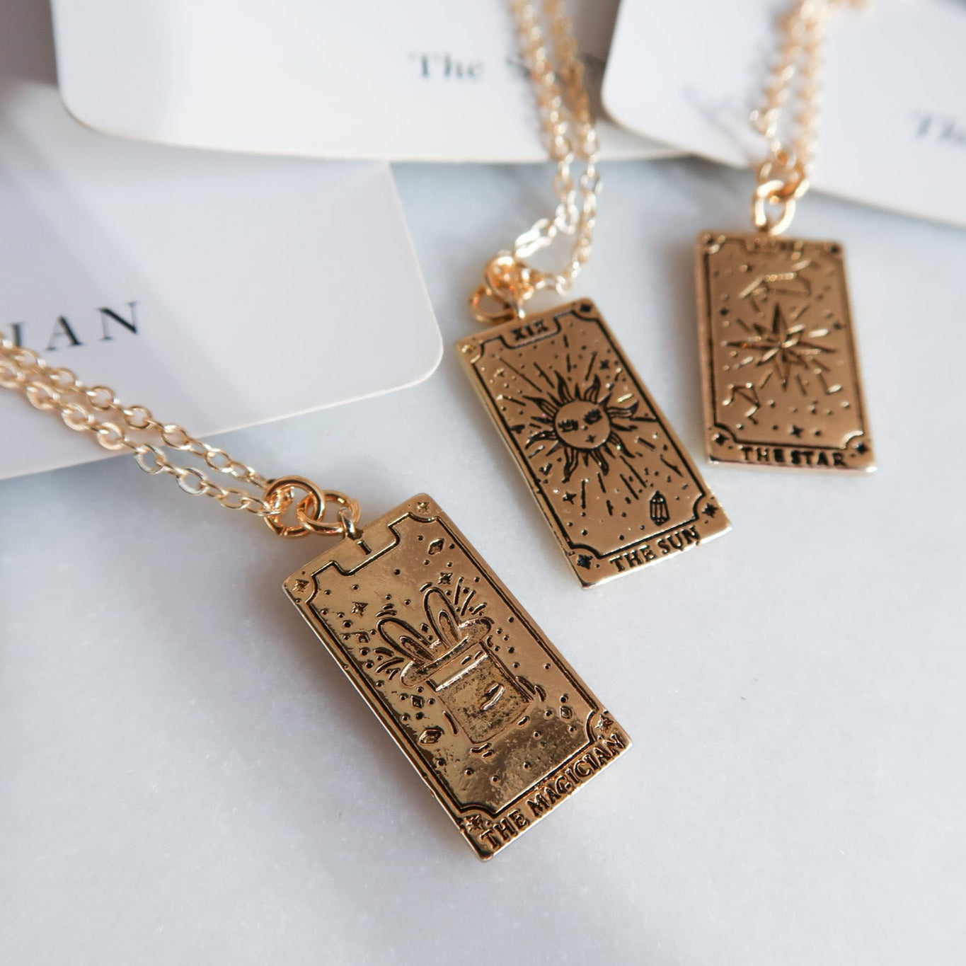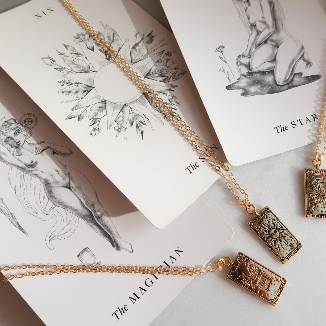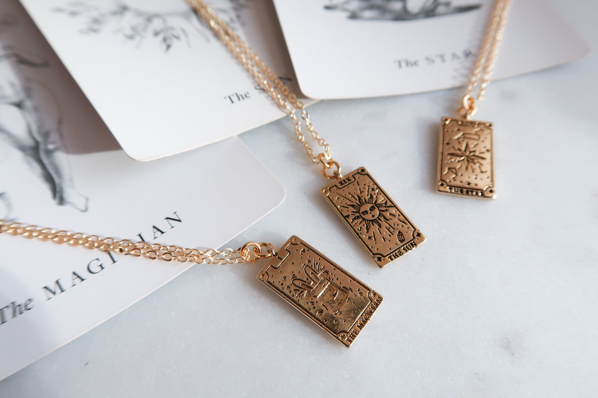 This listing is for 1 MYSTERY tarot card necklace intended to be a reading of what you need to hear right now!