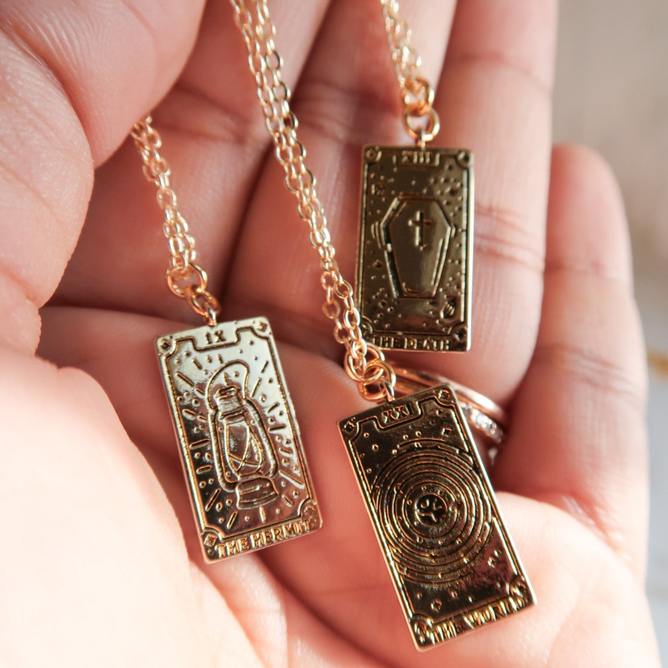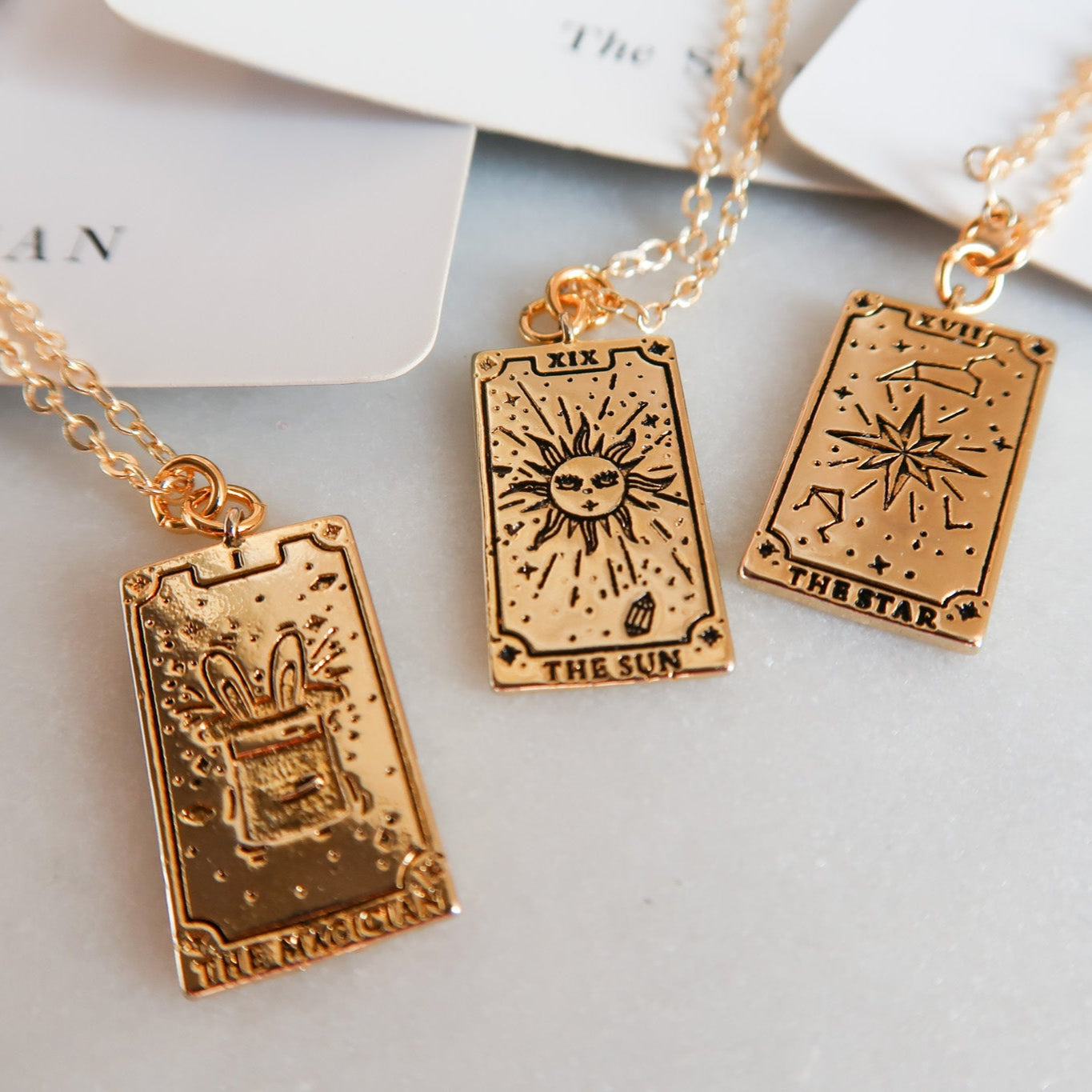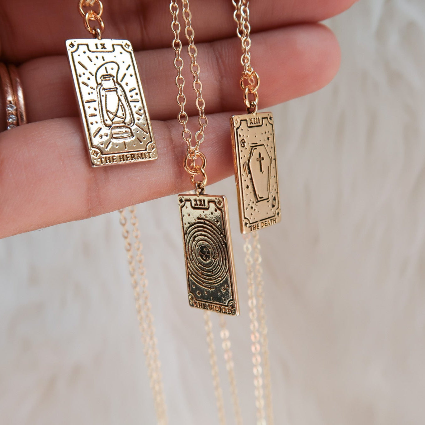This listing is for 1 MYSTERY tarot card necklace intended to be a reading of what you need to hear right now!