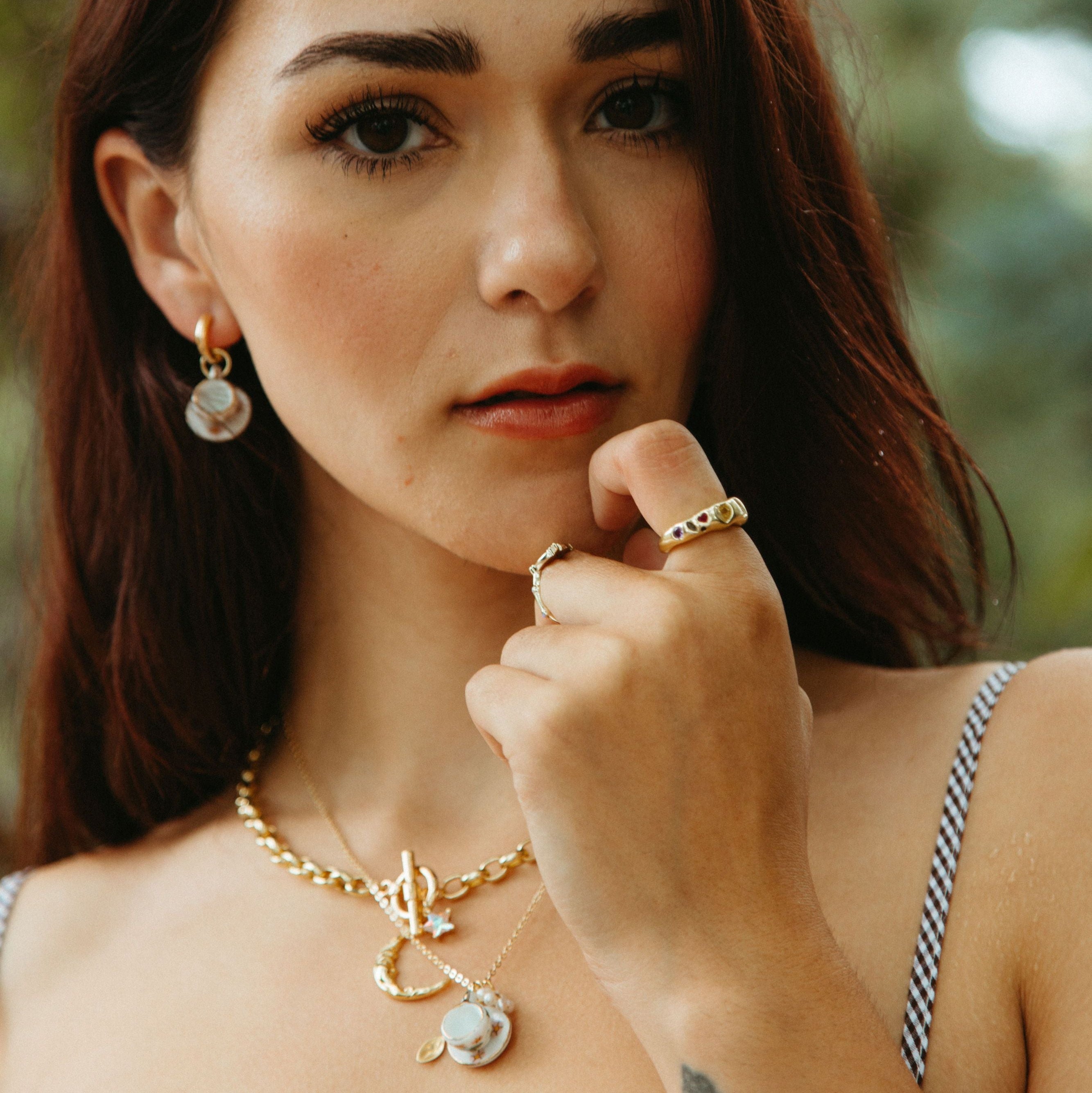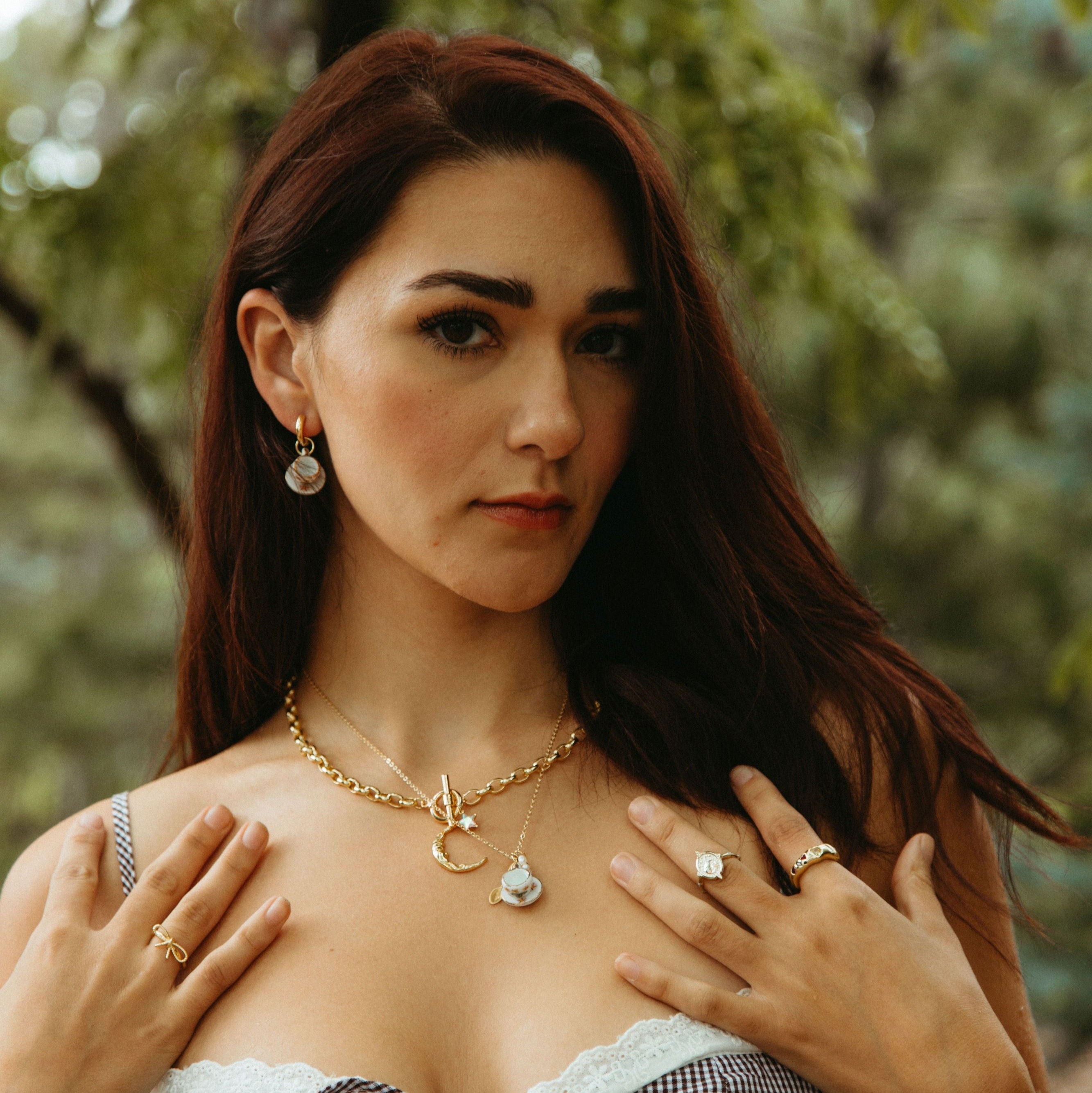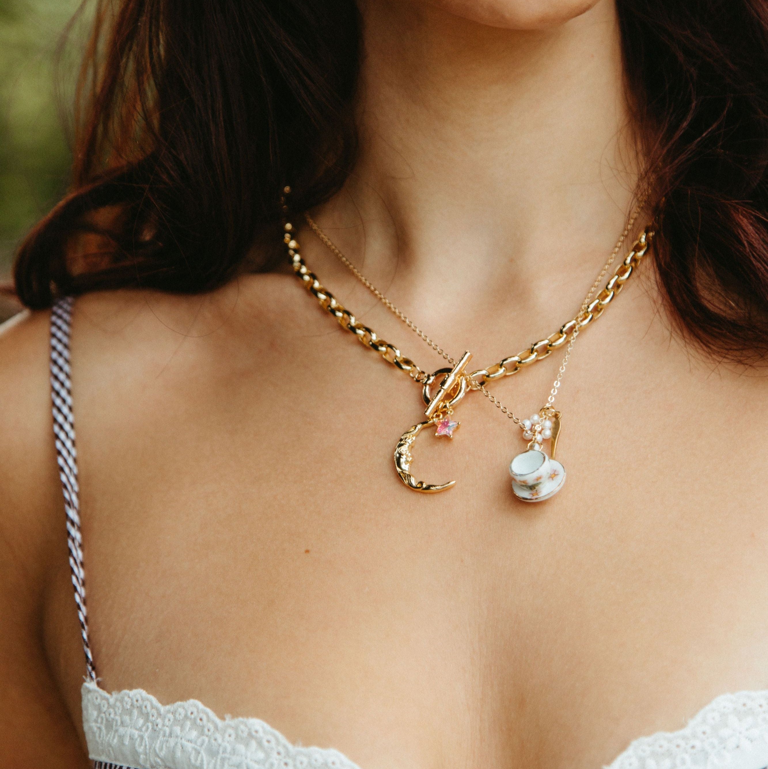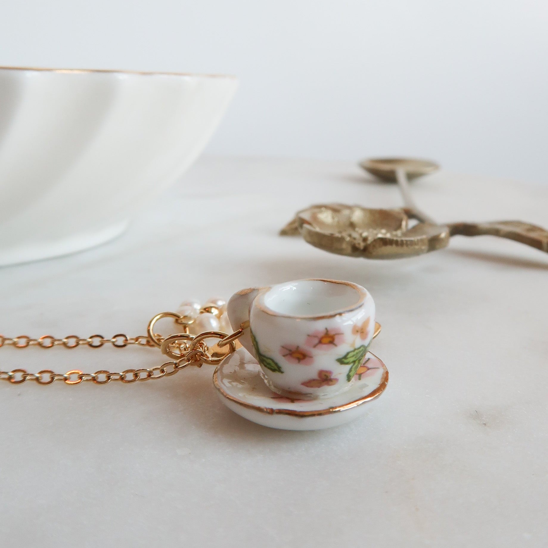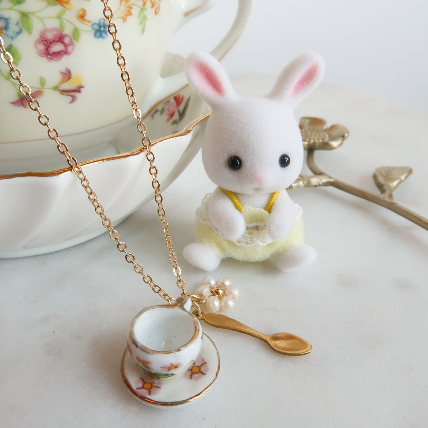 The Spot of Tea Necklace is a delicate ode to cozy rituals and fleeting daydreams, crafted with a ceramic celestial teacup, a miniature spoon, and a pearl flower charm. Like a storybook scene steeped in warmth, this whimsical charm necklace captures the magic of quiet mornings, shared laughter over tea, and the sweetness of slowing down to savor life’s simplest joys. Perfect for dreamers, romantics, and lovers of everyday enchantment, Spot of Tea is a wearable keepsake of comfort, imagination, and gentle beauty.