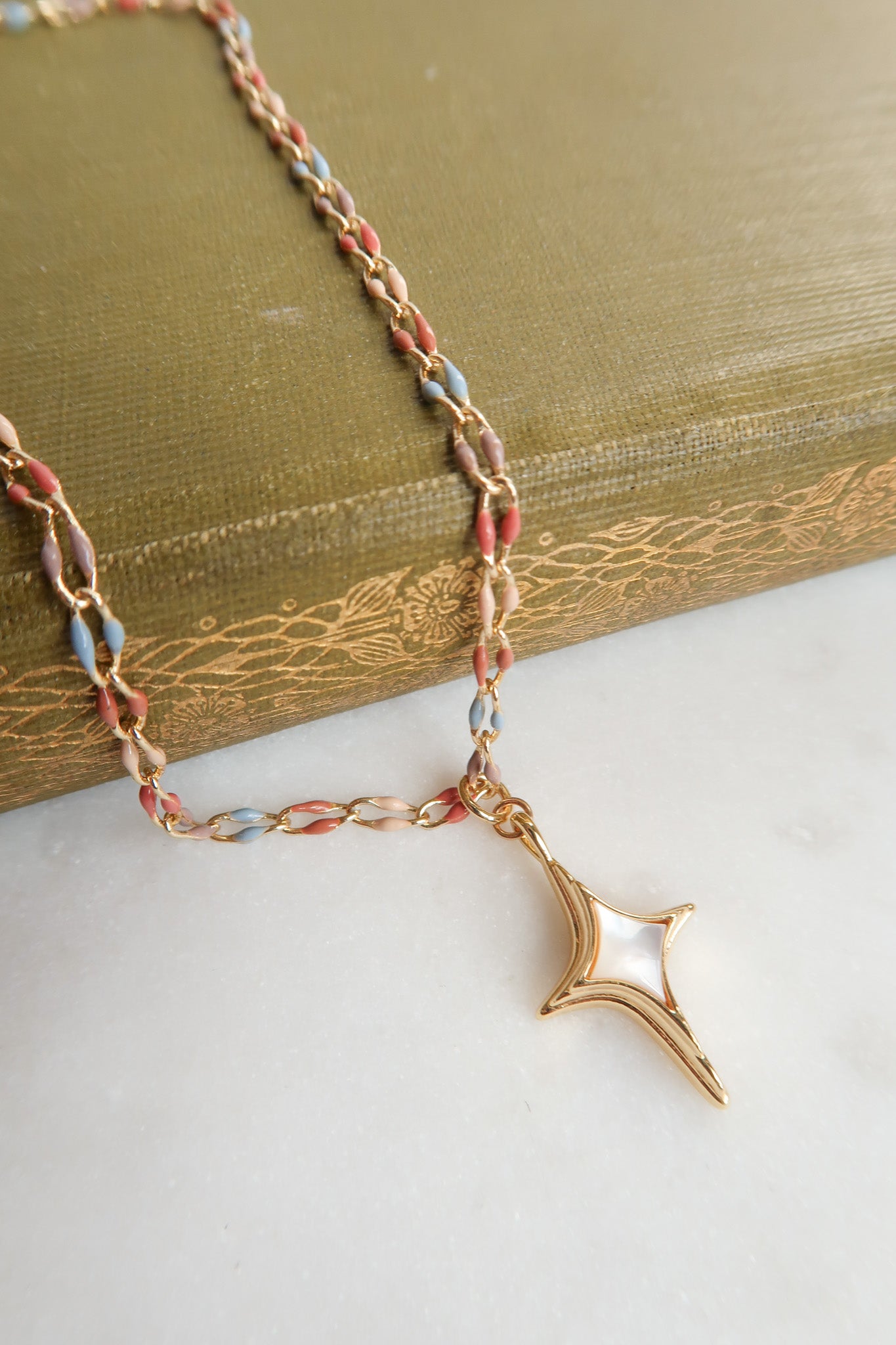 The Ghost of Last September Necklace is a whisper of memories carried on crisp autumn air, where tiny stars glint like fleeting moments we can’t hold. Its delicate autumn colored enamel chain cradles a single star charm, echoing the soft ache of nostalgia and the bittersweet thrill of remembering what once was. Perfect for dreamers who treasure the poetry of past seasons, the necklace turns everyday wear into a reflection of fading moonlight, whispered secrets, and the magic hidden between then and now.