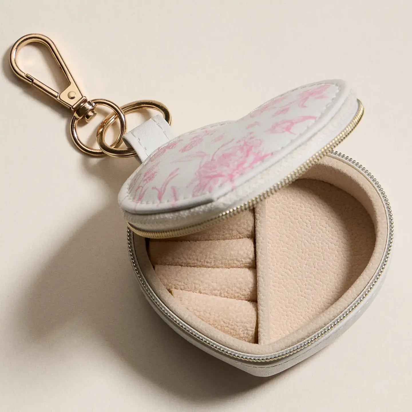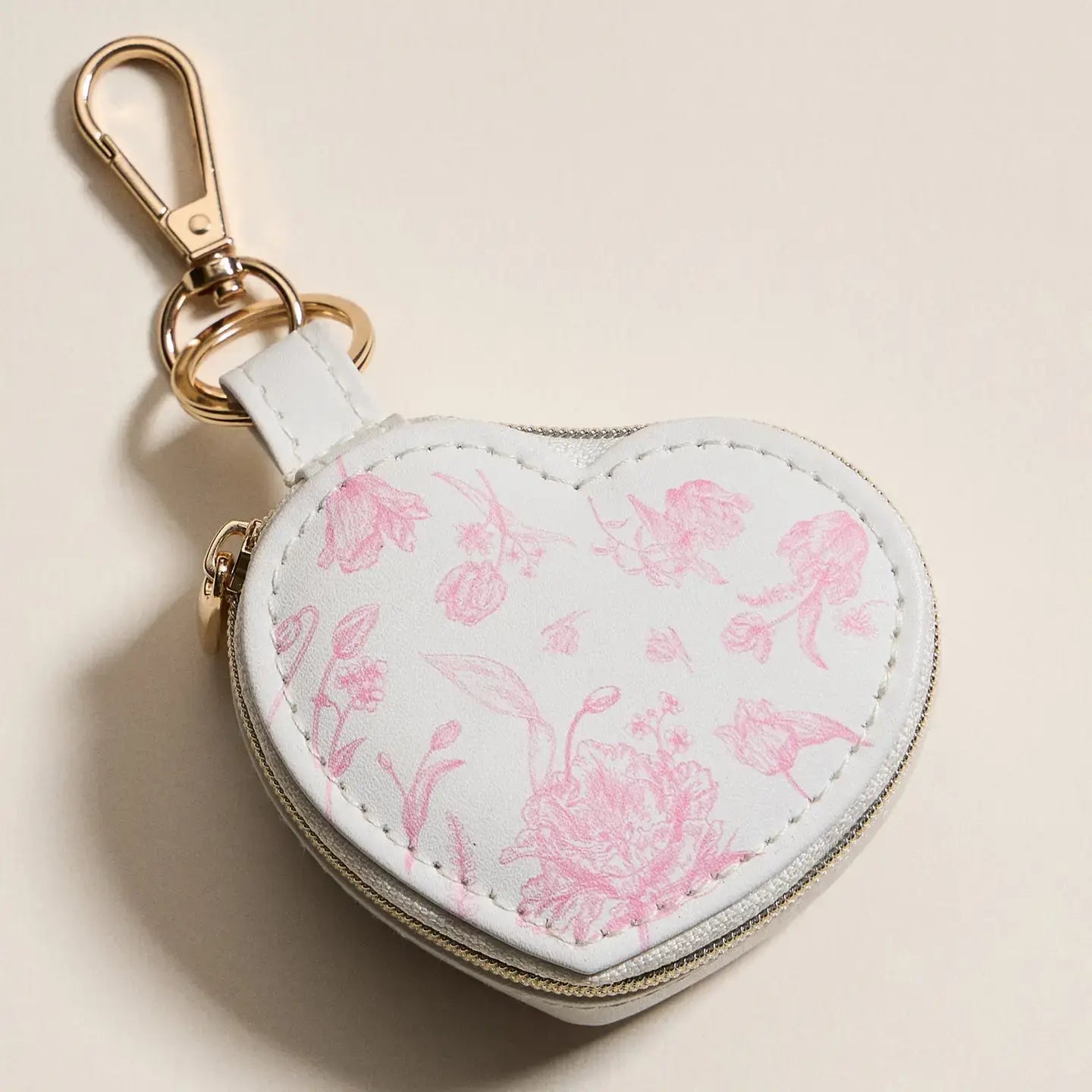 Pink Floral Heart Jewelry Travel Case Keychain