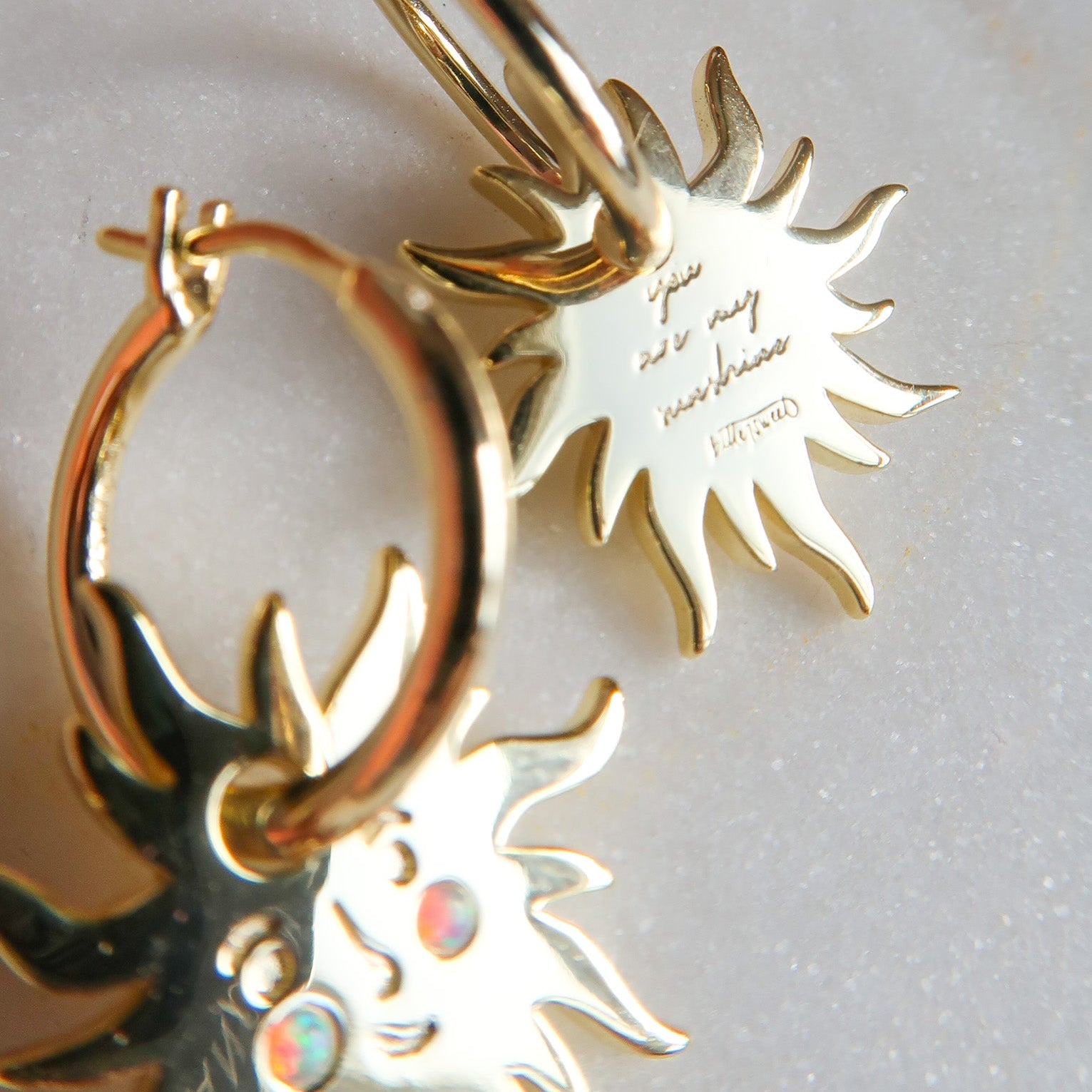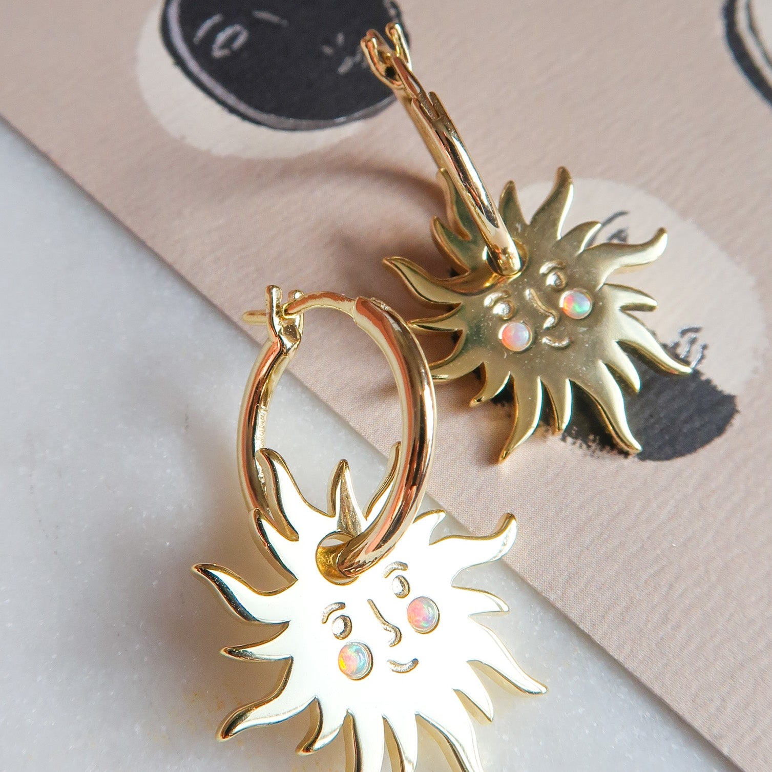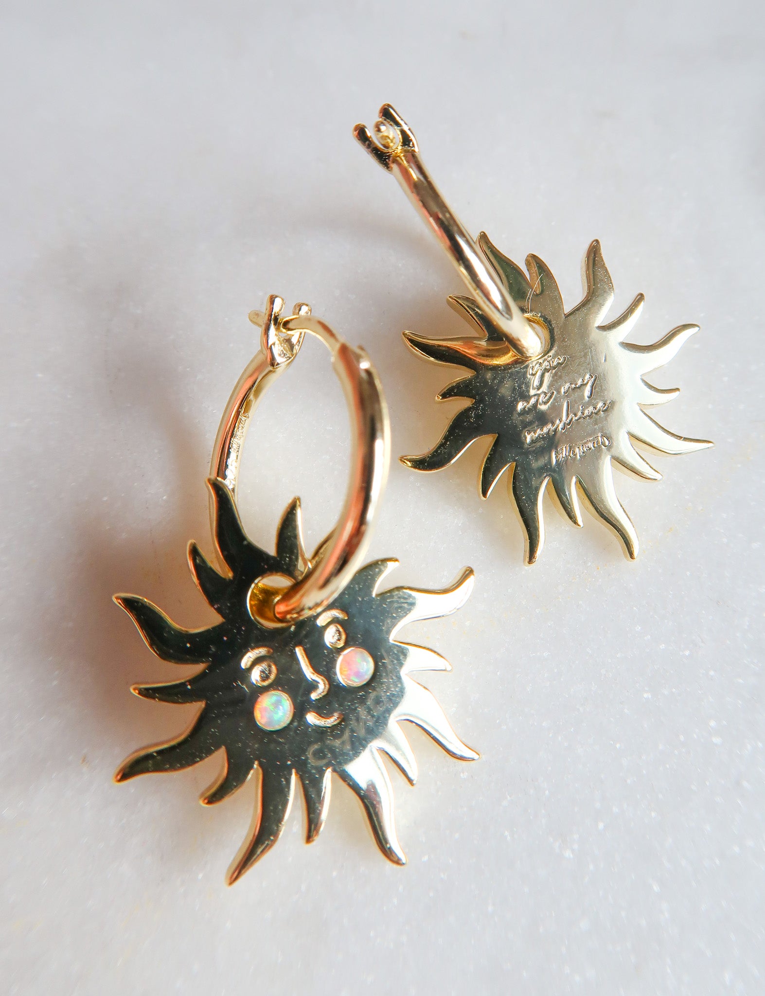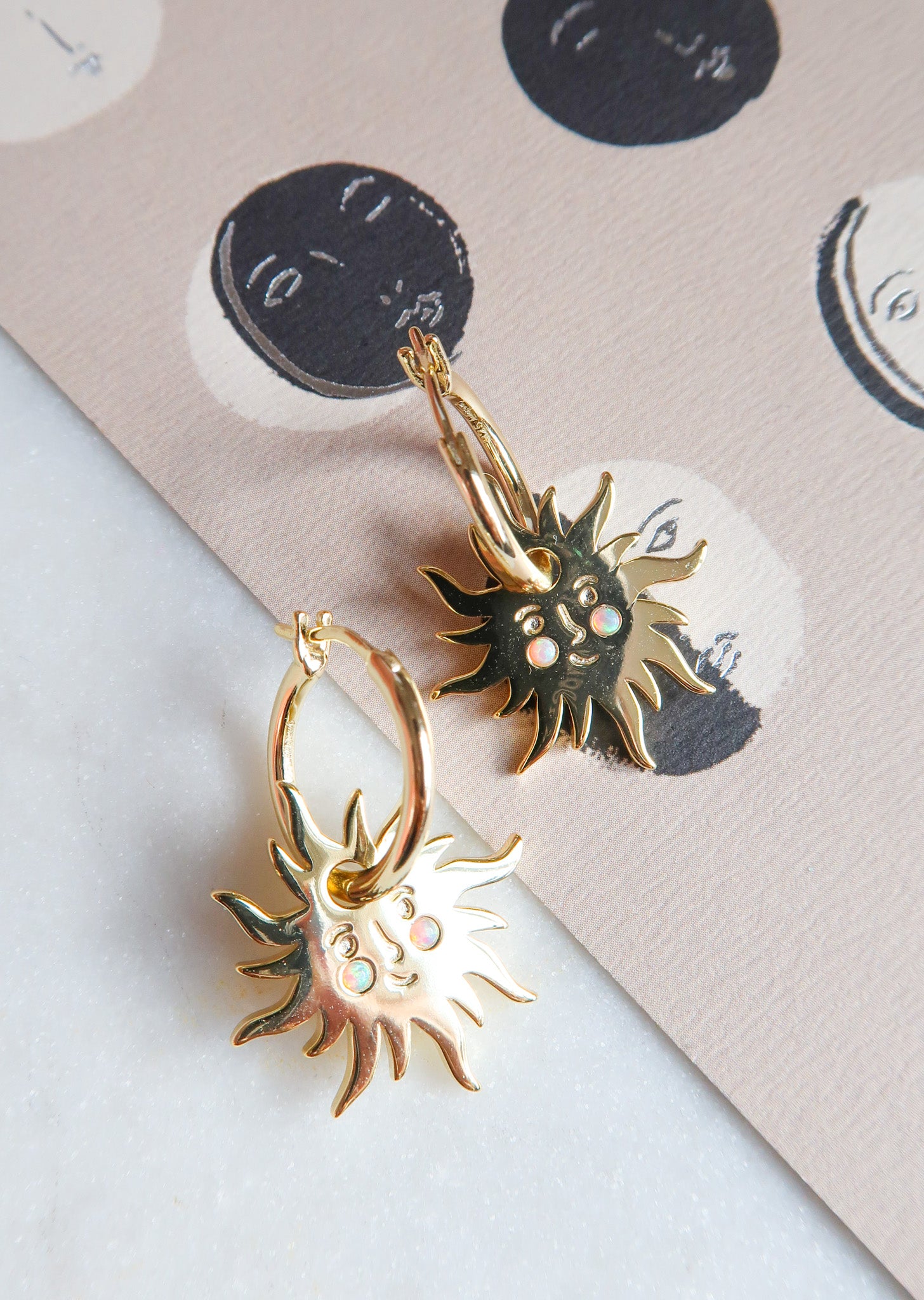 - 14k Gold-plated Sterling Silver Hoop Earrings with Blushing Opal-Adorned Sun Hoop Earrings