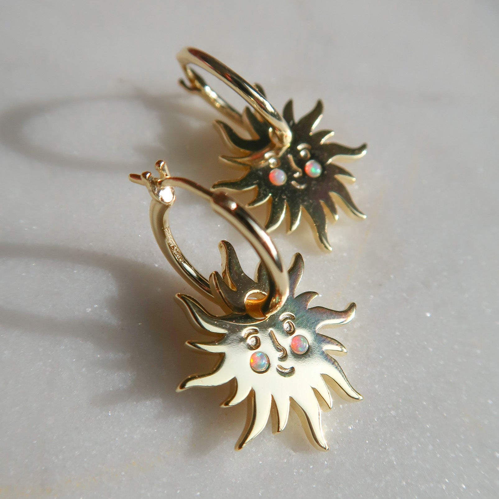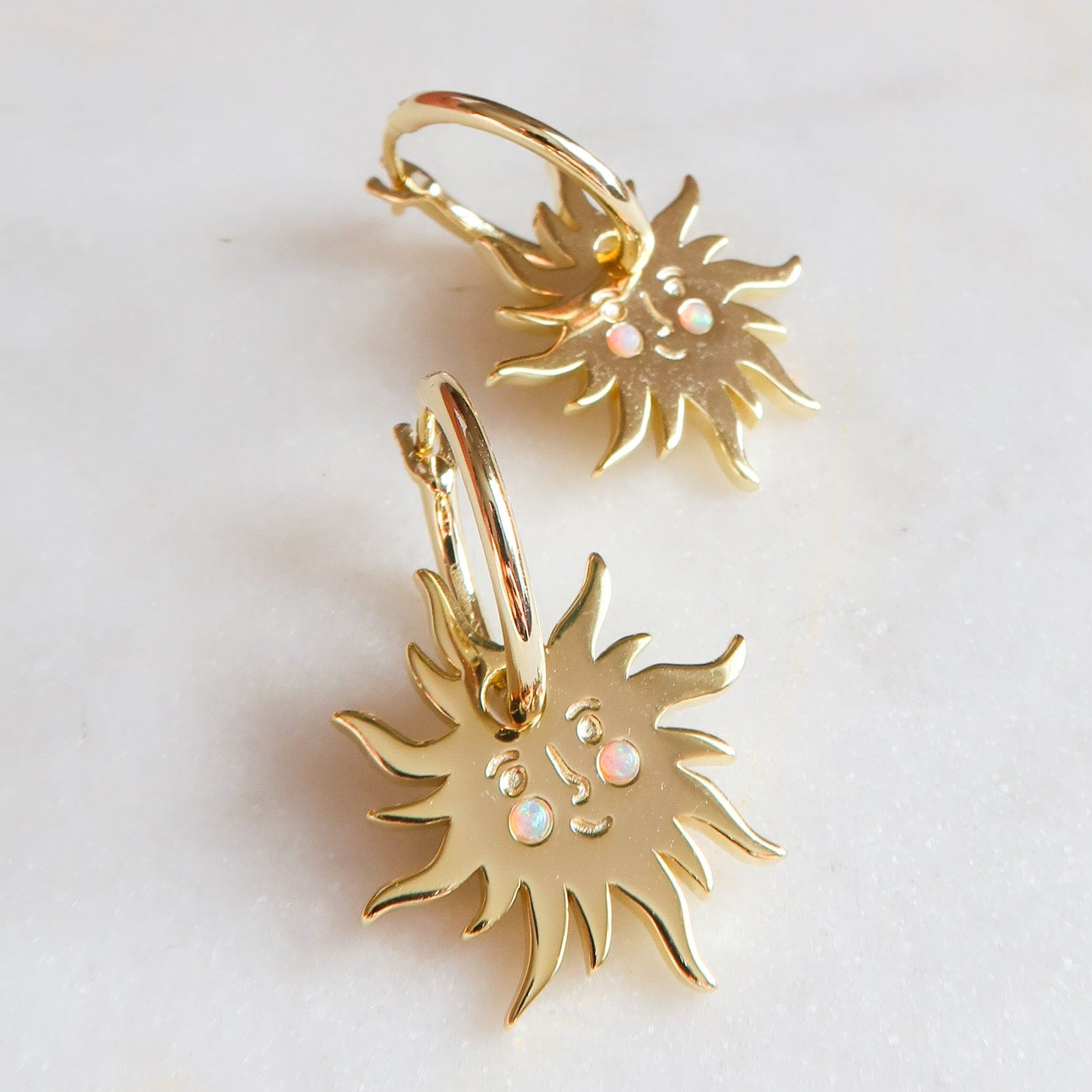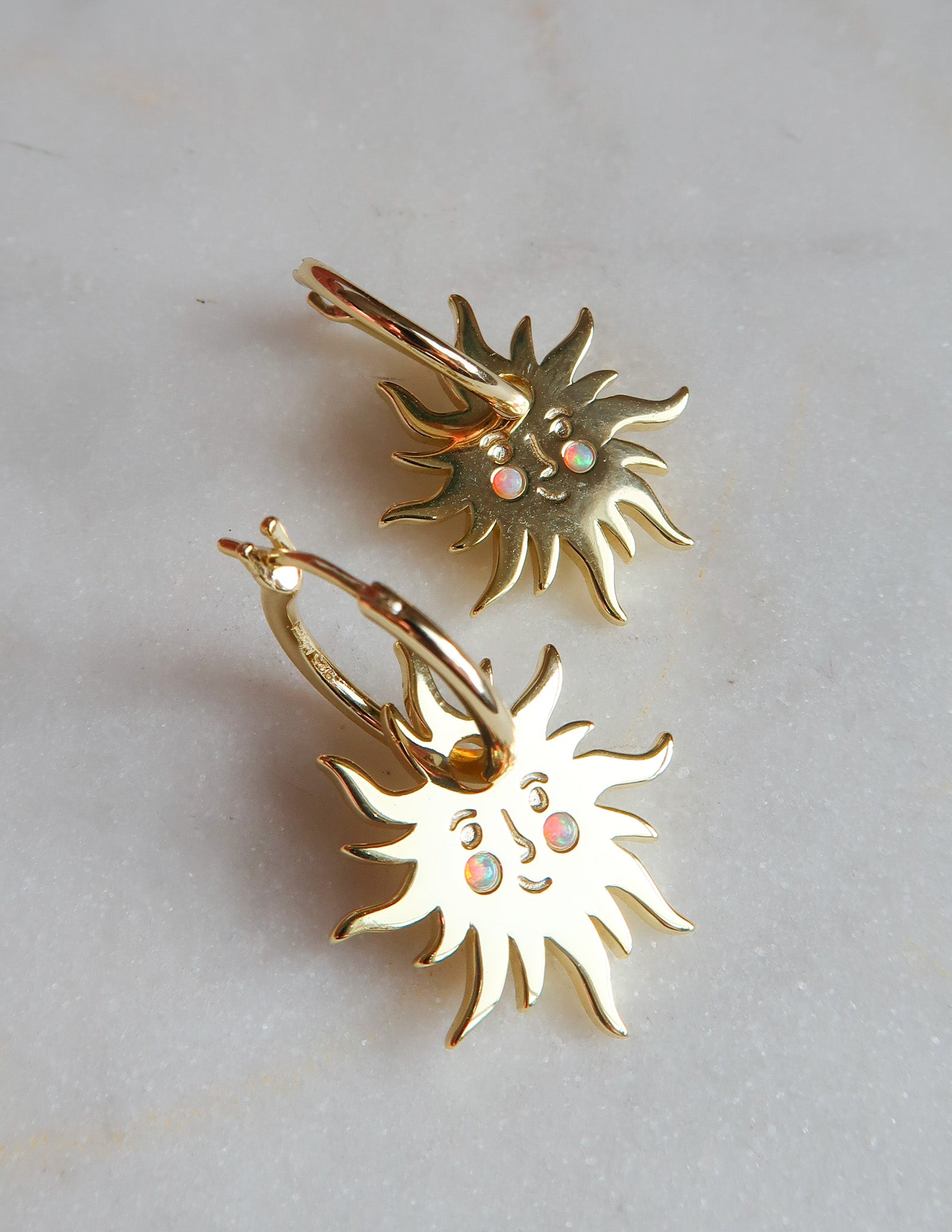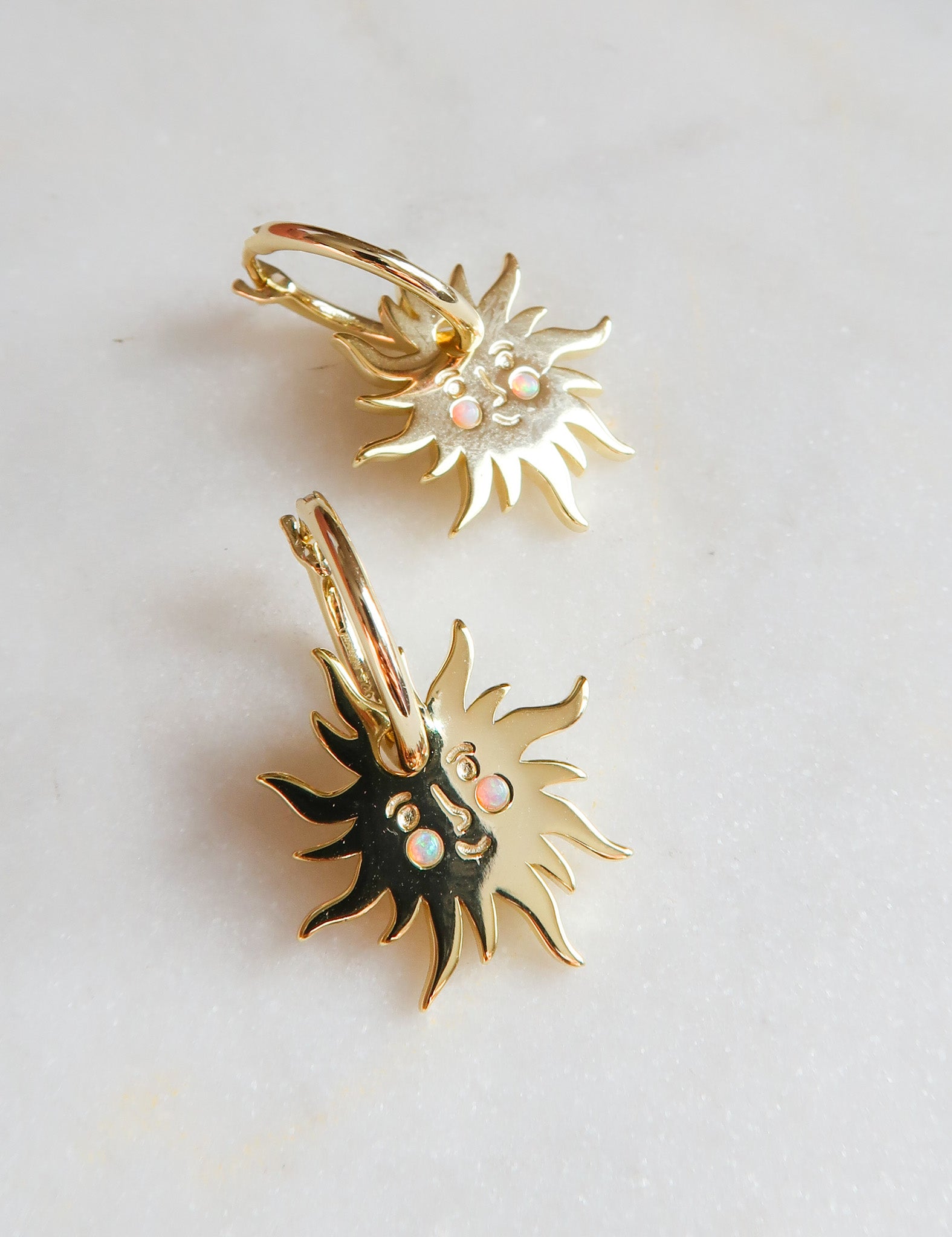- 14k Gold-plated Sterling Silver Hoop Earrings with Blushing Opal-Adorned Sun Hoop Earrings