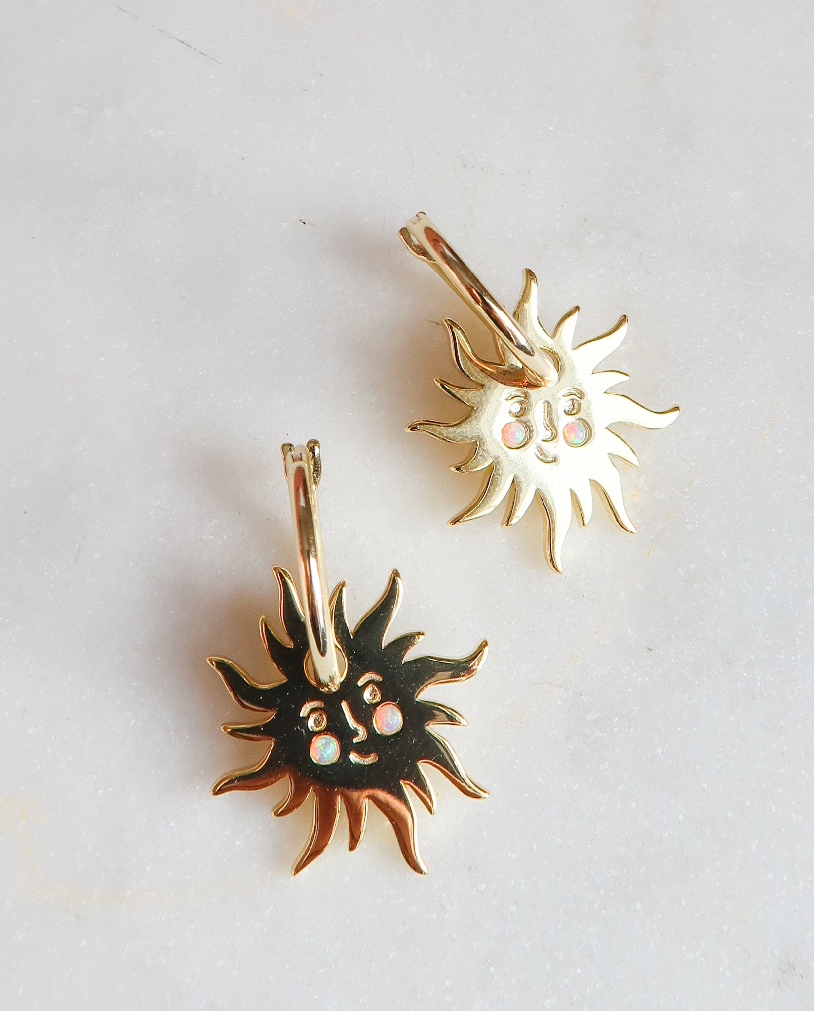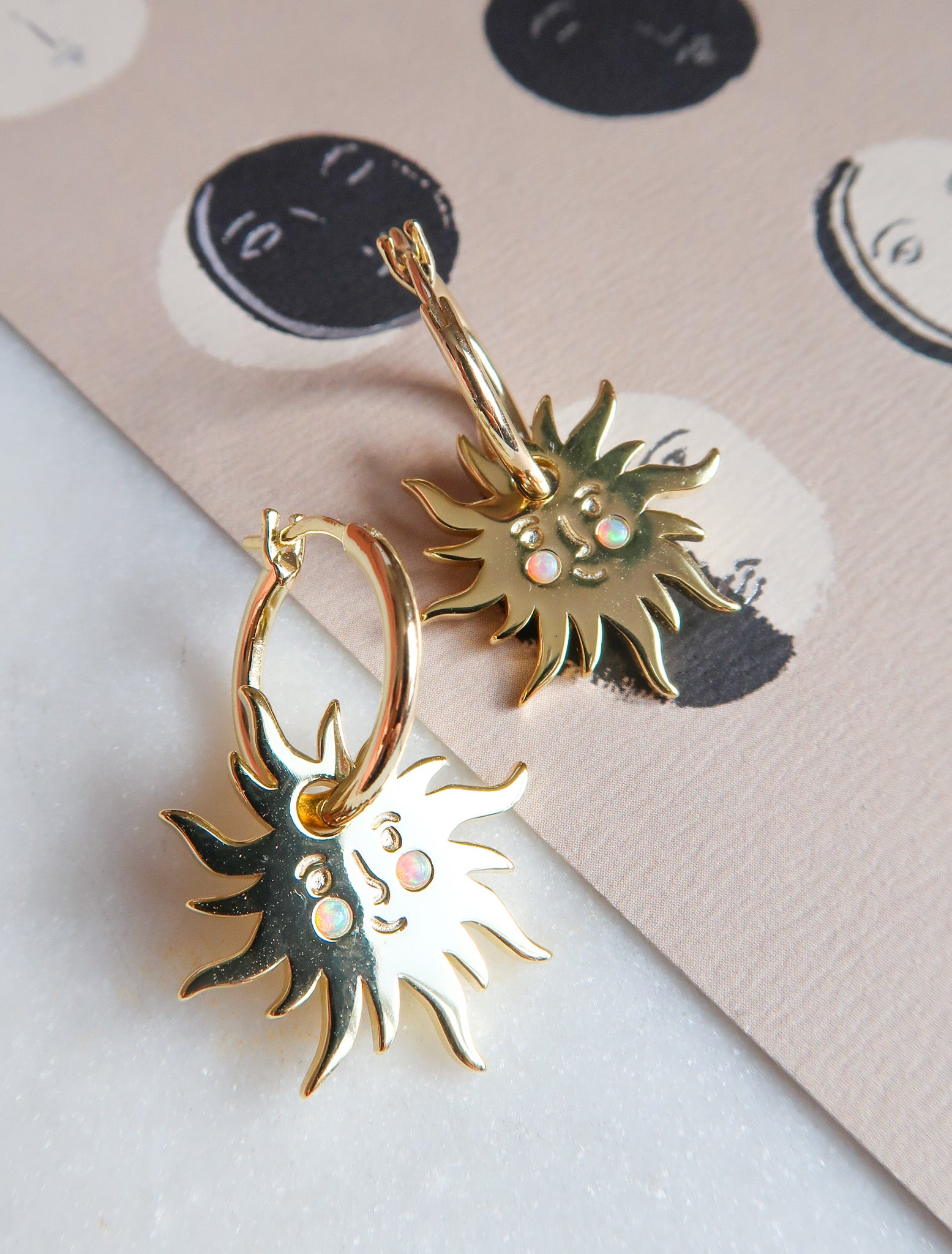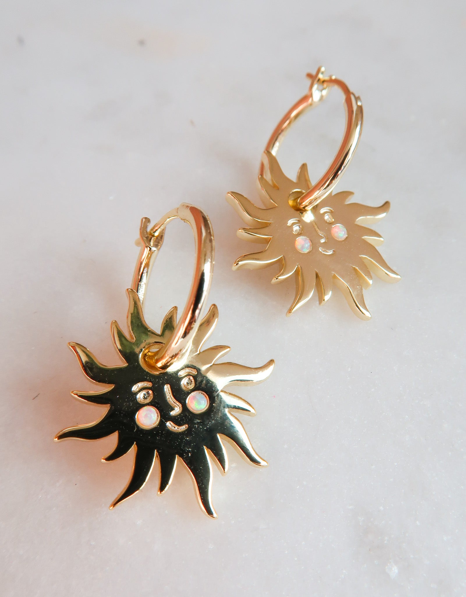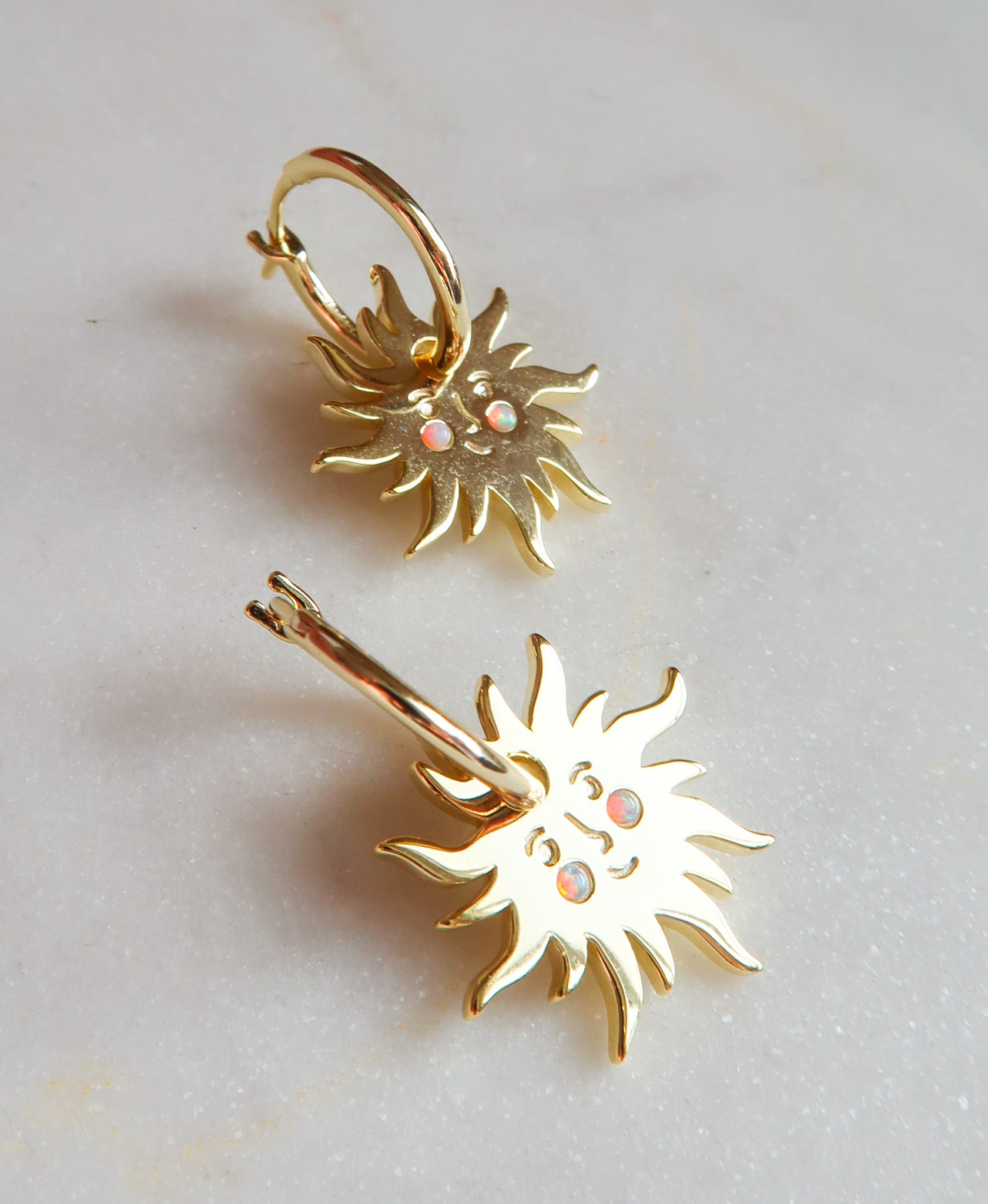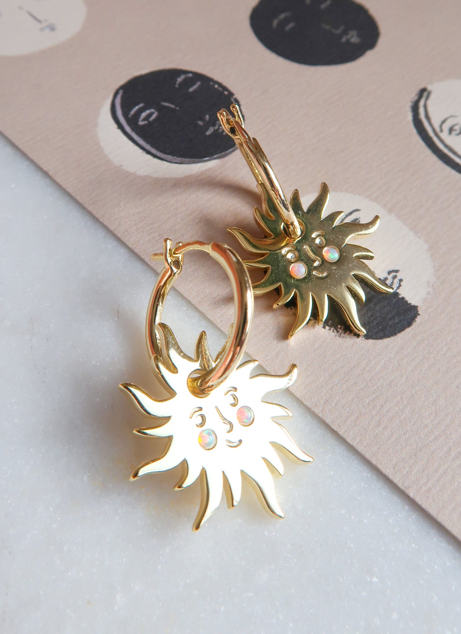 - 14k Gold-plated Sterling Silver Hoop Earrings with Blushing Opal-Adorned Sun Hoop Earrings