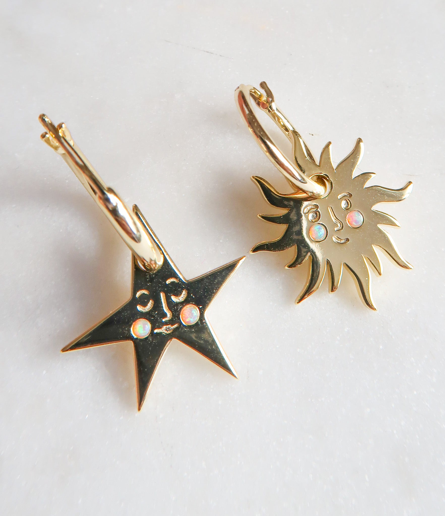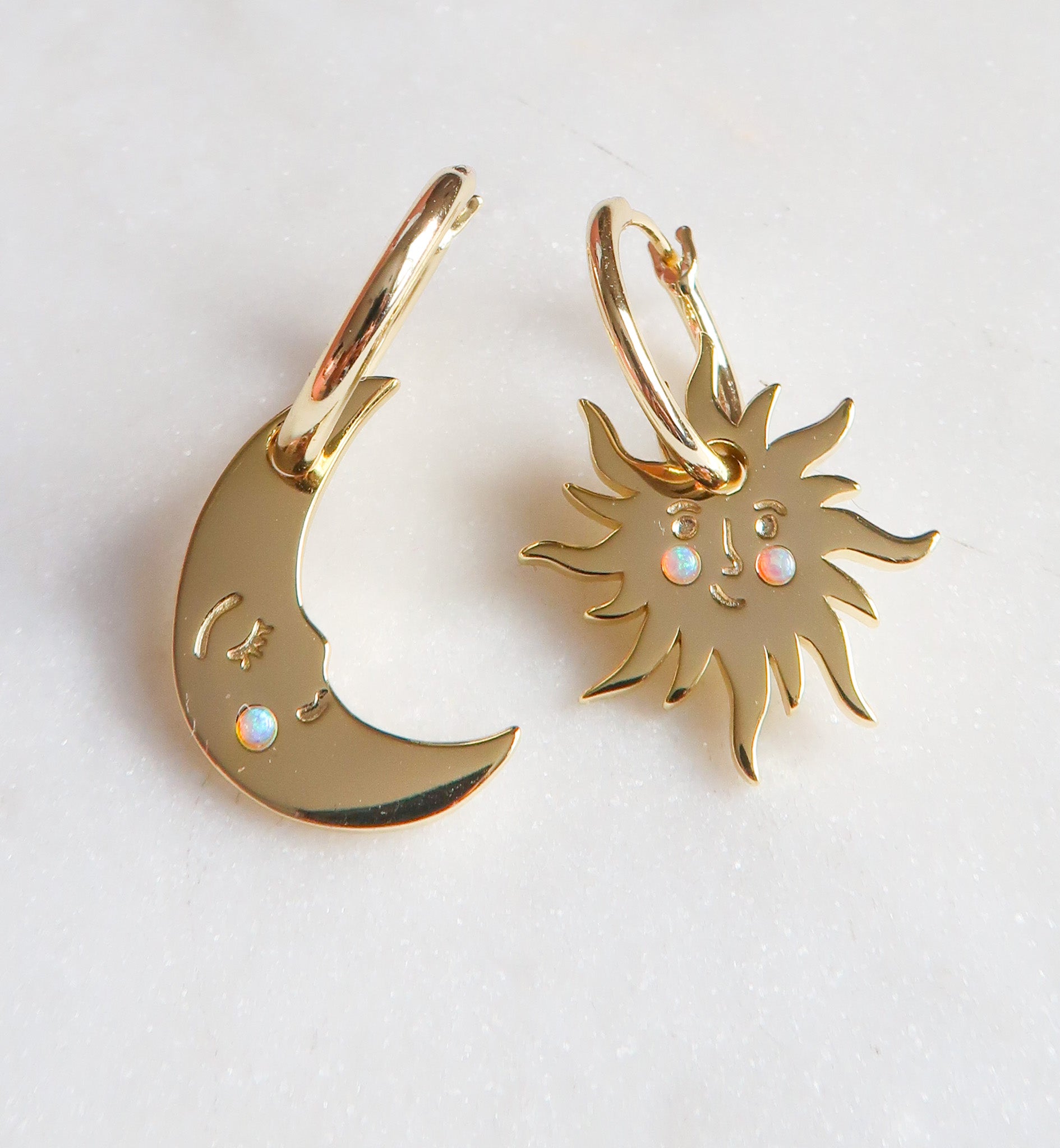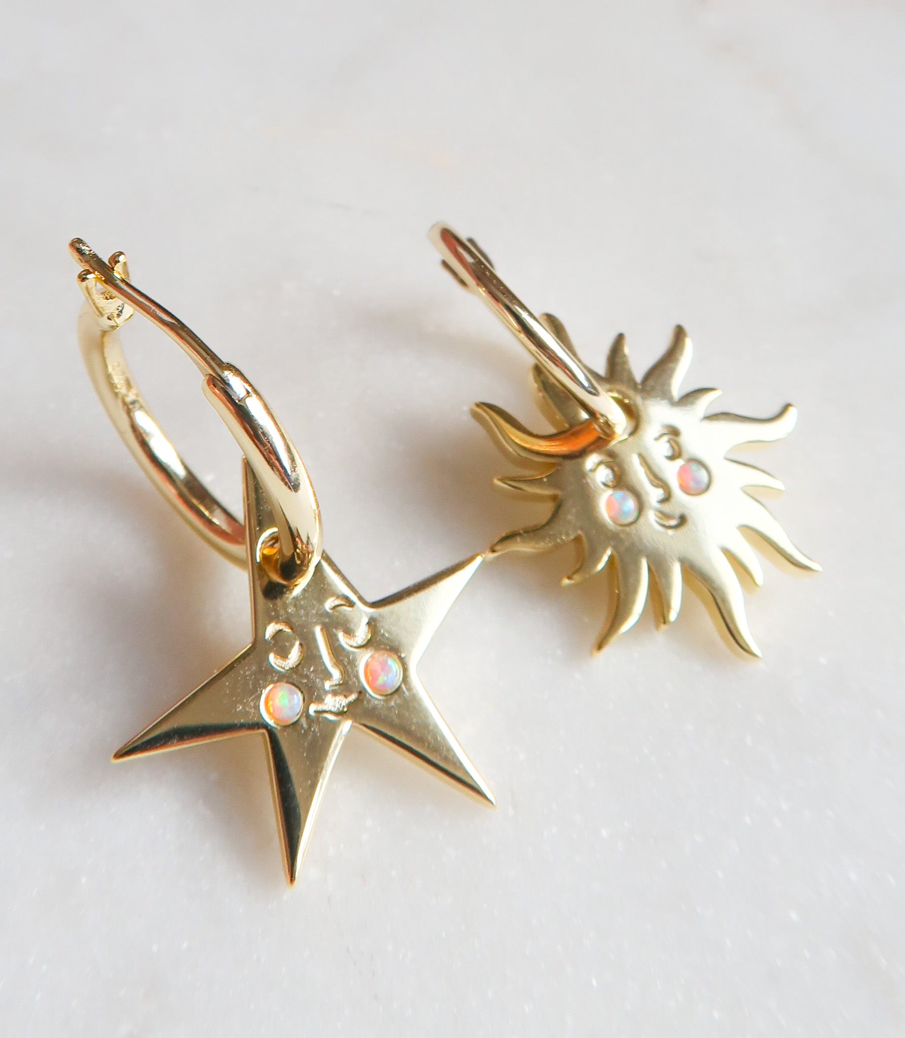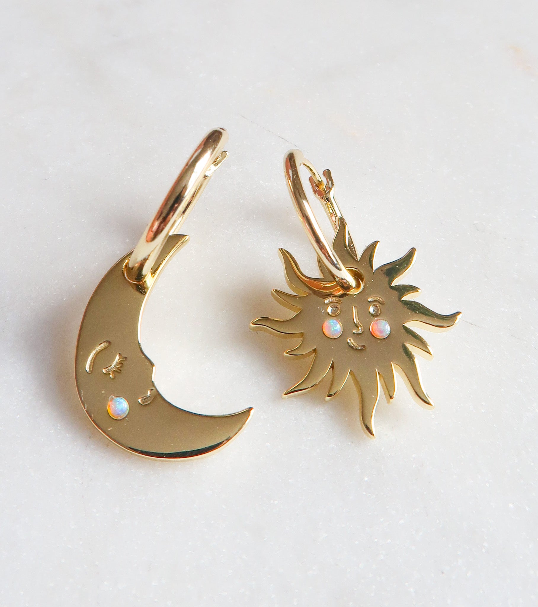 - 14k Gold-plated Sterling Silver Hoop Earrings with Blushing Opal-Adorned Sun Hoop Earrings