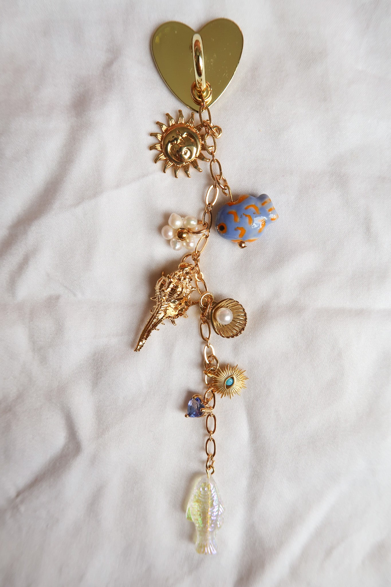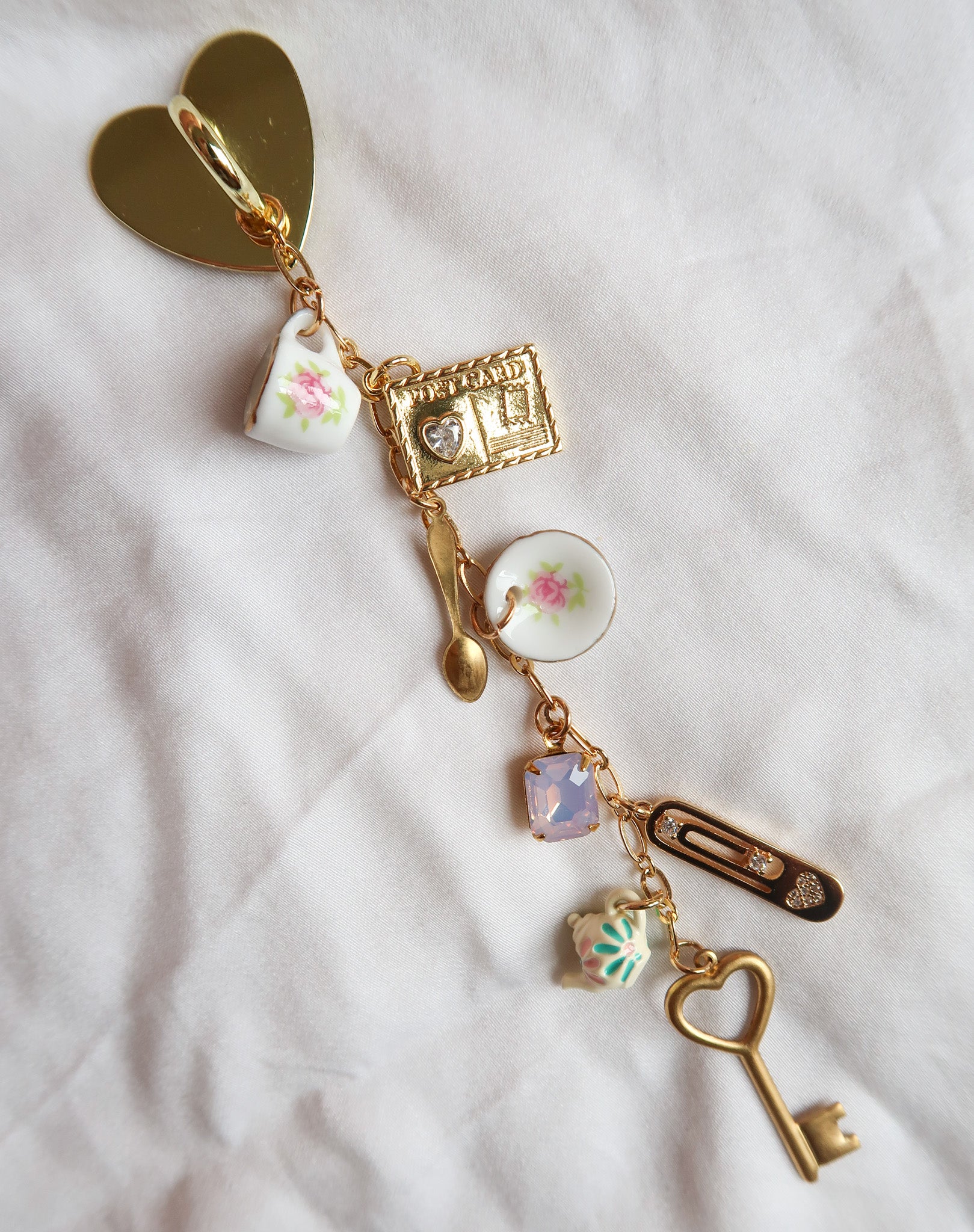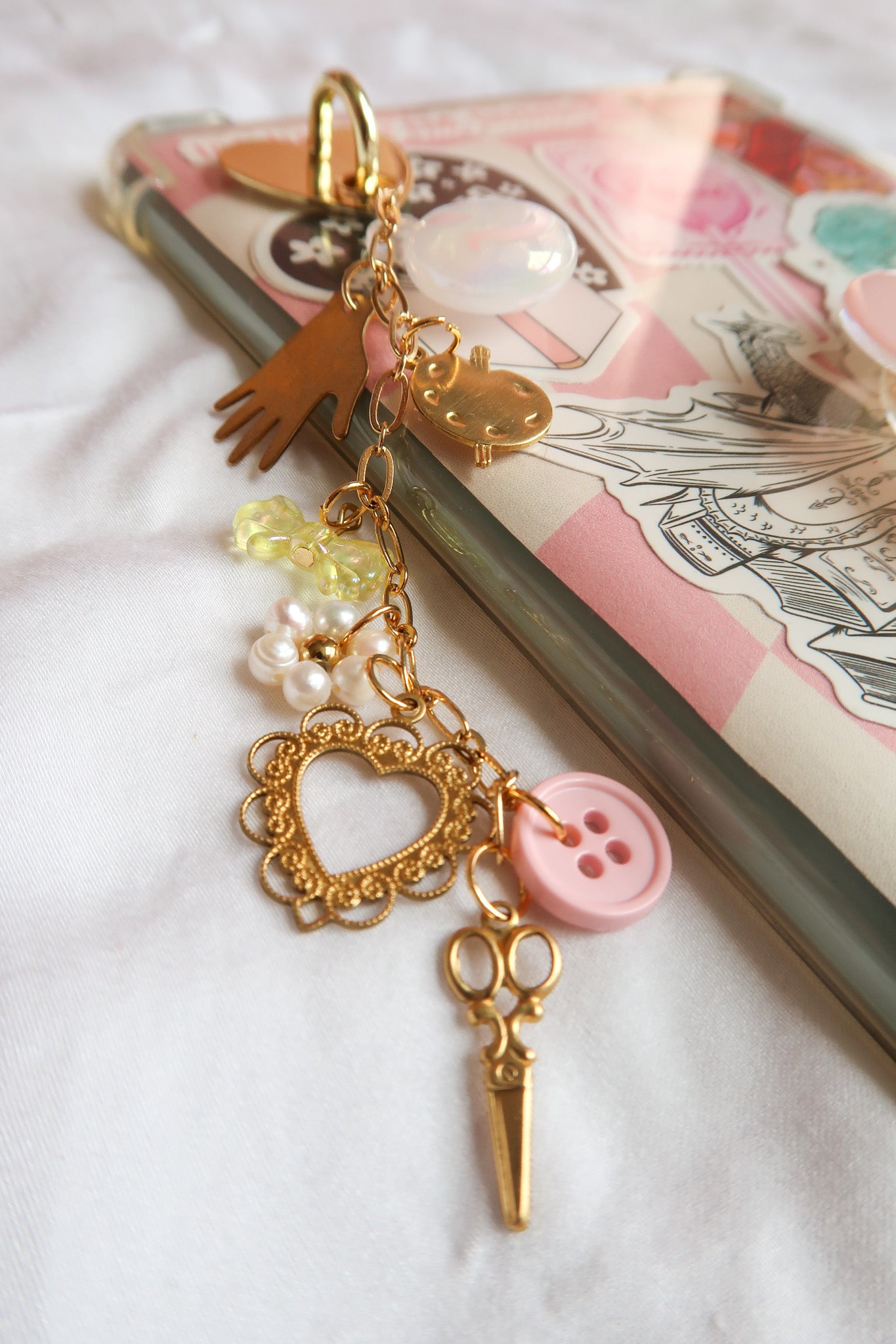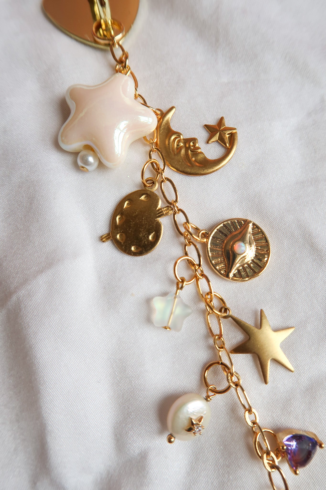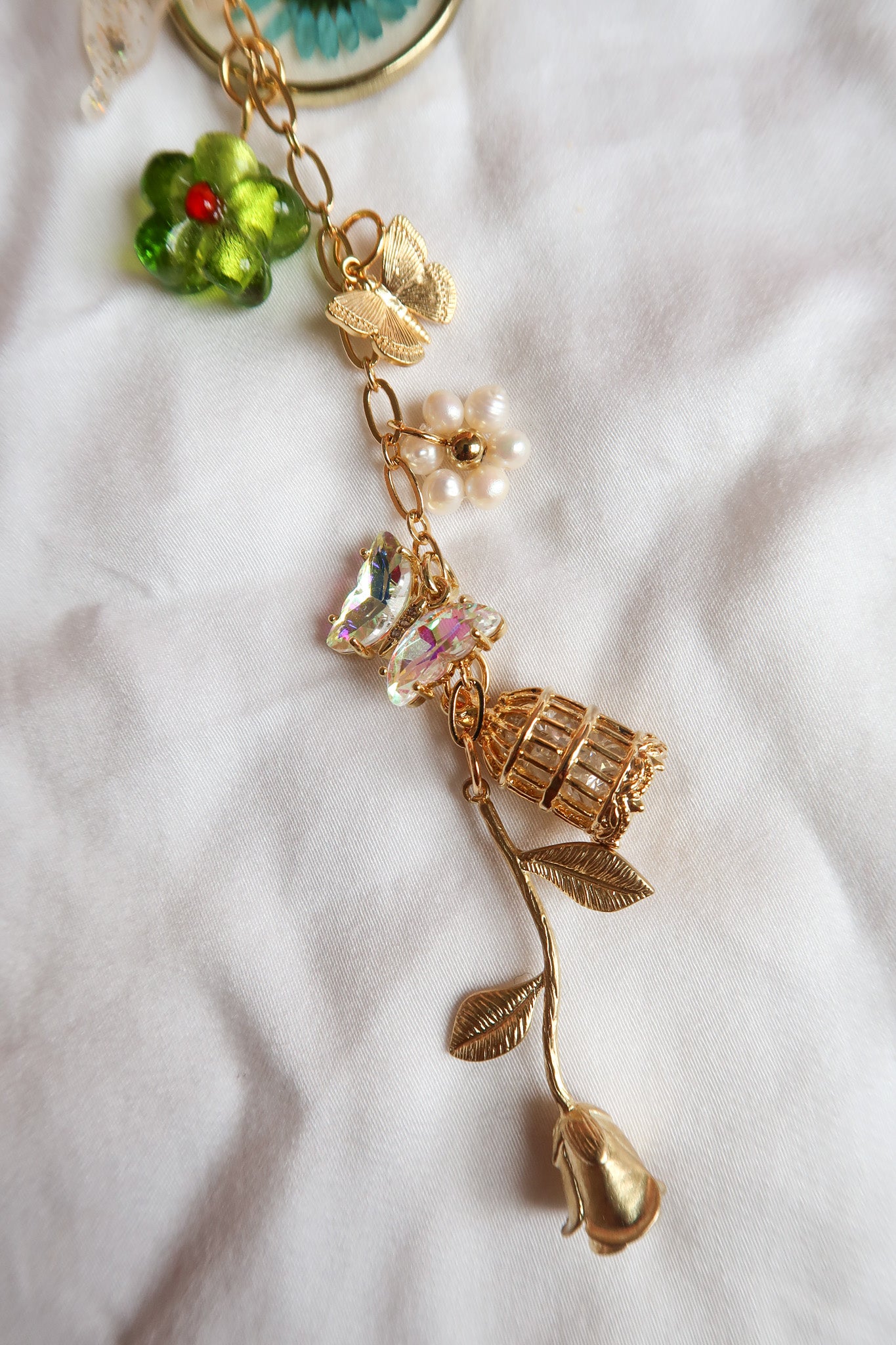 - 8-9 charms on each kindle charm varying between beads, gold plated, brass, and/or gold filled charms