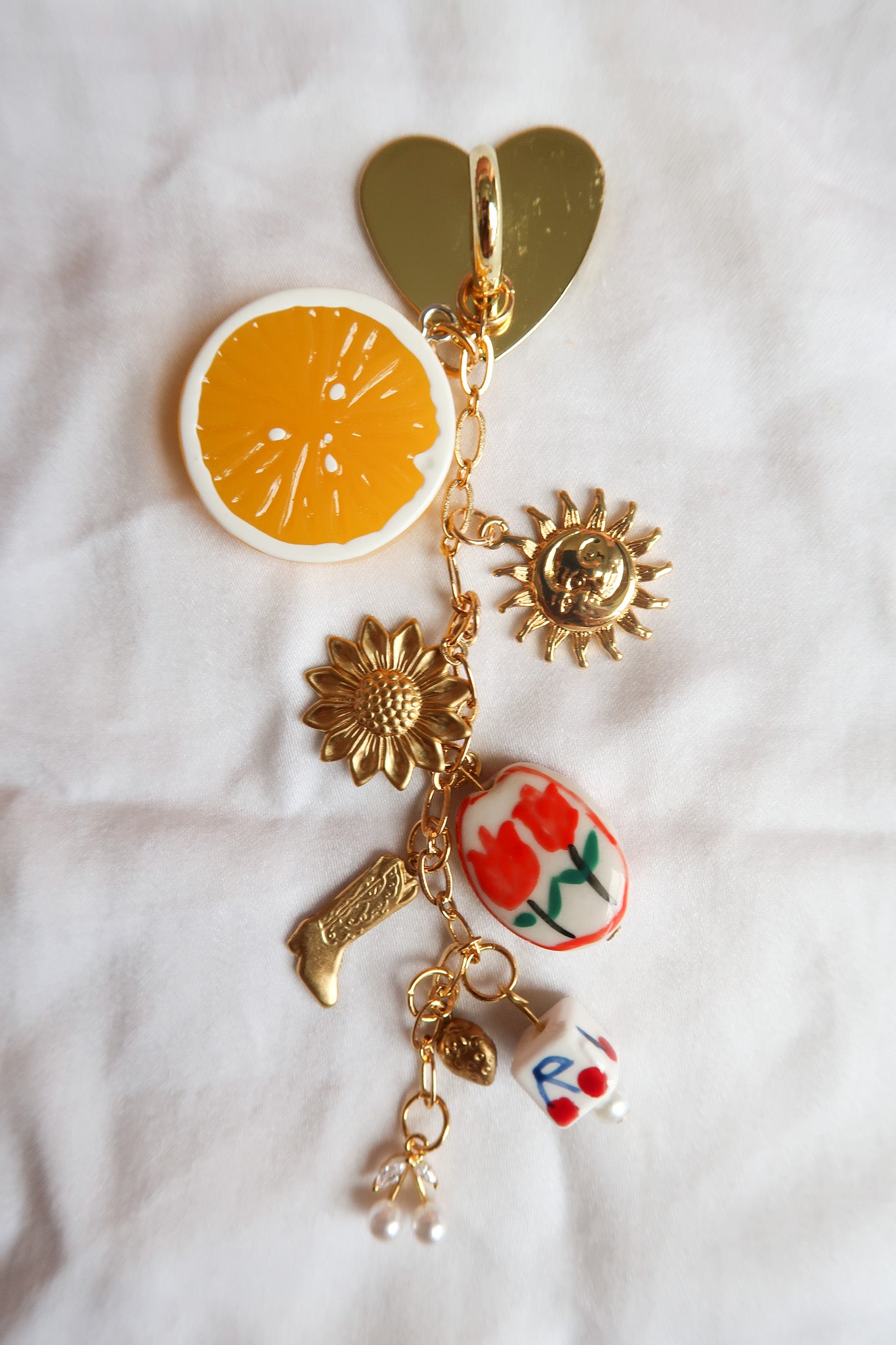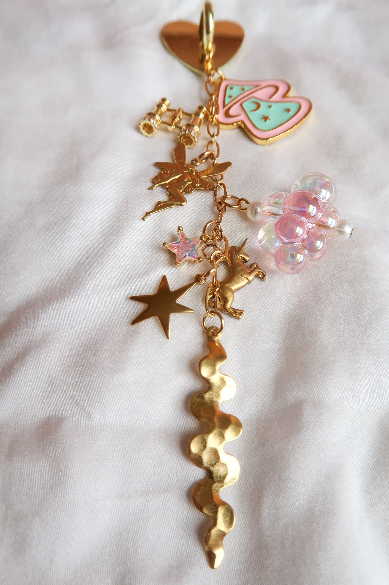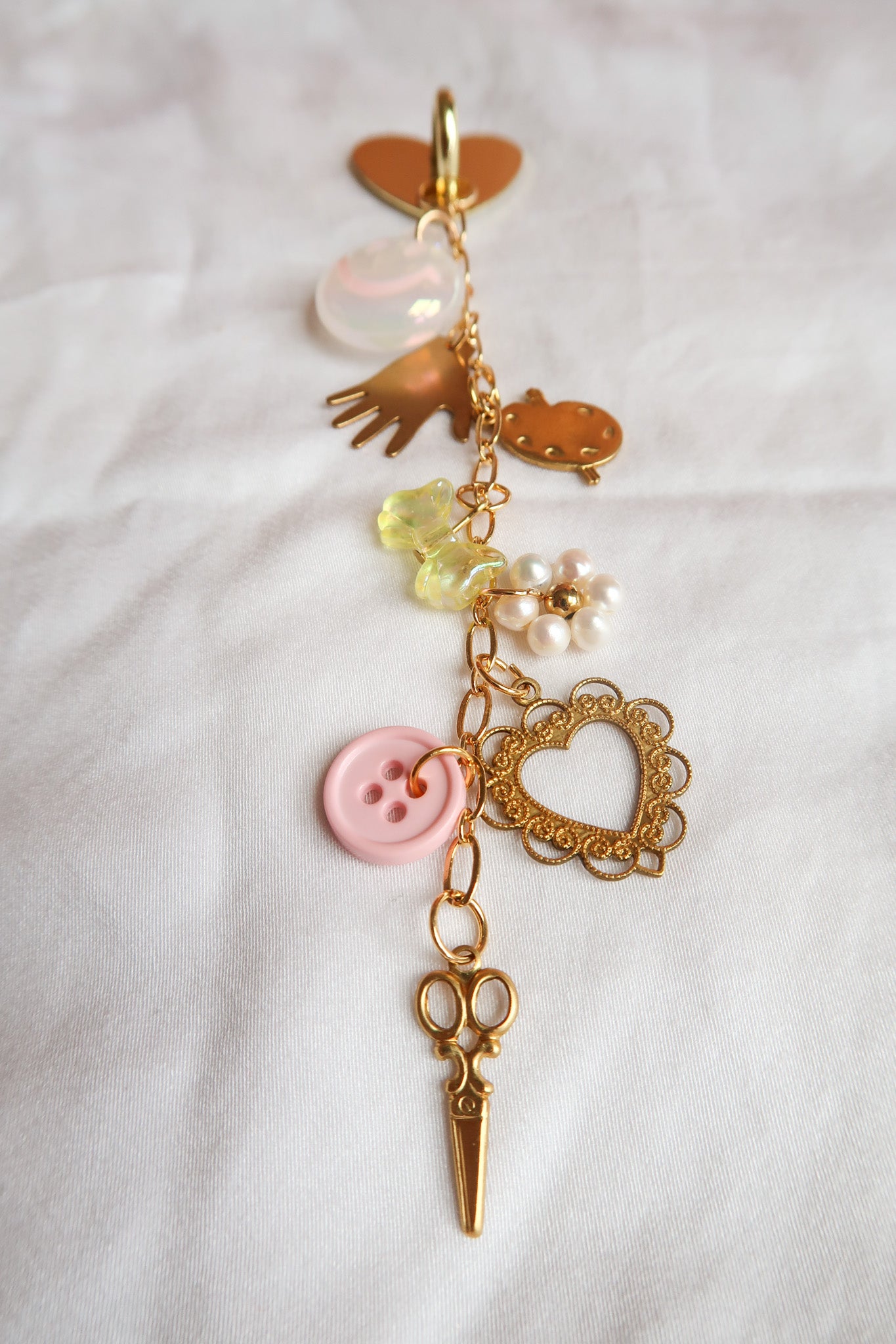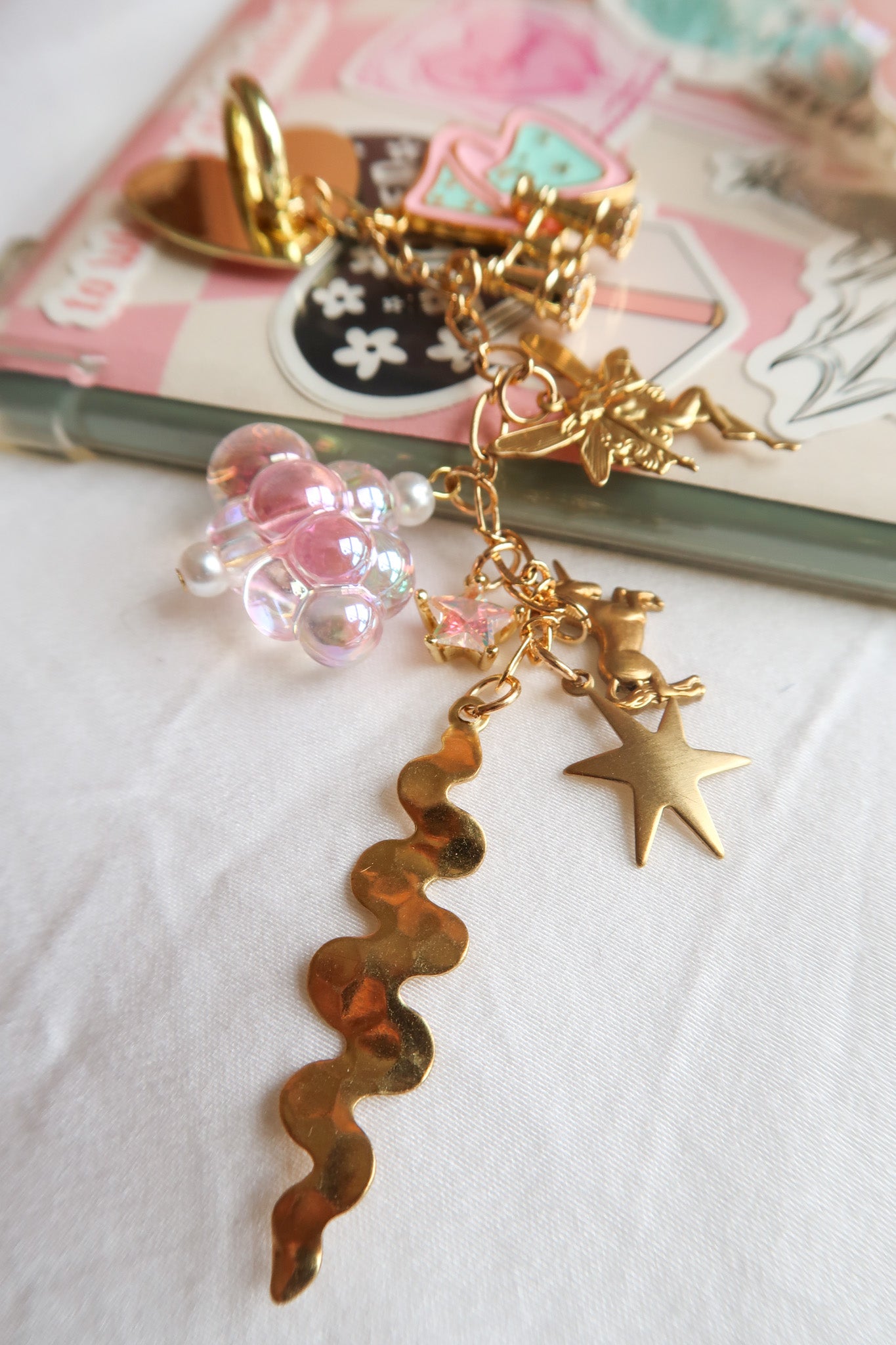 - 8-9 charms on each kindle charm varying between beads, gold plated, brass, and/or gold filled charms