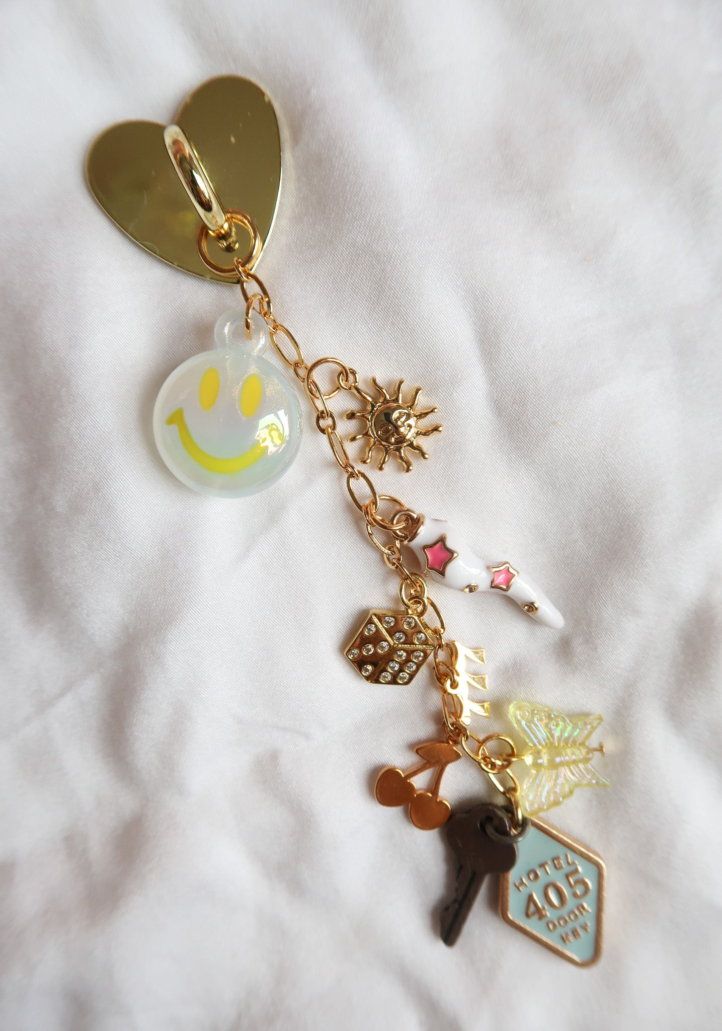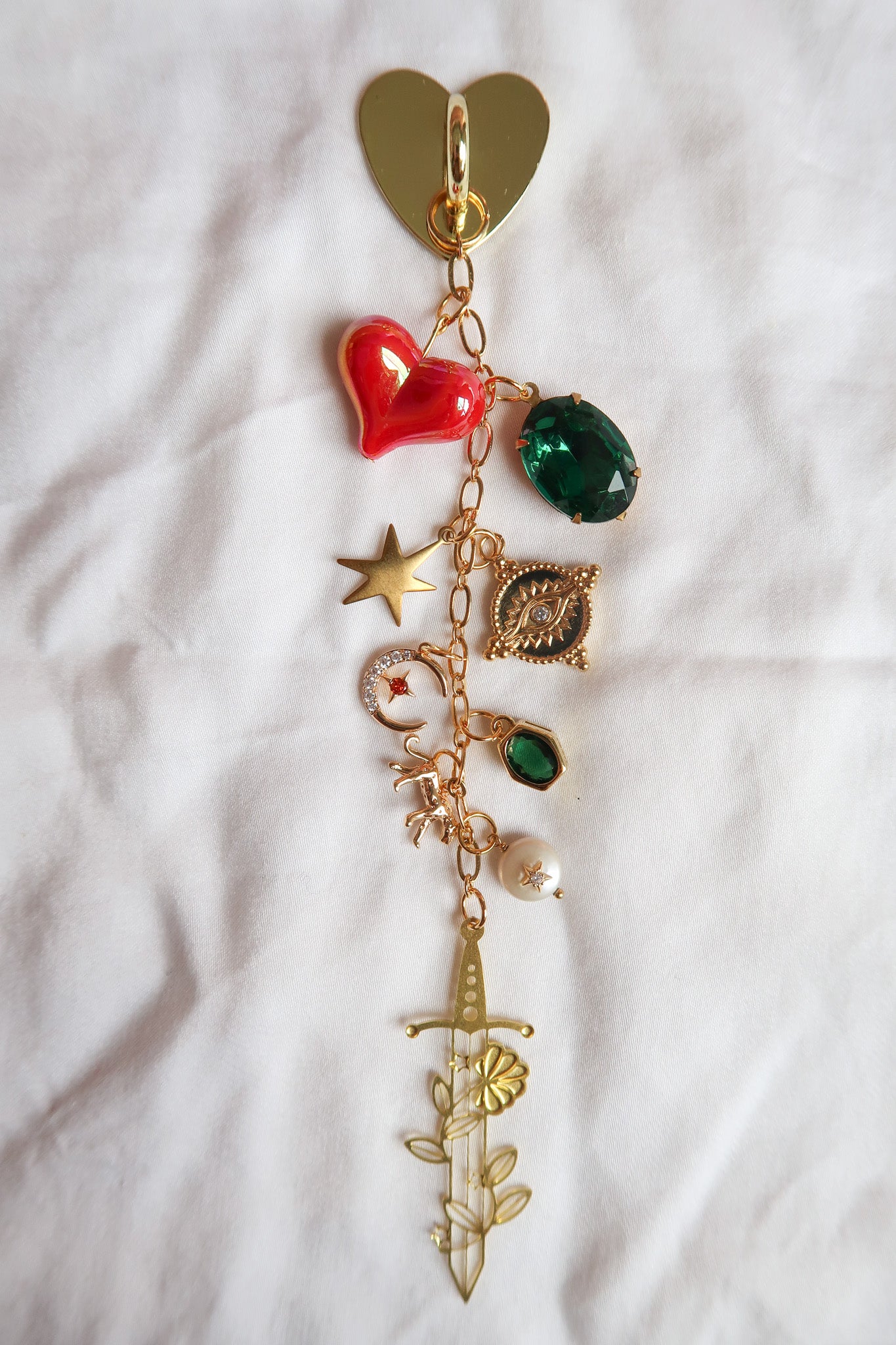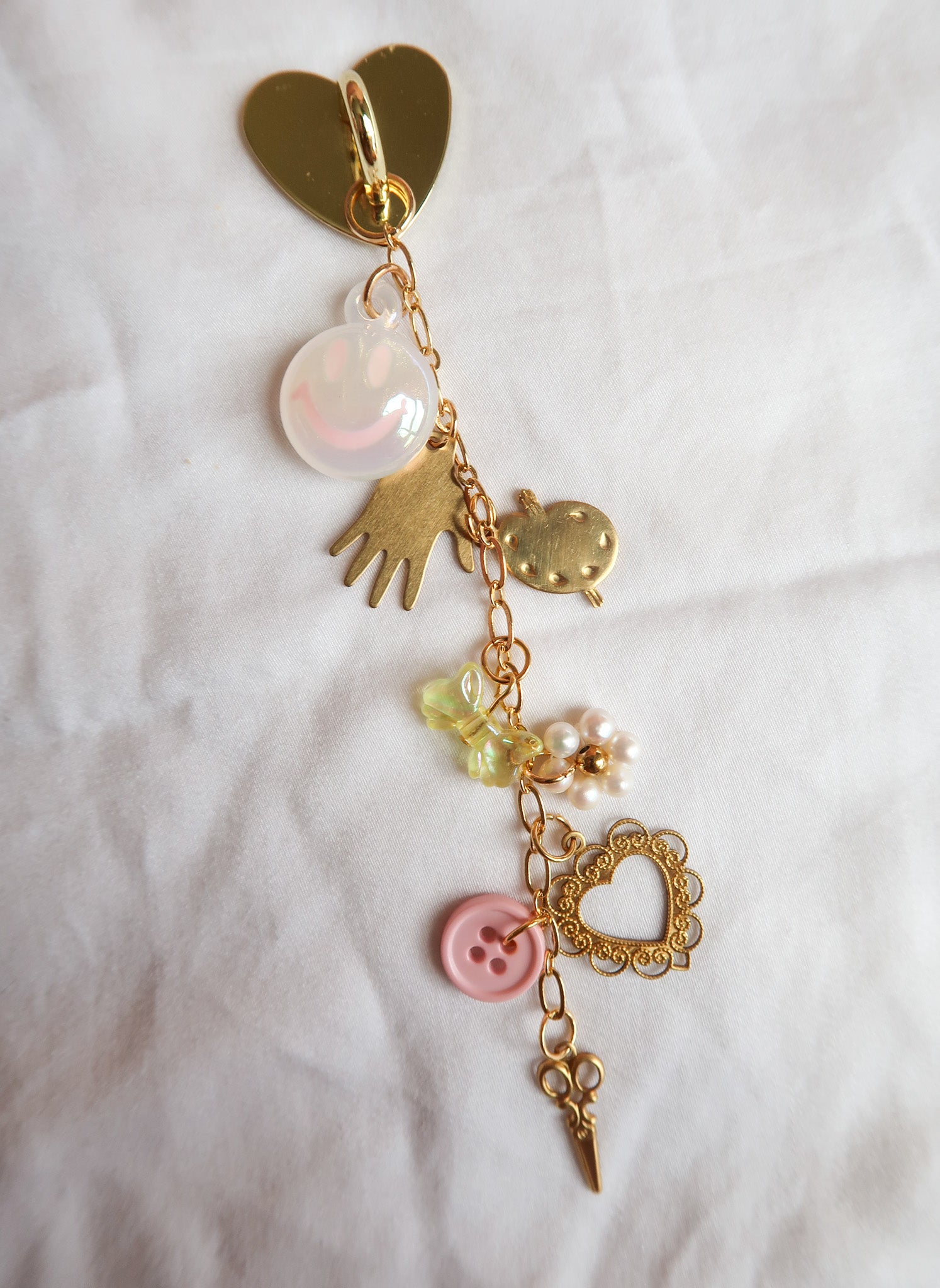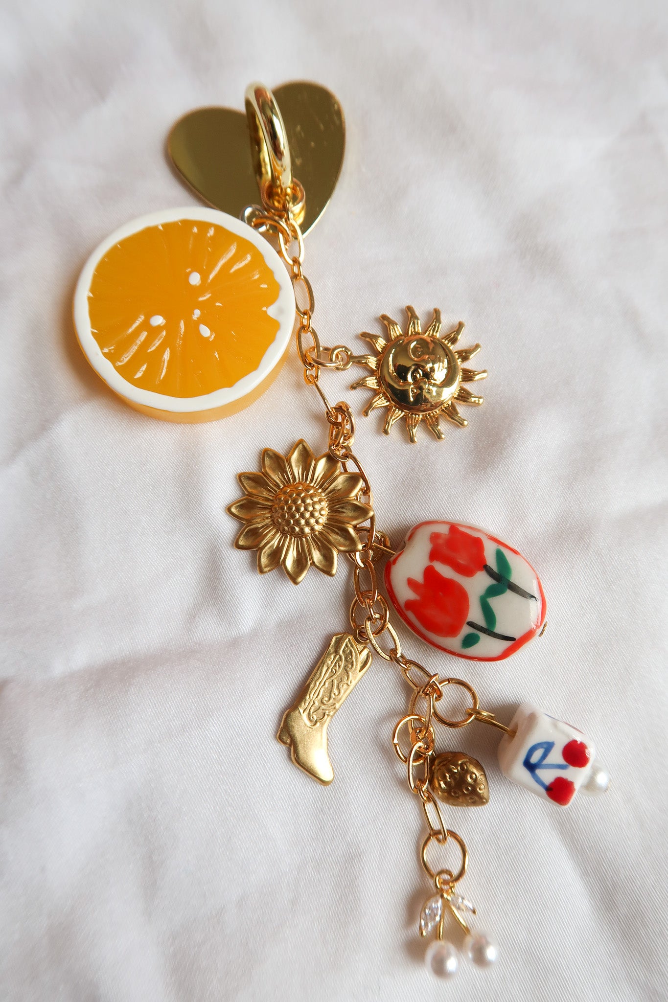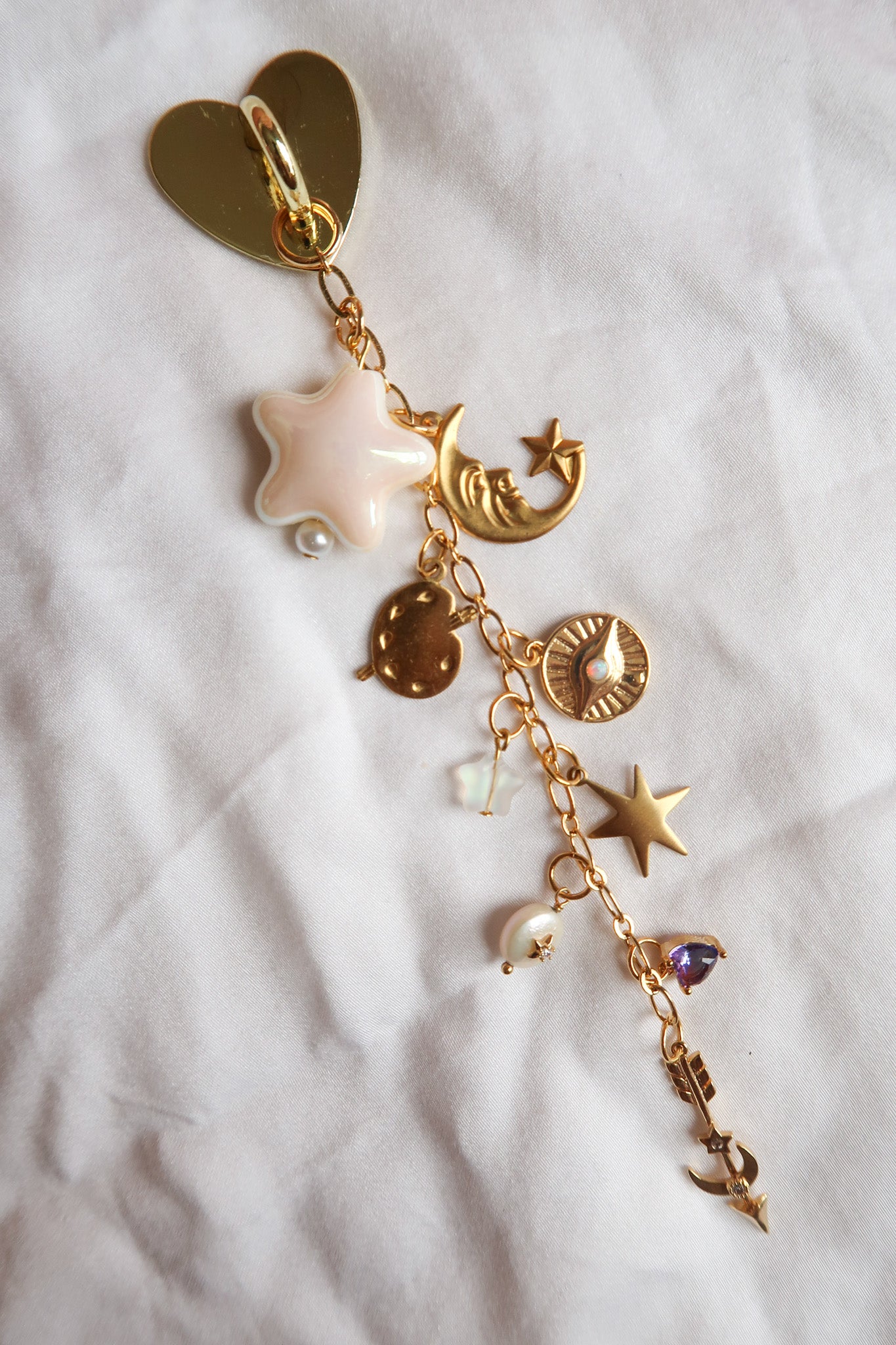 - 8-9 charms on each kindle charm varying between beads, gold plated, brass, and/or gold filled charms