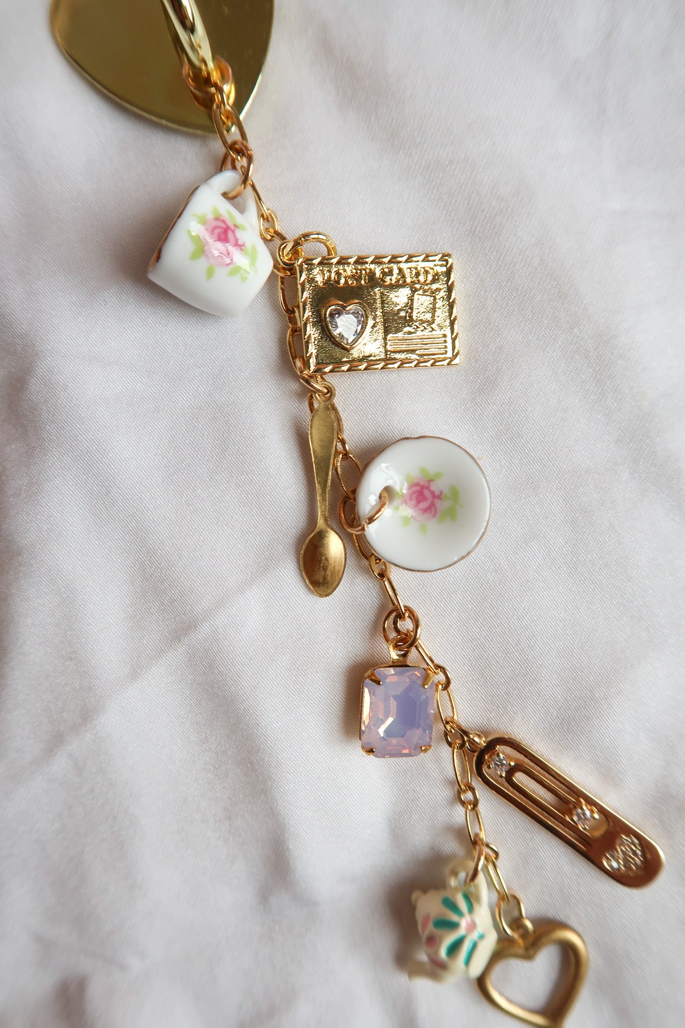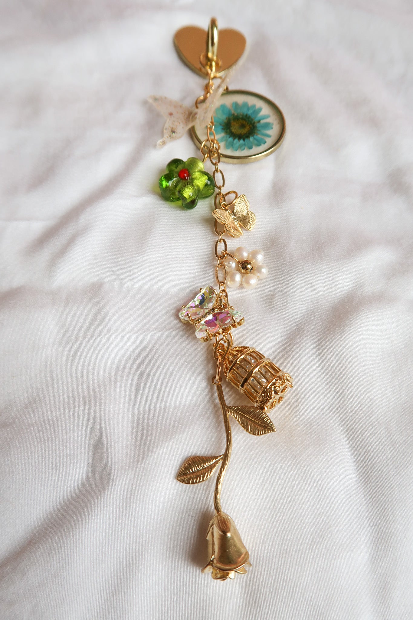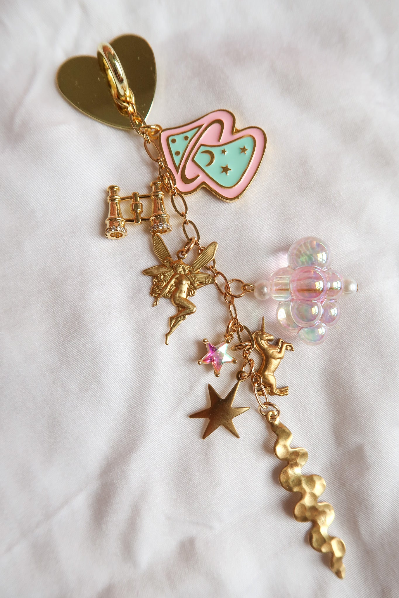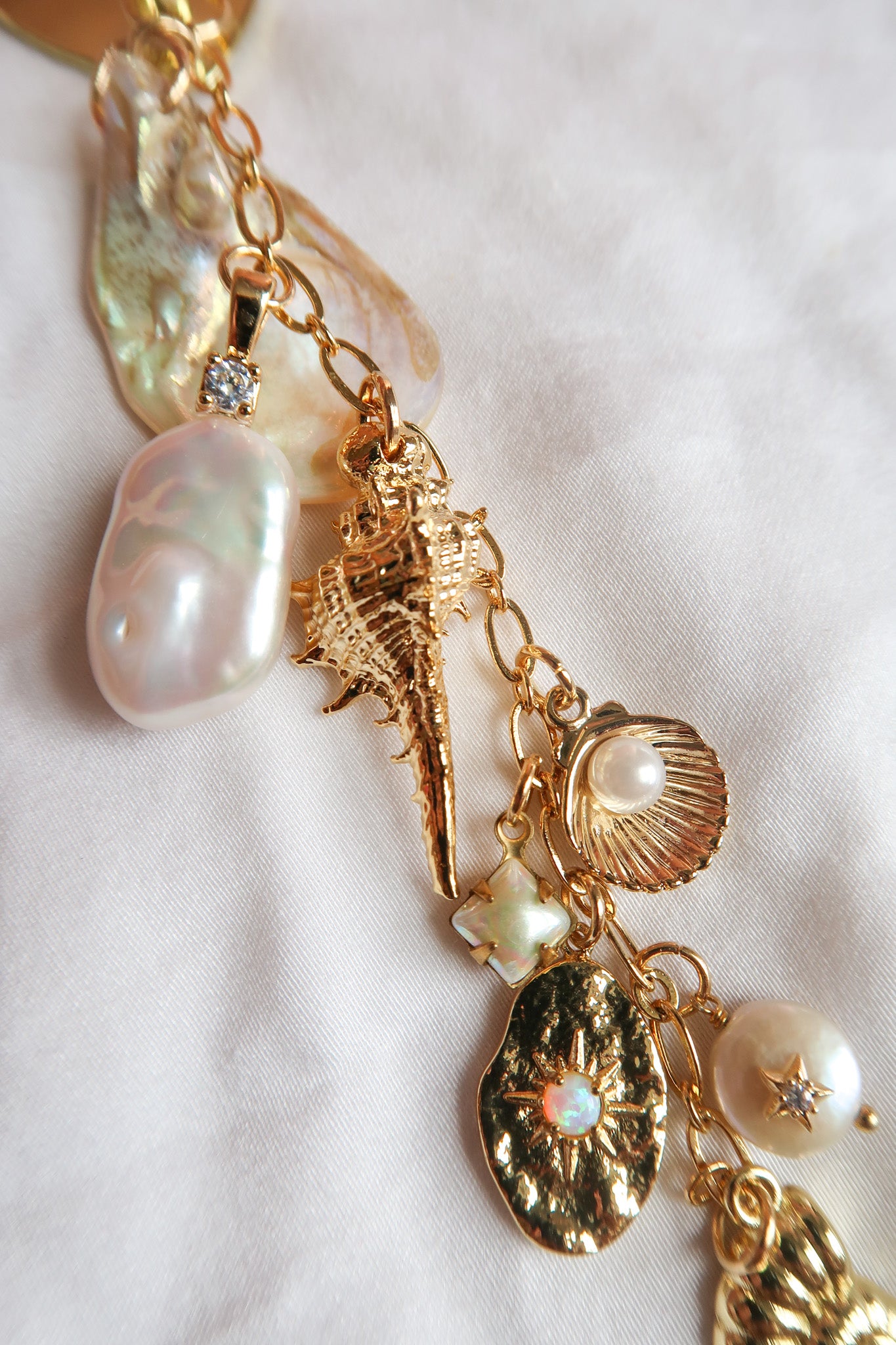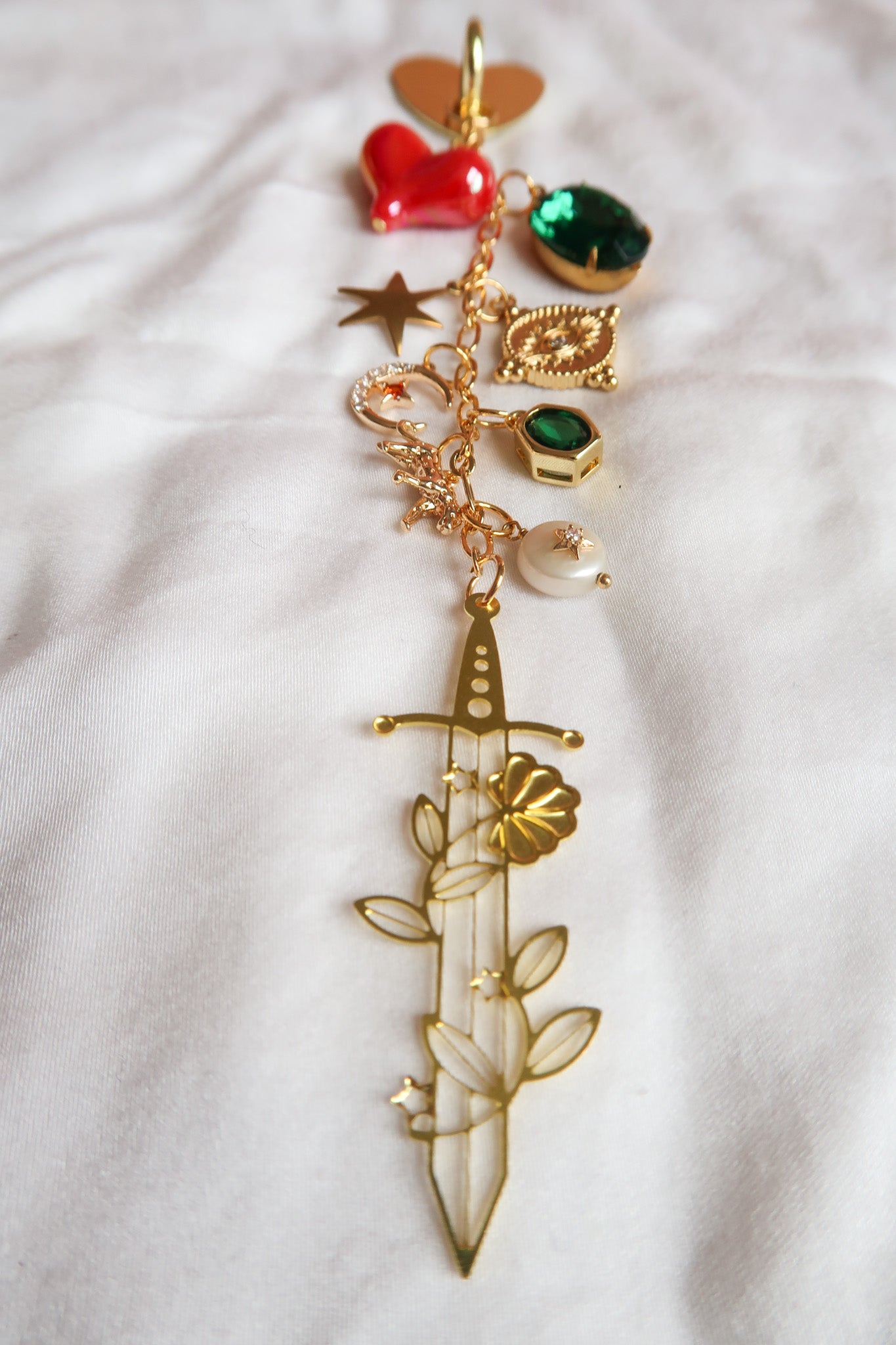 - 8-9 charms on each kindle charm varying between beads, gold plated, brass, and/or gold filled charms