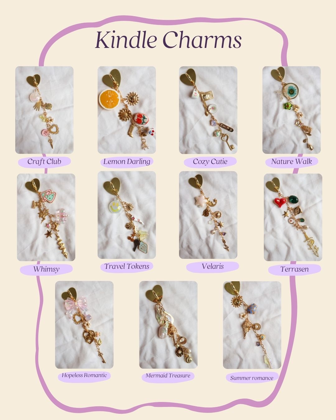 - 11 kindle charm themes to choose from: Craft Club, Lemon Darling, Cozy Cutie, Nature Walk, Whimsy, Travel Tokens, Velaris, Terrasen, Hopeless Romantic, Mermaid Treasure, and Summer Romance