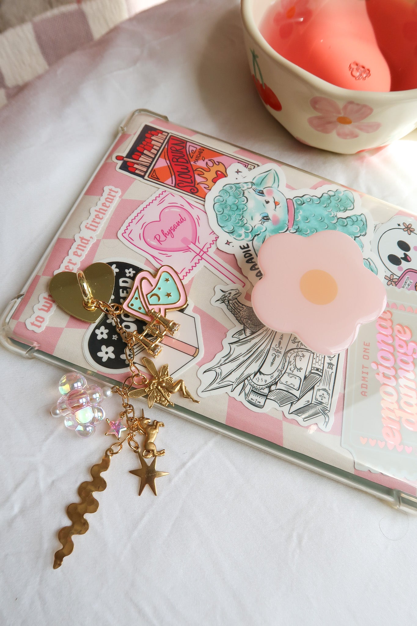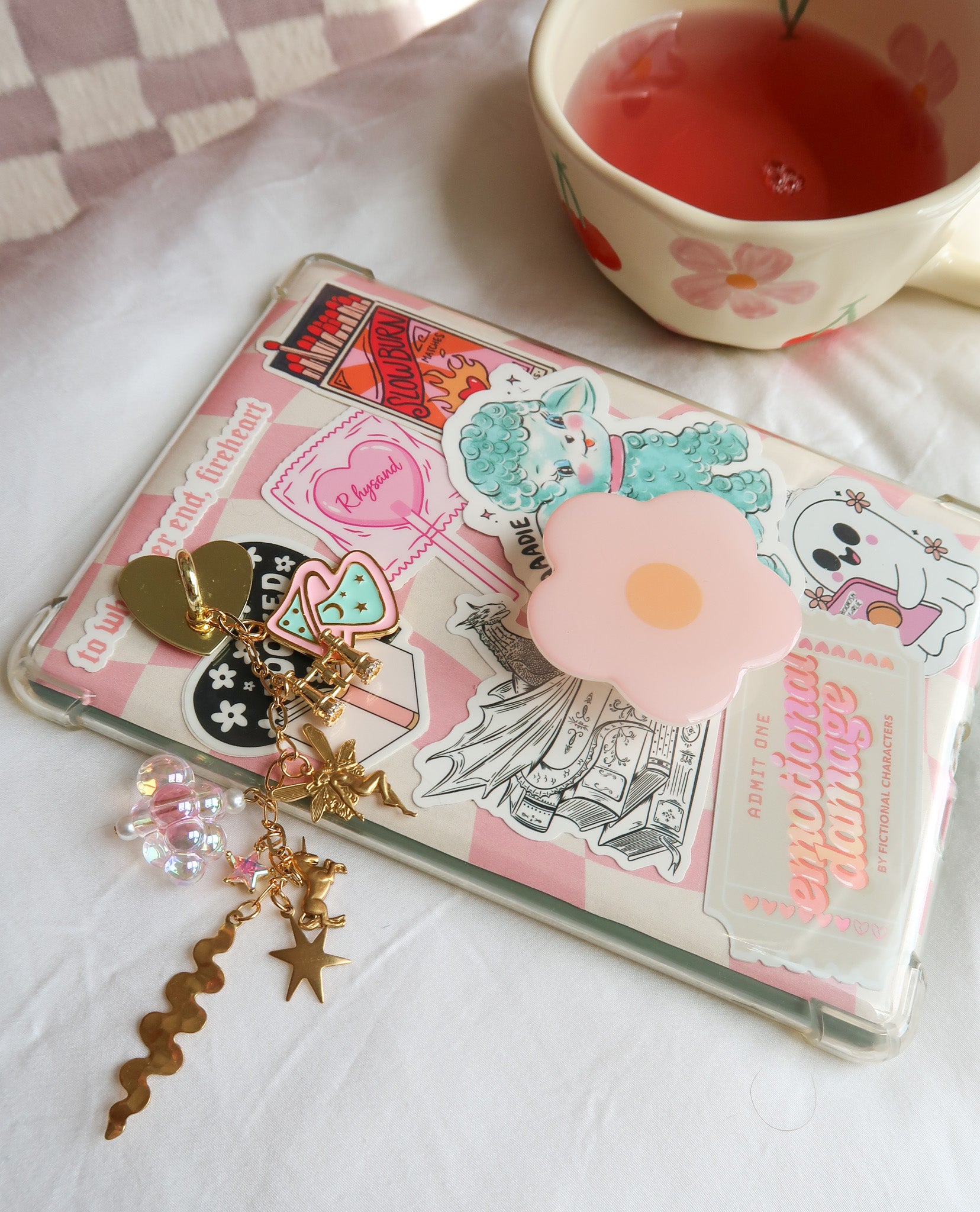 Designed to stick onto your Kindle case or e-reader, these charms turn your current read into a wearable mood board. Whether it’s butterflies and wildflowers, tiny cowboy boots and fruits, or sun motifs and soft pastels, each charm tells a story of its own, no two are the same. Perfect for book lovers, journalers, and soft hearts who believe their Kindle deserves accessories as thoughtful as their favorite plot twist.