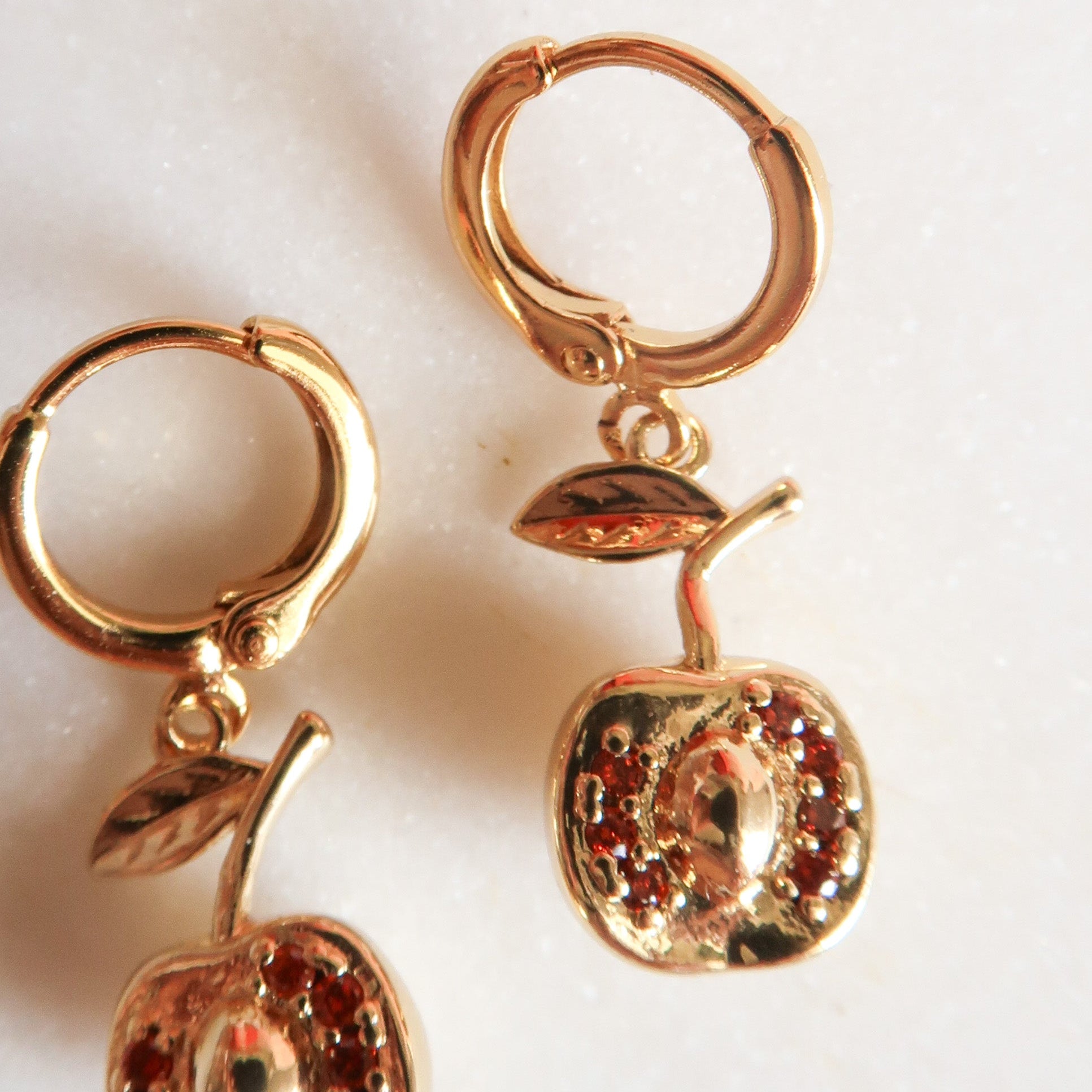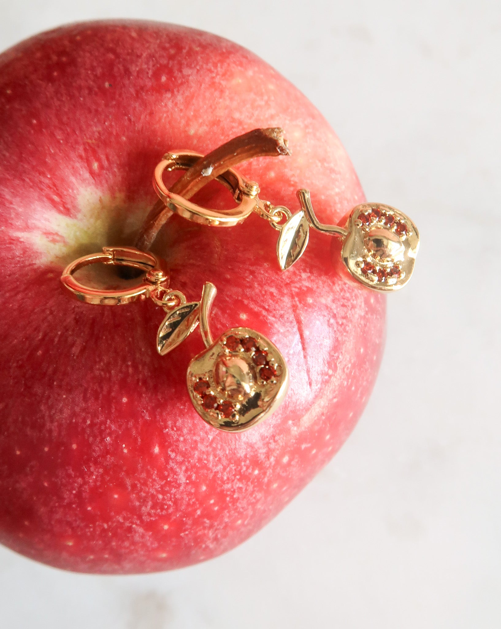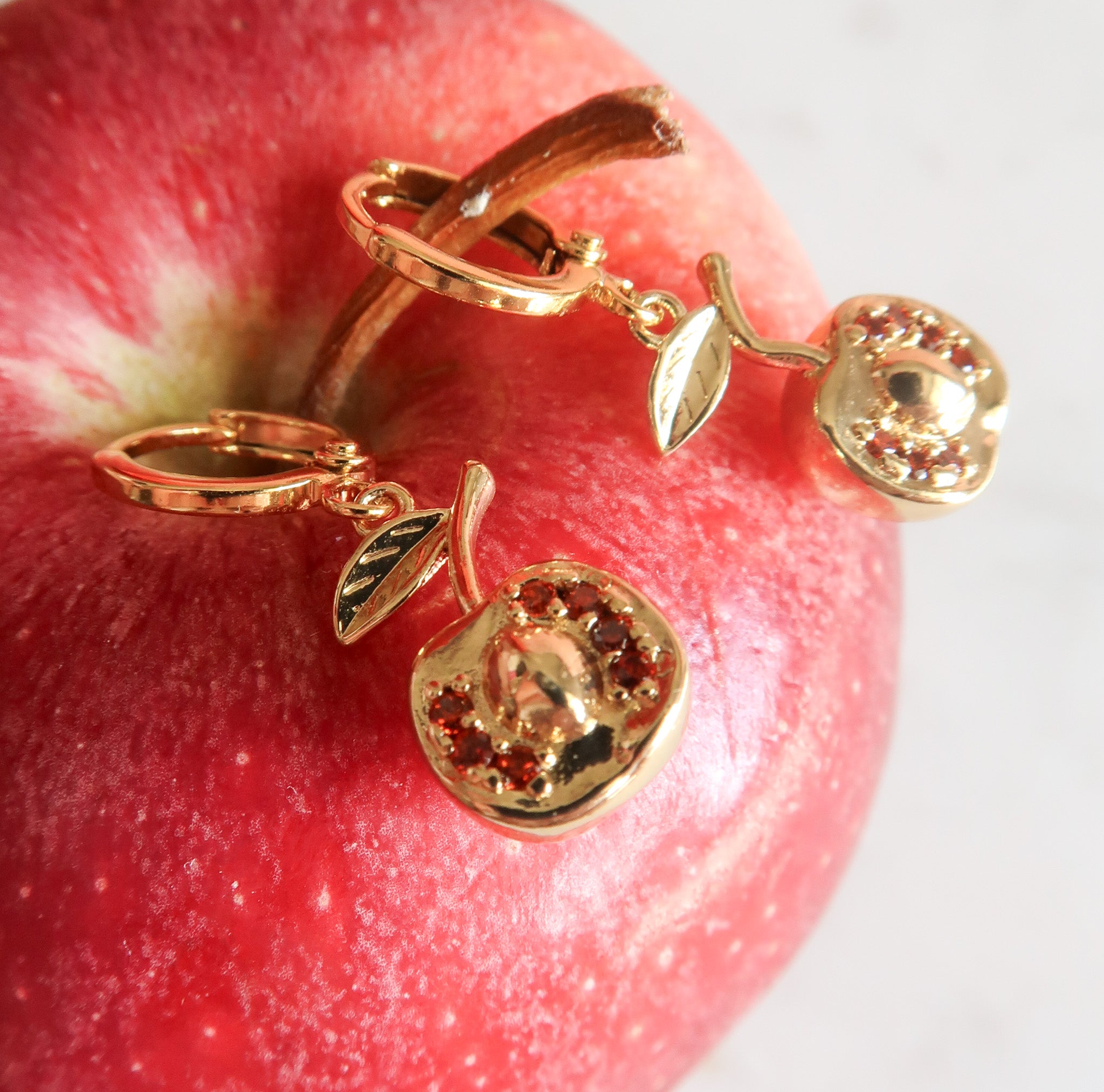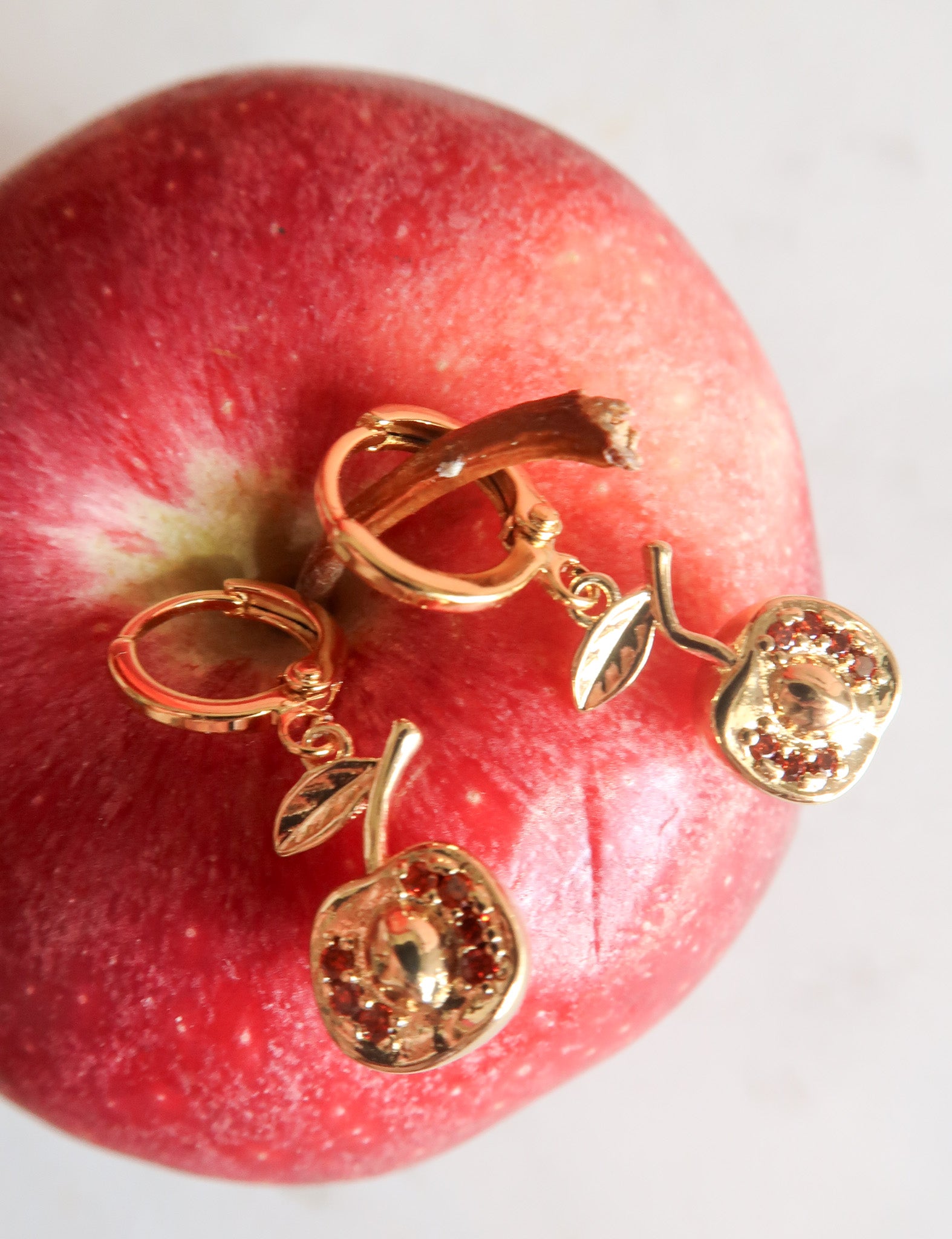 - Gold Filled Apple Charms with Red Cubic Zirconia Detail