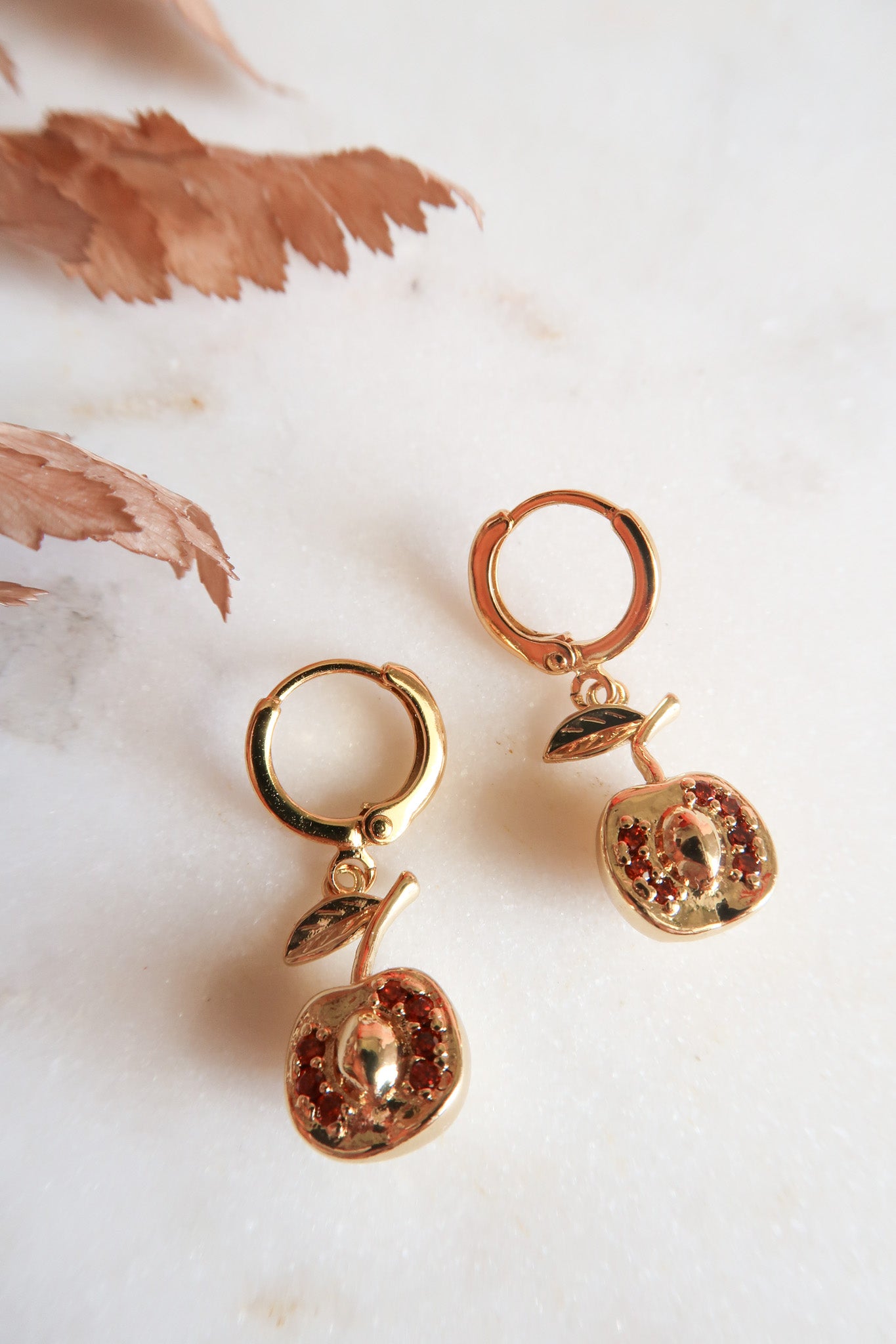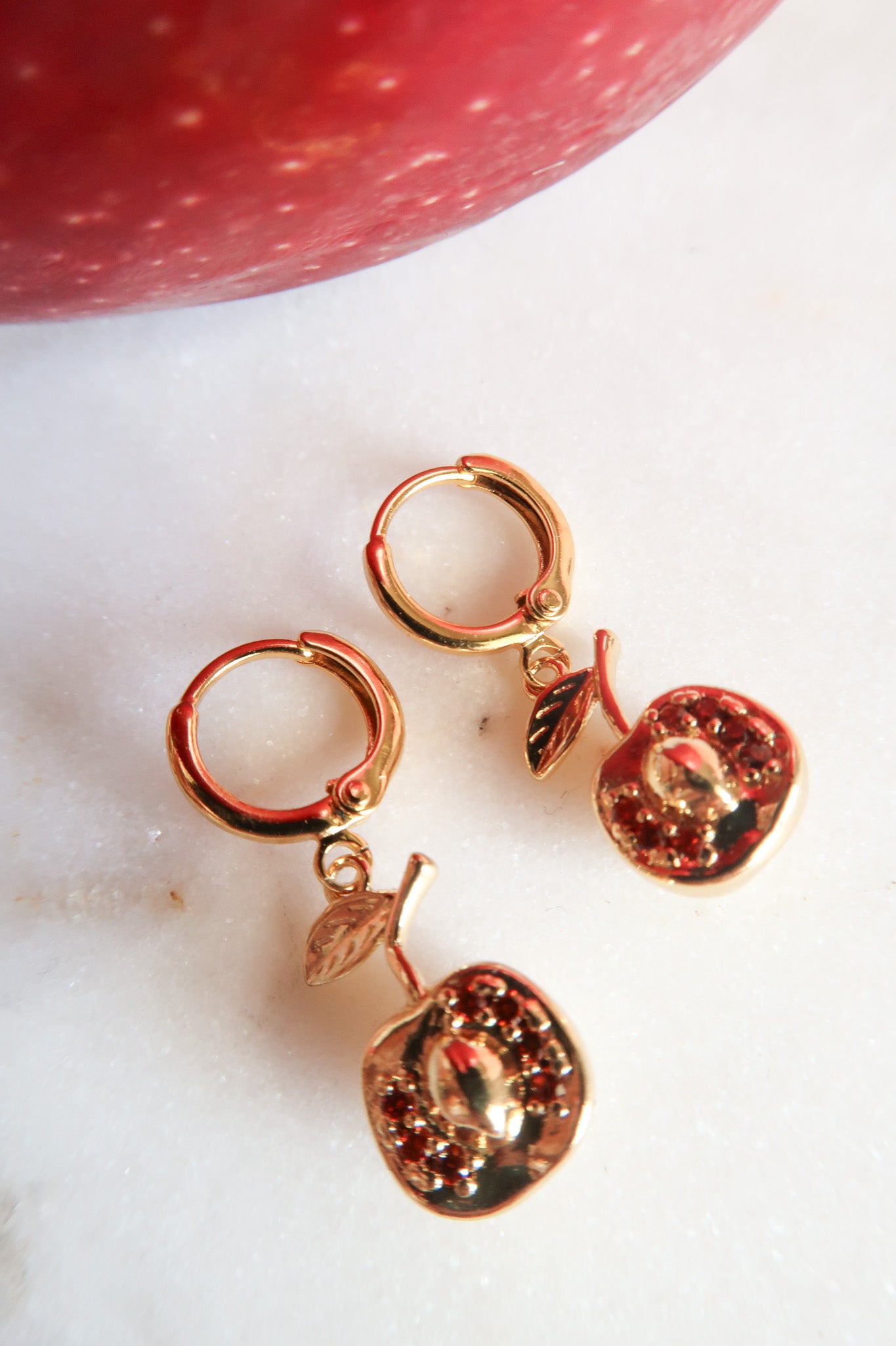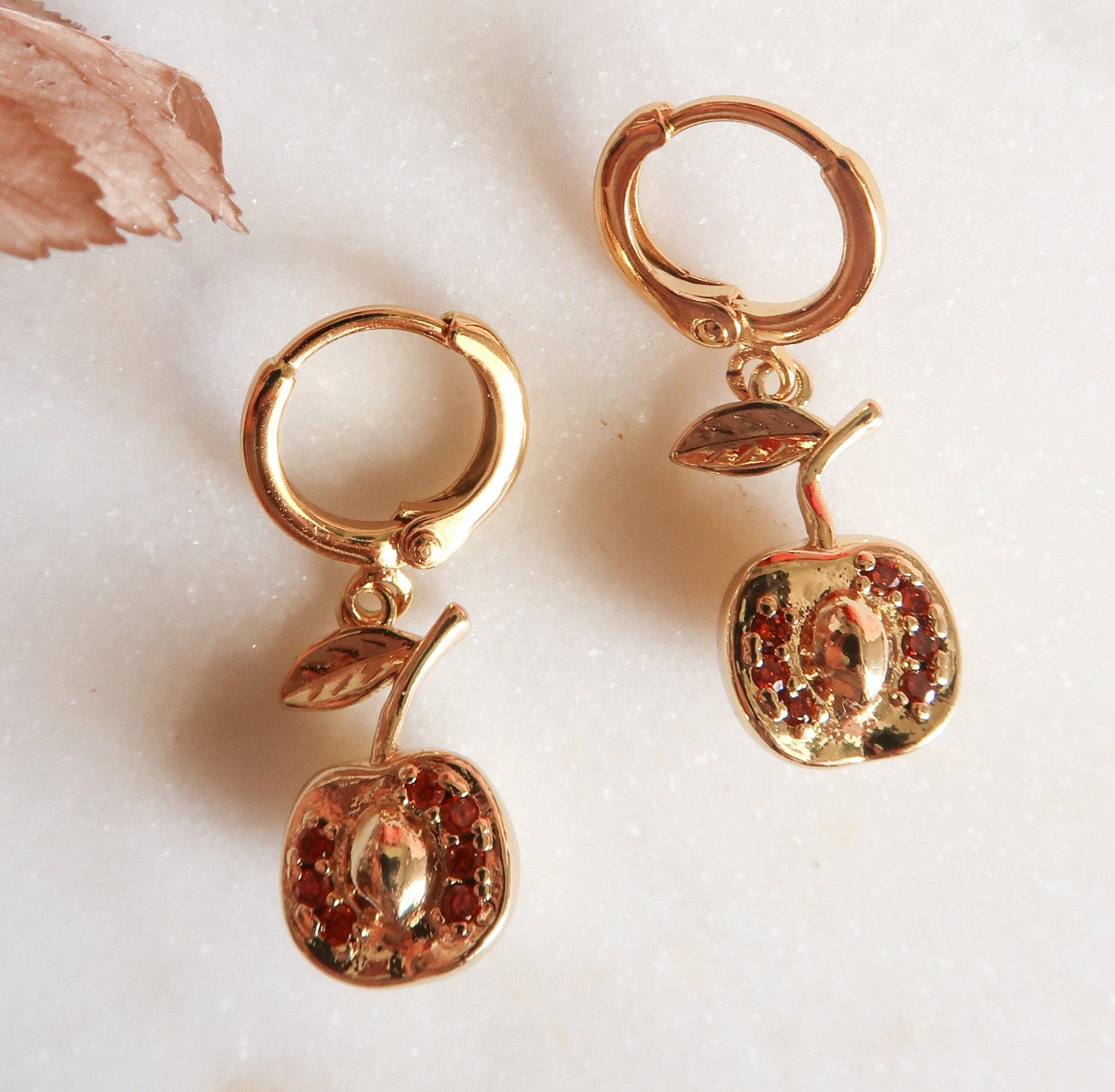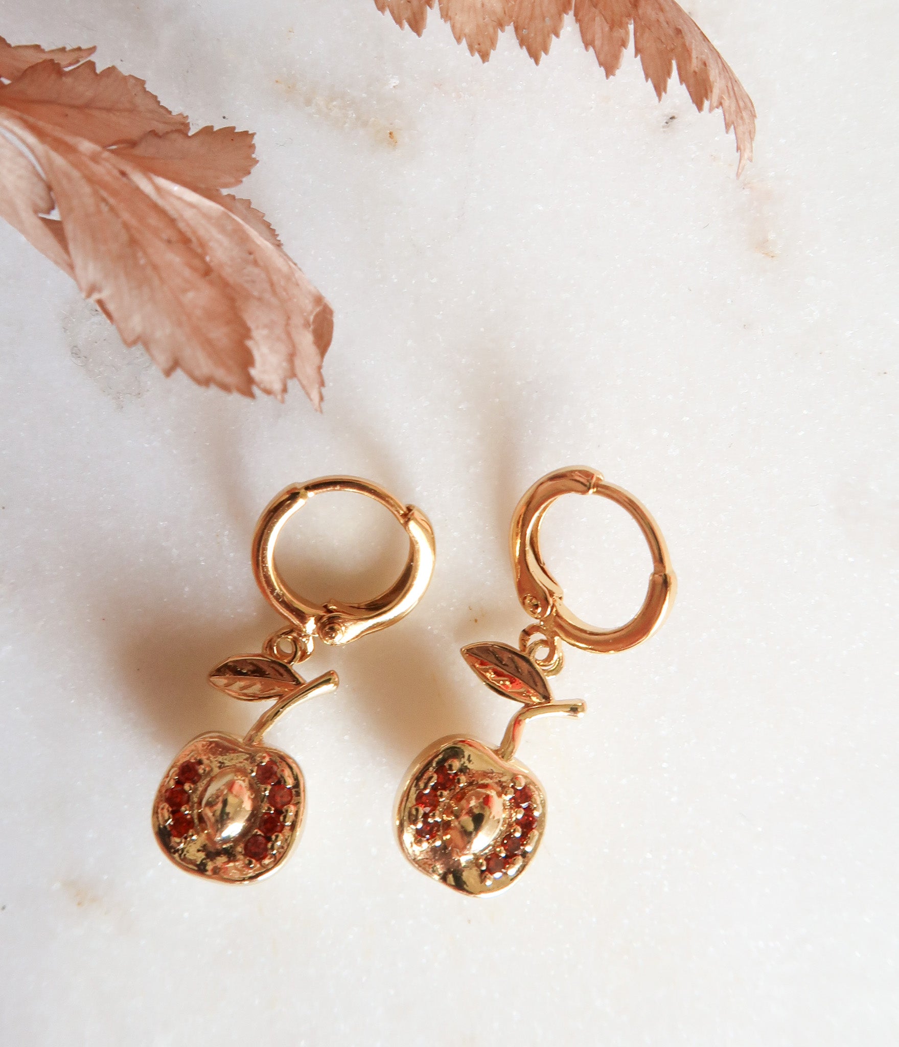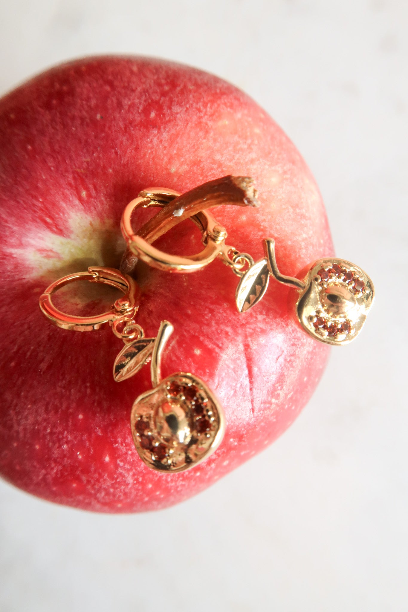 - Gold Filled Apple Charms with Red Cubic Zirconia Detail