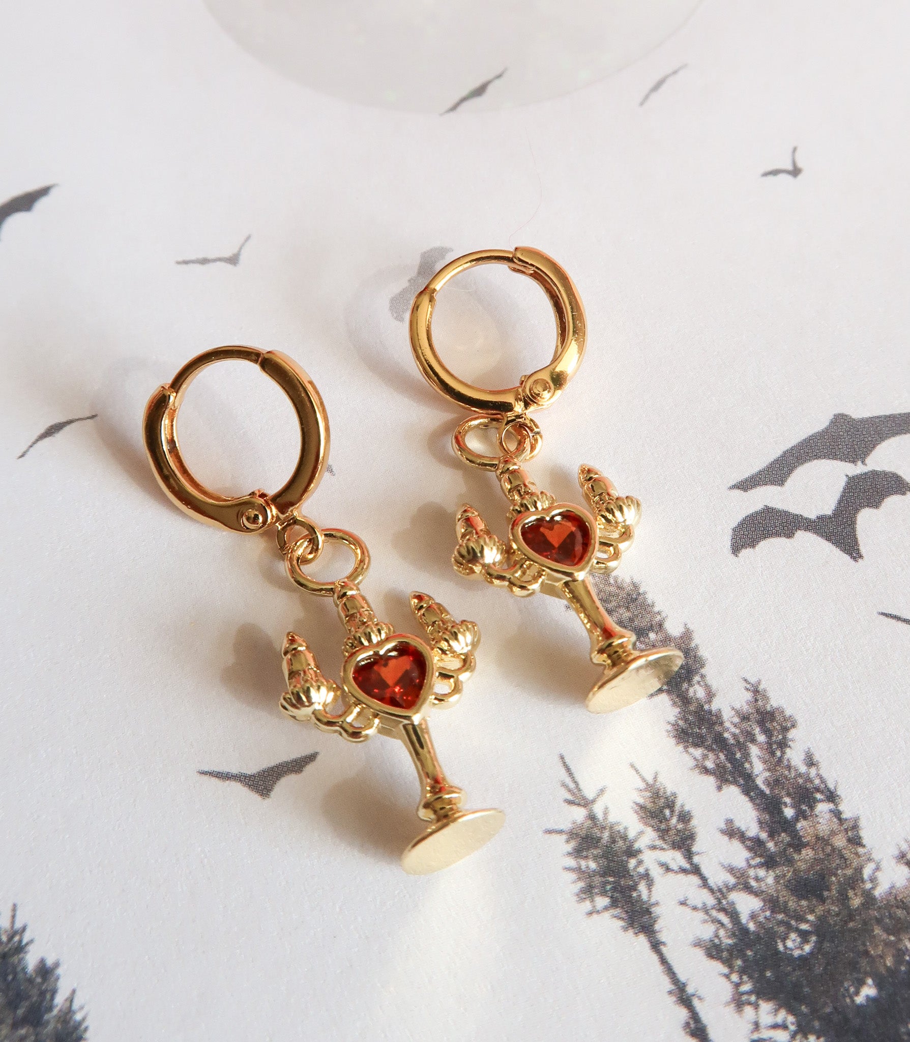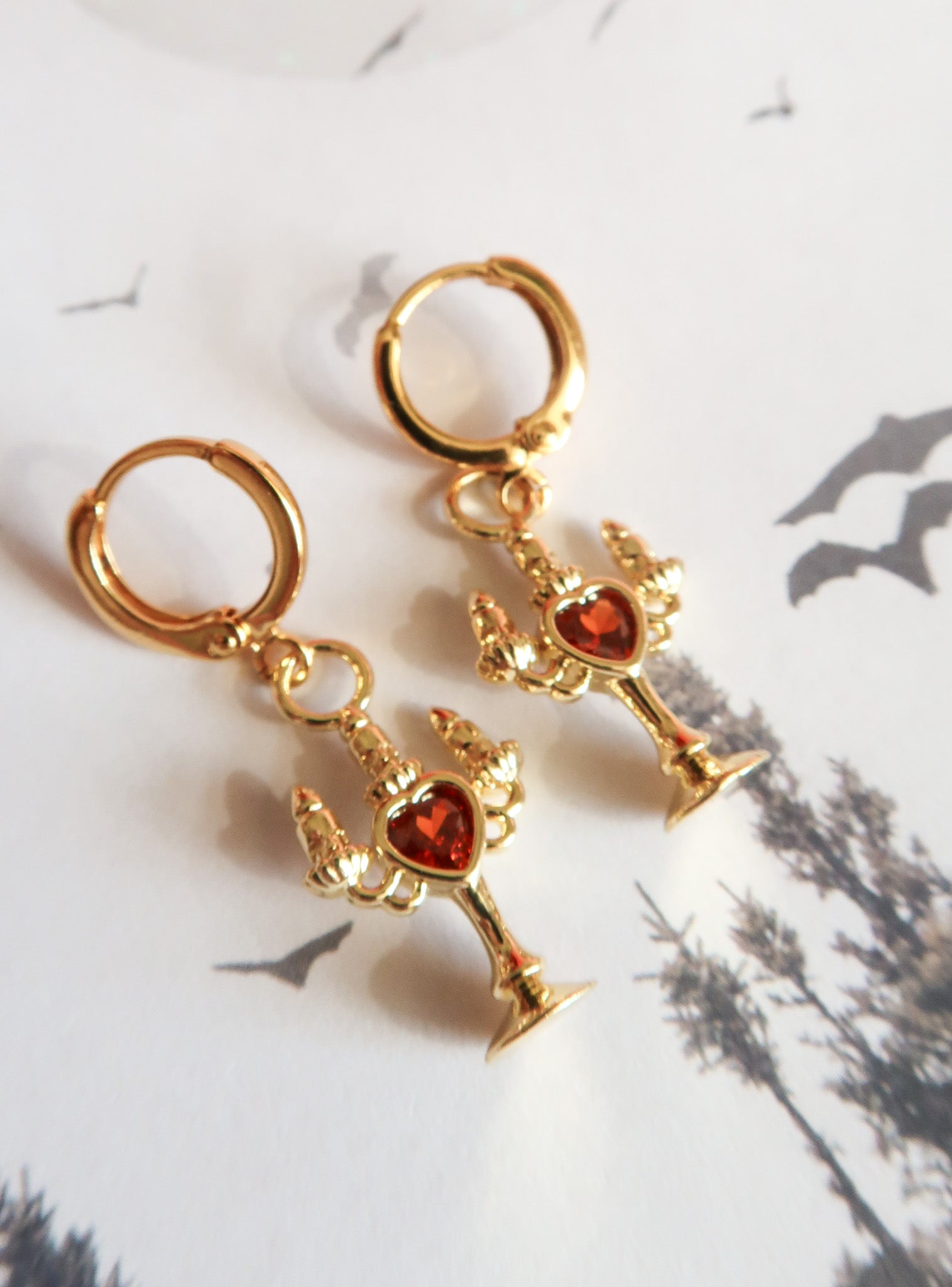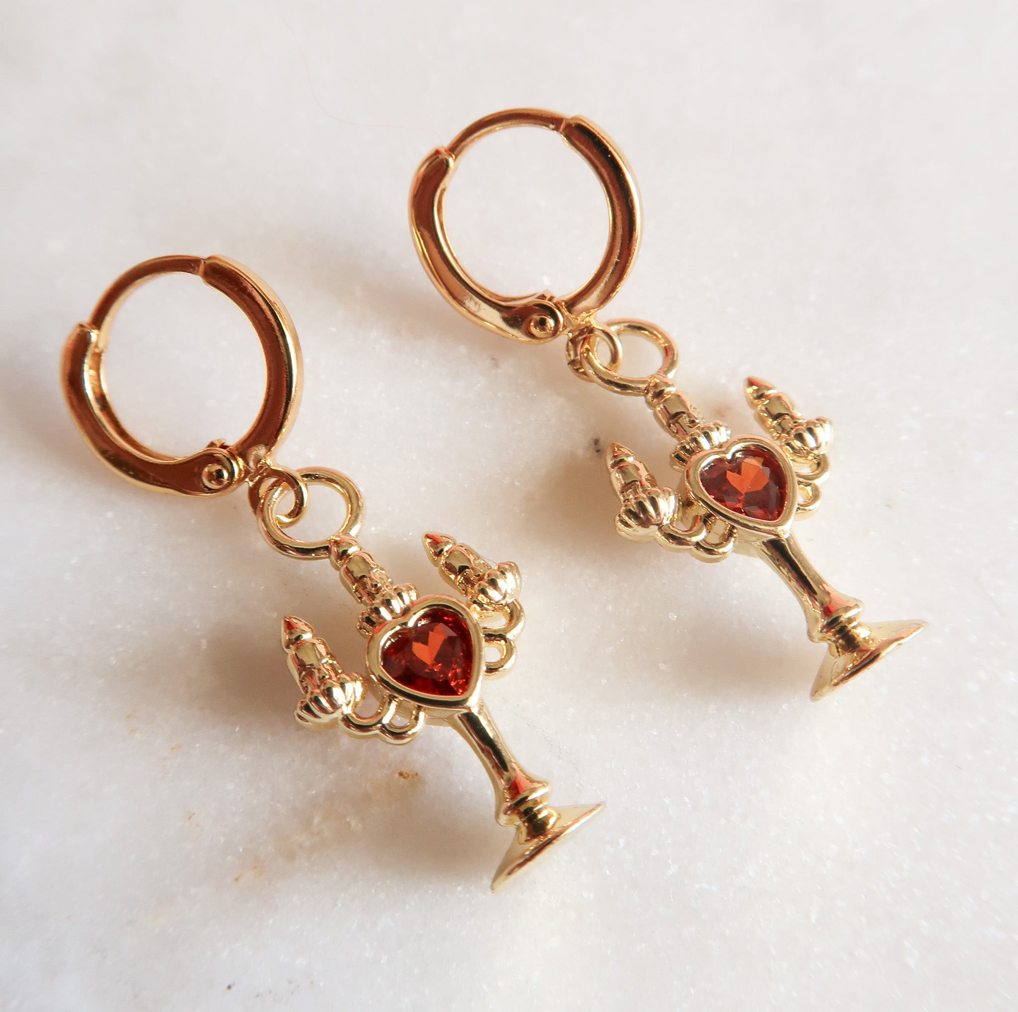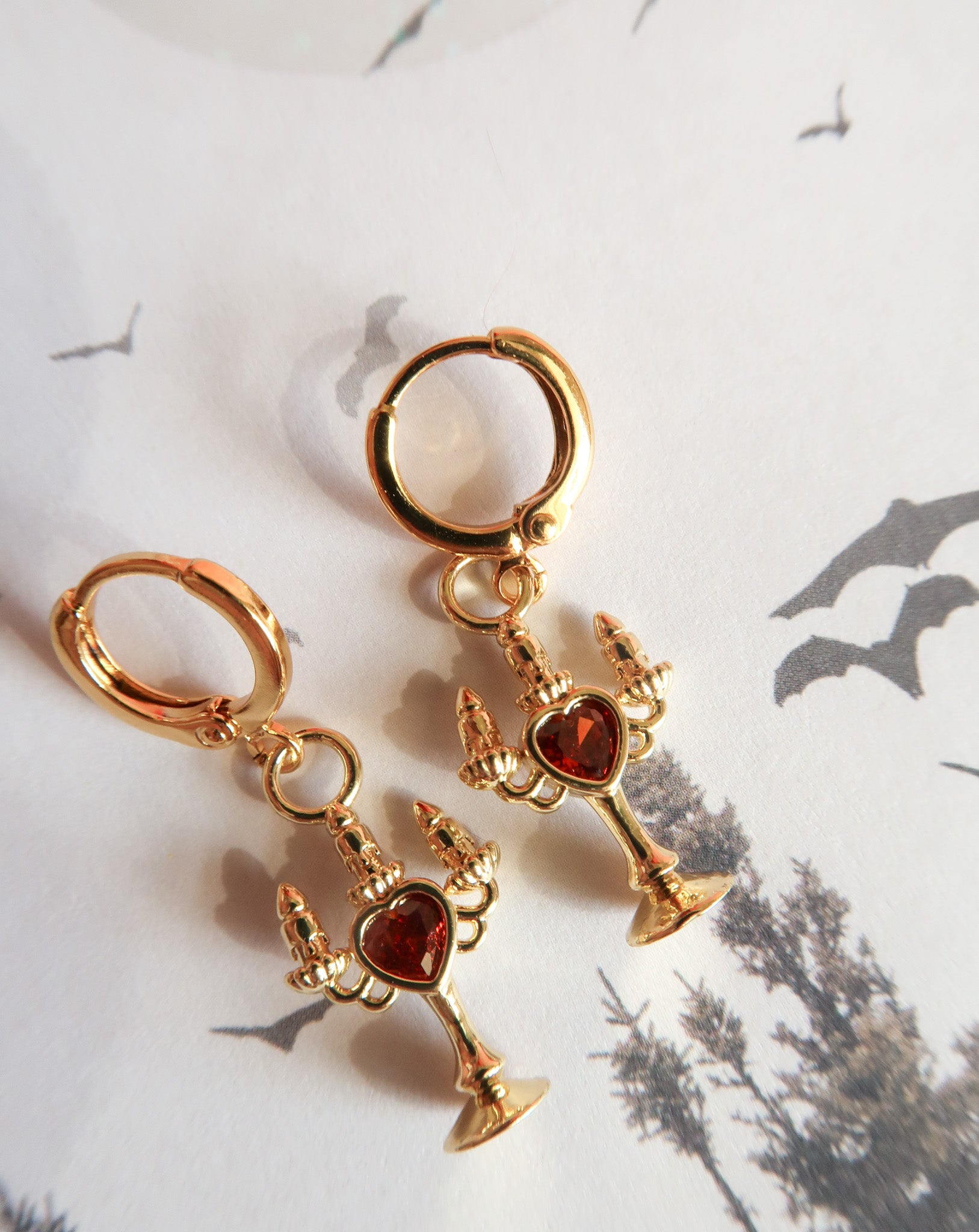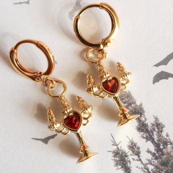 The Bleeding Flame earrings flicker with dark romance and the haunting glow of candlelight, each crimson cubic zirconia heart pulses of forbidden desire. Inspired by the allure of vampires and midnight whispers, these earrings capture the bittersweet thrill of longing, danger, and nights that feel infinite. Perfect for dreamers who adore a touch of mystery, eternal romance, and jewelry that speaks to the shadowed corners of the heart.