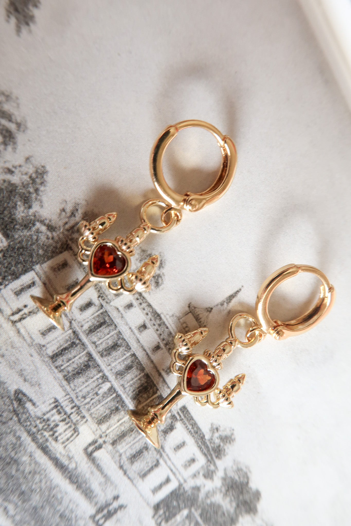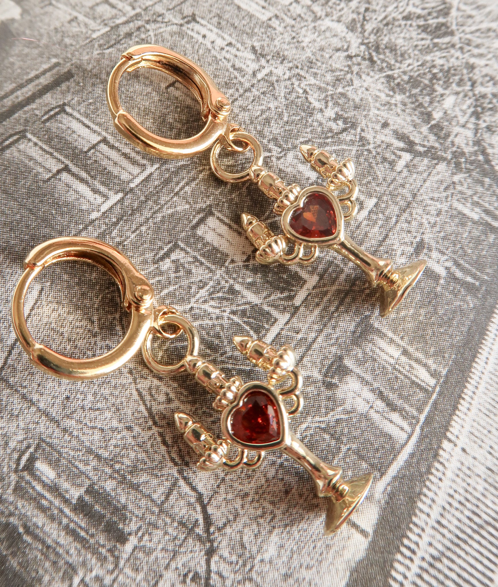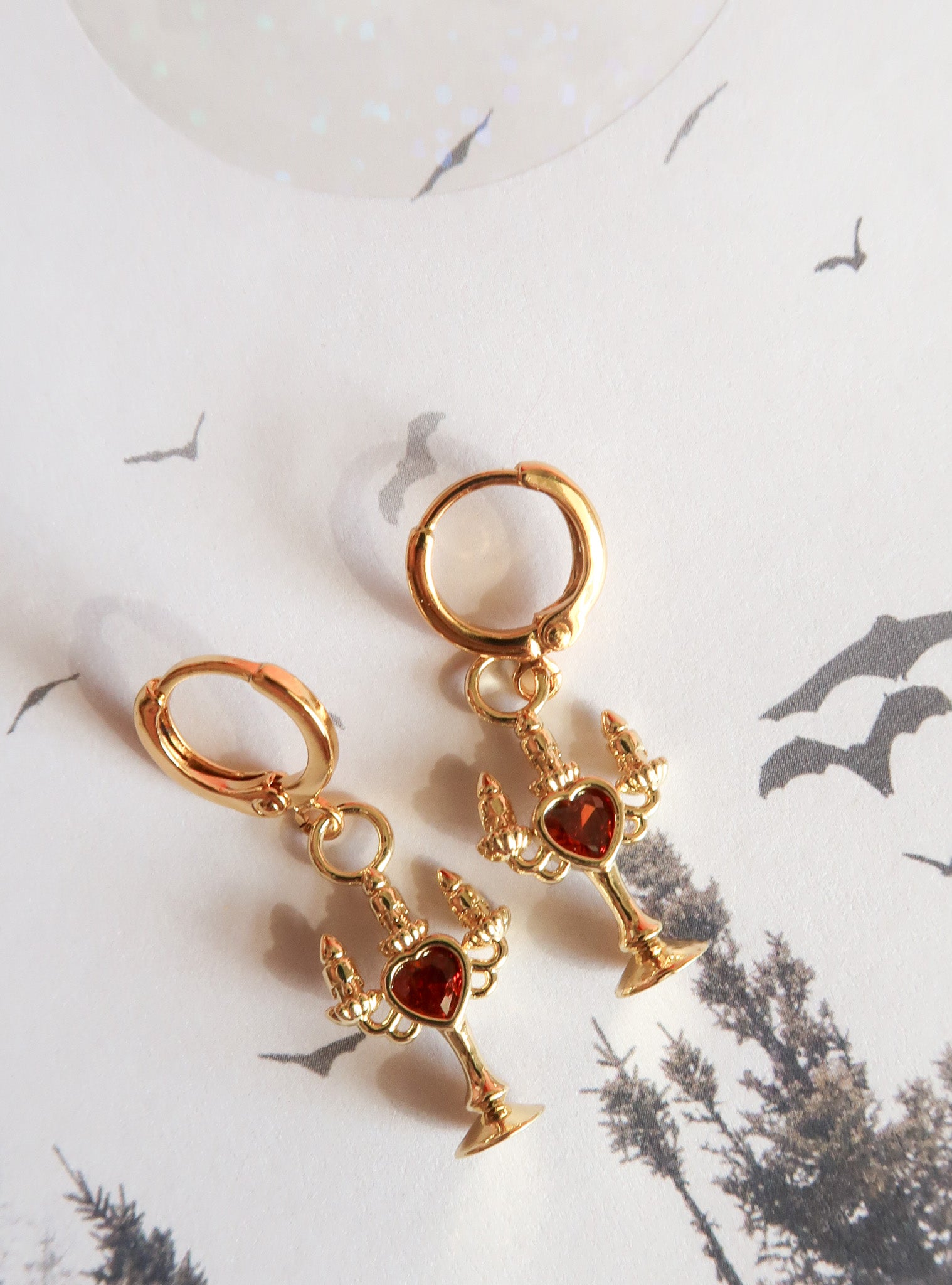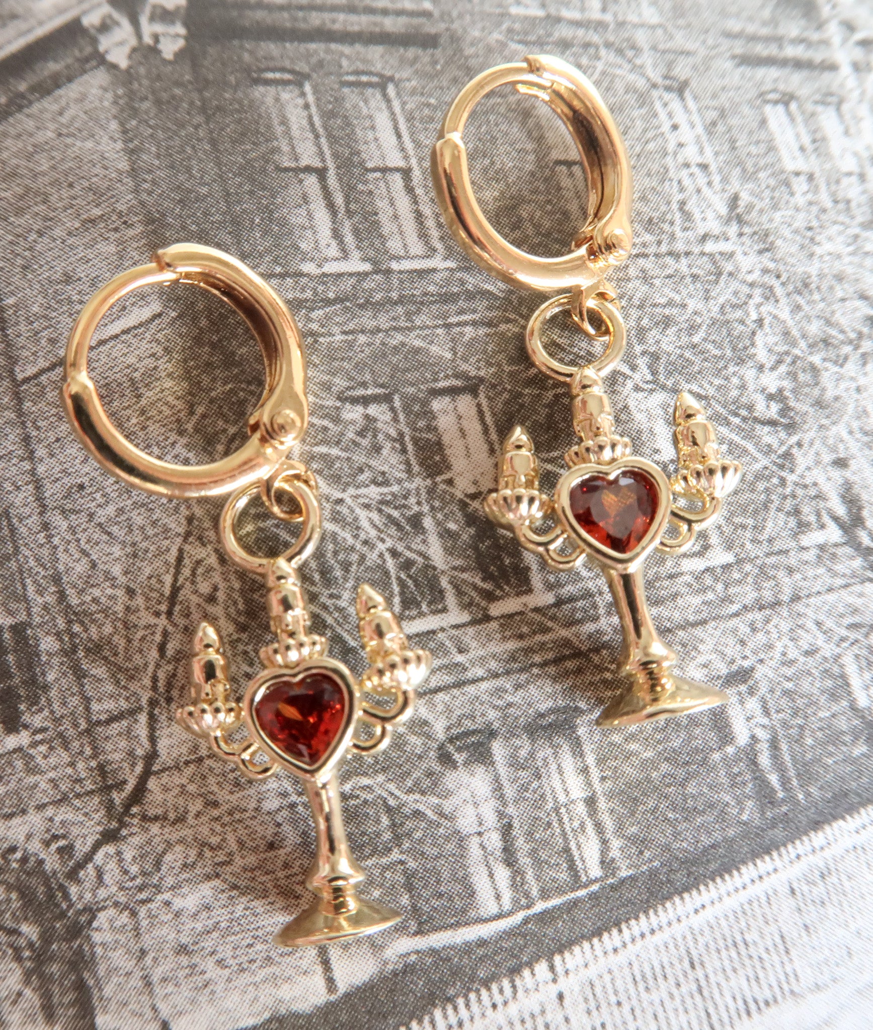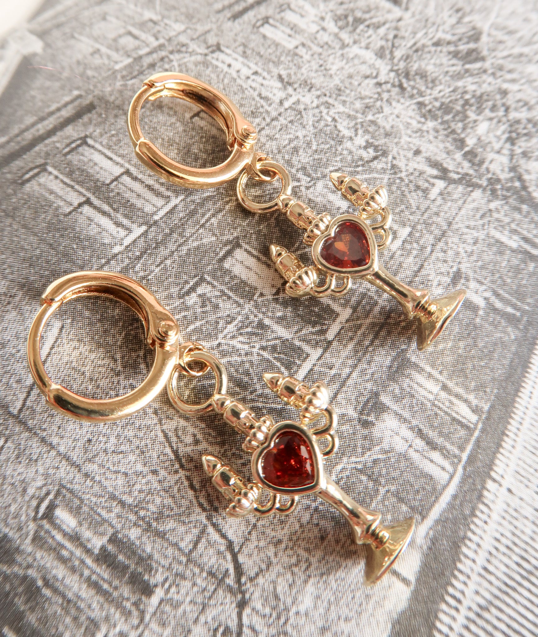 The Bleeding Flame earrings flicker with dark romance and the haunting glow of candlelight, each crimson cubic zirconia heart pulses of forbidden desire. Inspired by the allure of vampires and midnight whispers, these earrings capture the bittersweet thrill of longing, danger, and nights that feel infinite. Perfect for dreamers who adore a touch of mystery, eternal romance, and jewelry that speaks to the shadowed corners of the heart.
