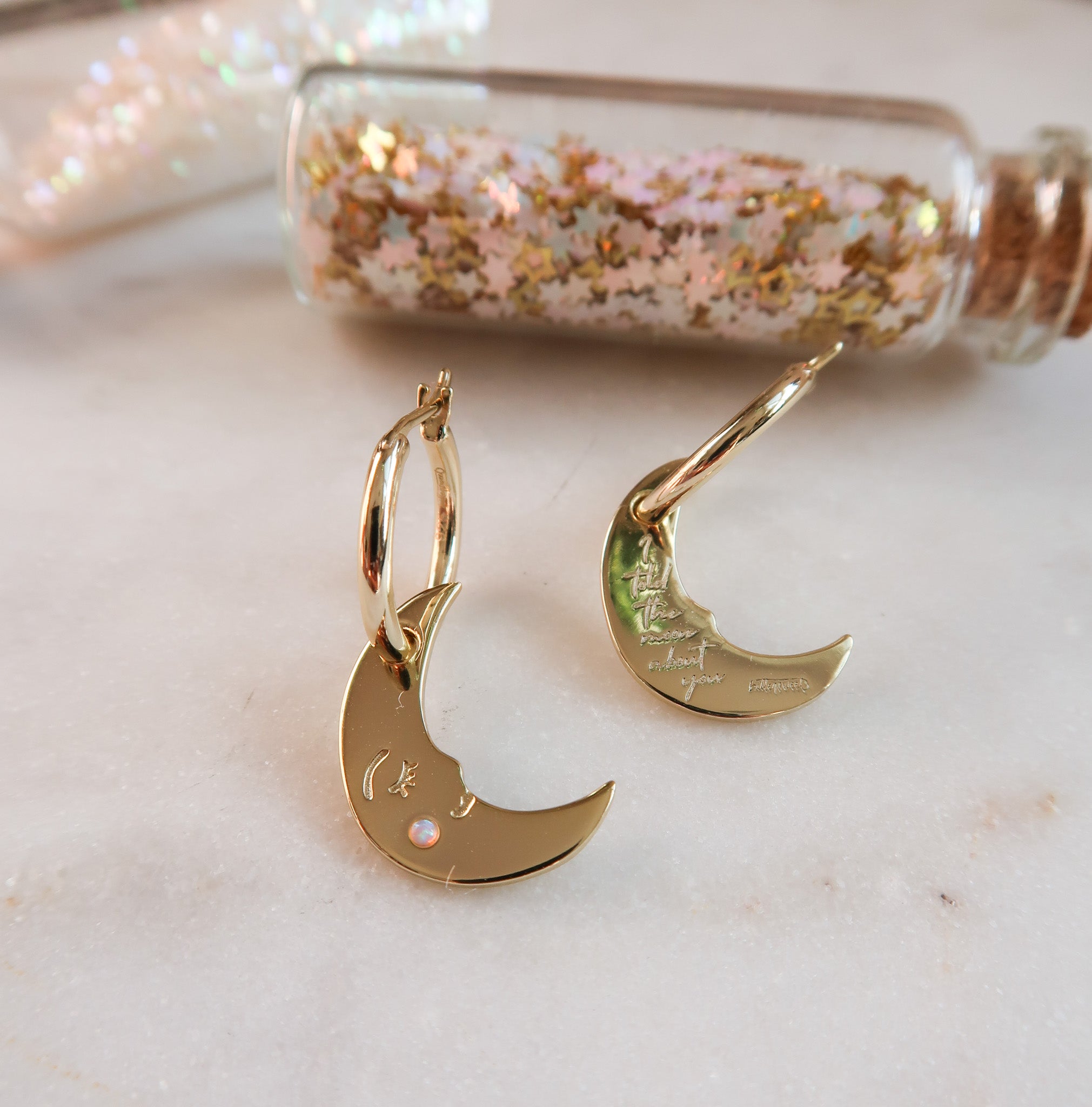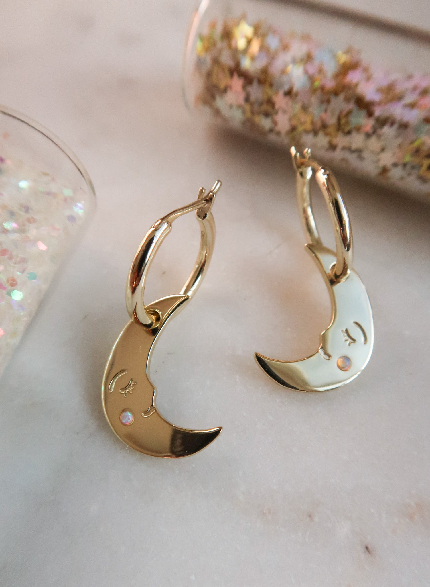 • NEW You Make me Blush Moon Earrings x 1 (14k Gold Plated Sterling Silver Opal Moon Hoop Earrings)
