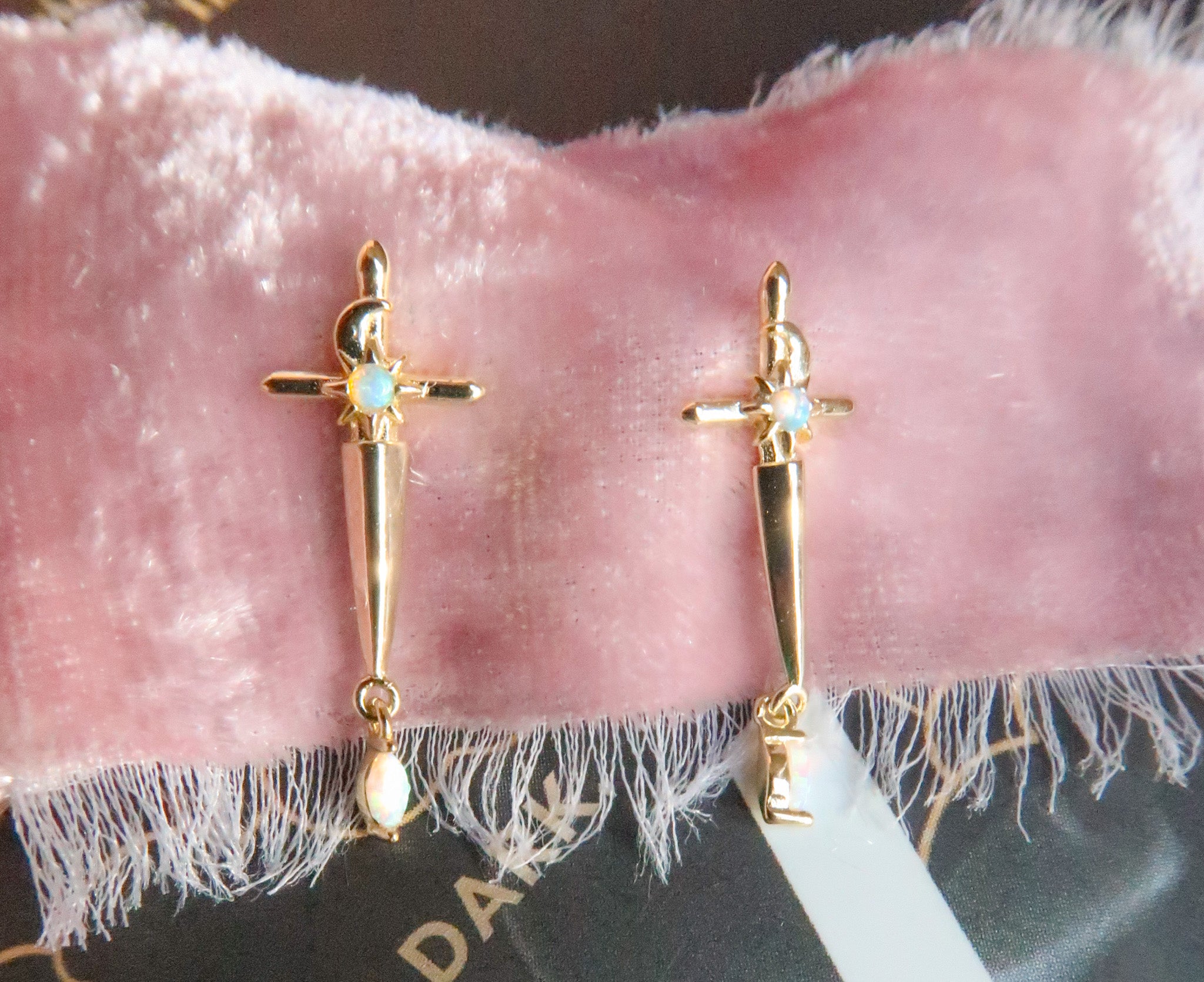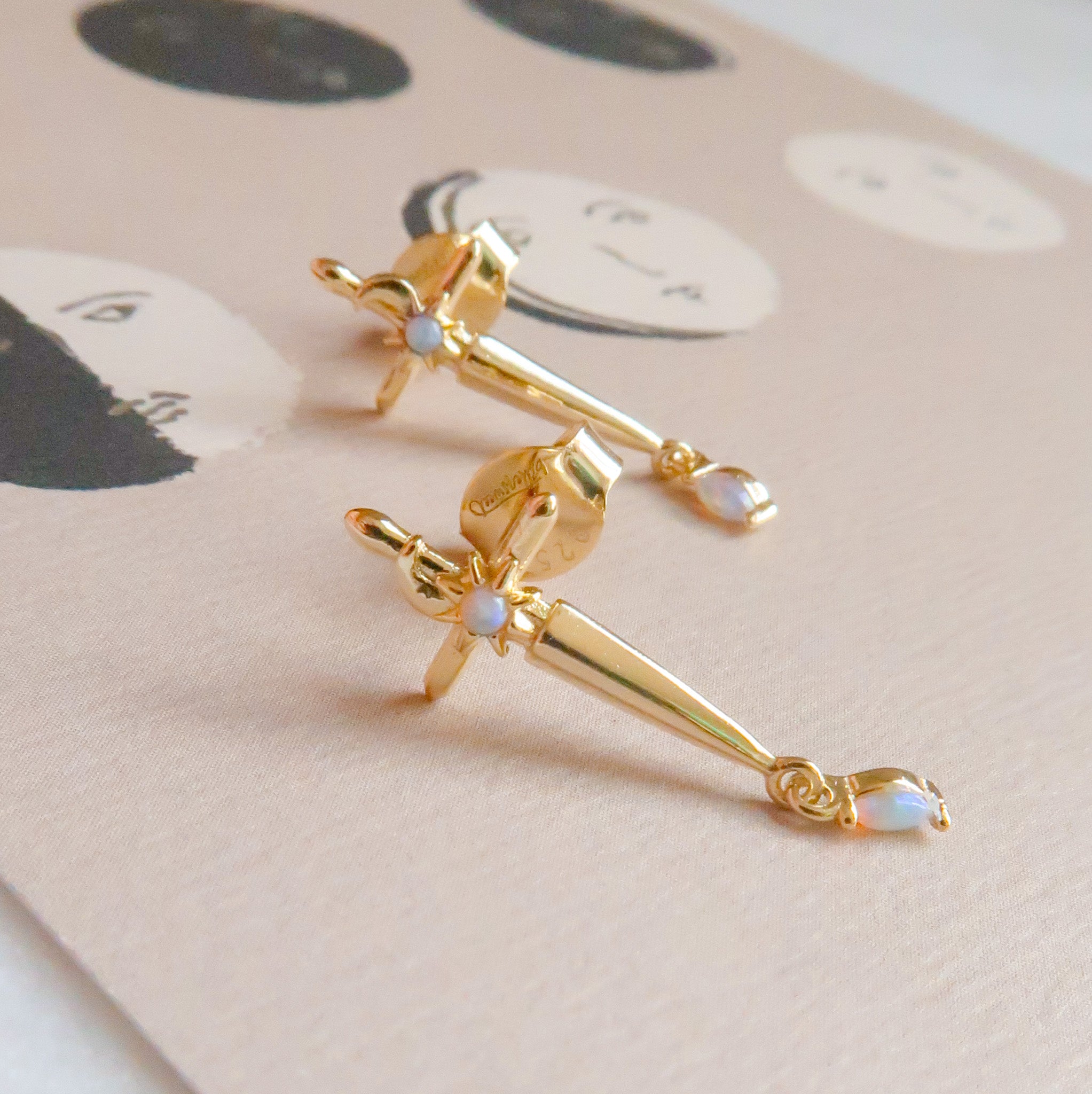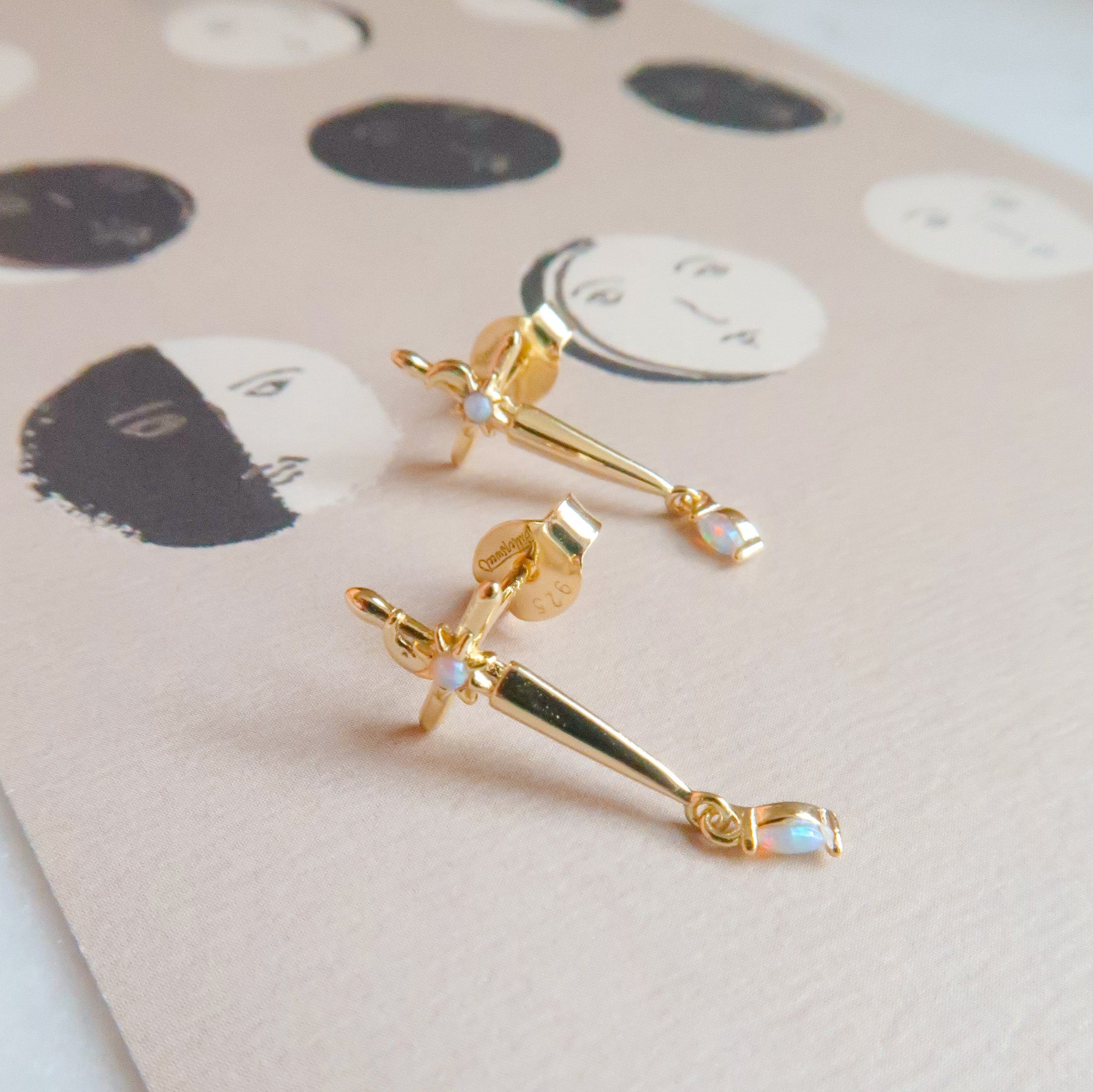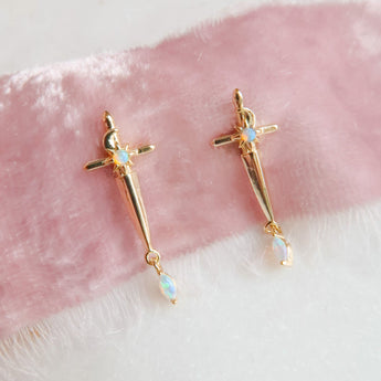 - 14k Gold Plated Sterling Silver Opal Dagger Studs
