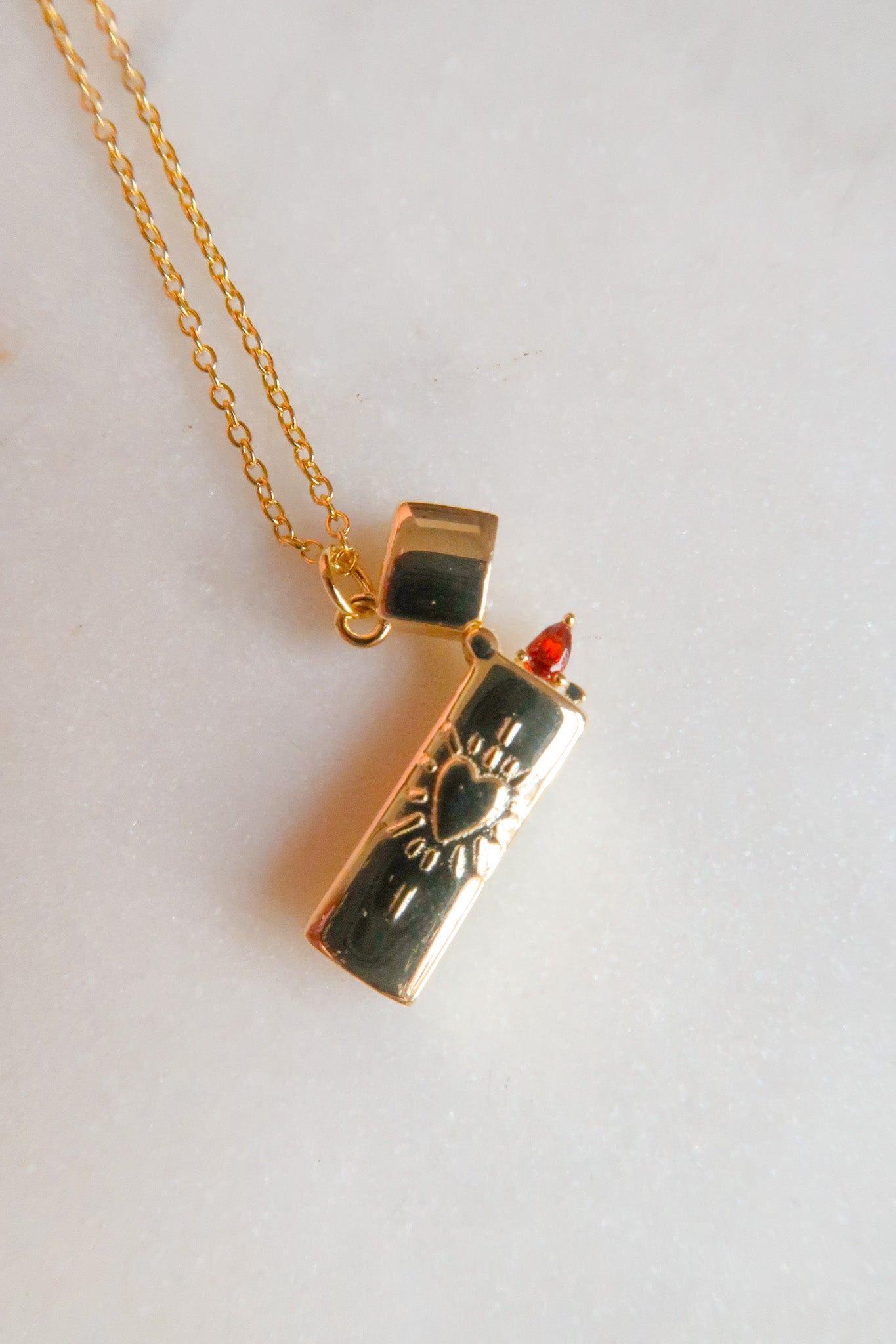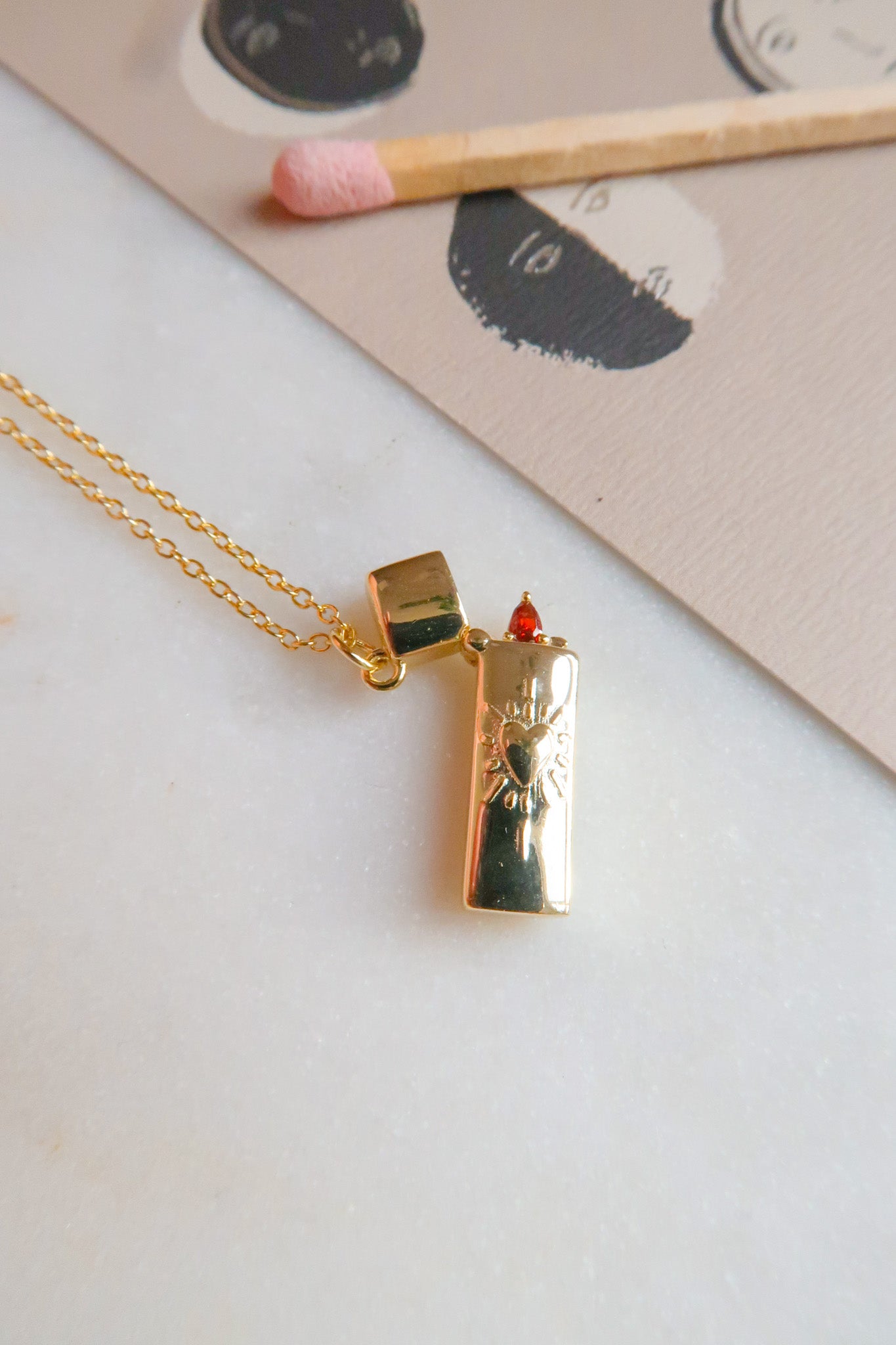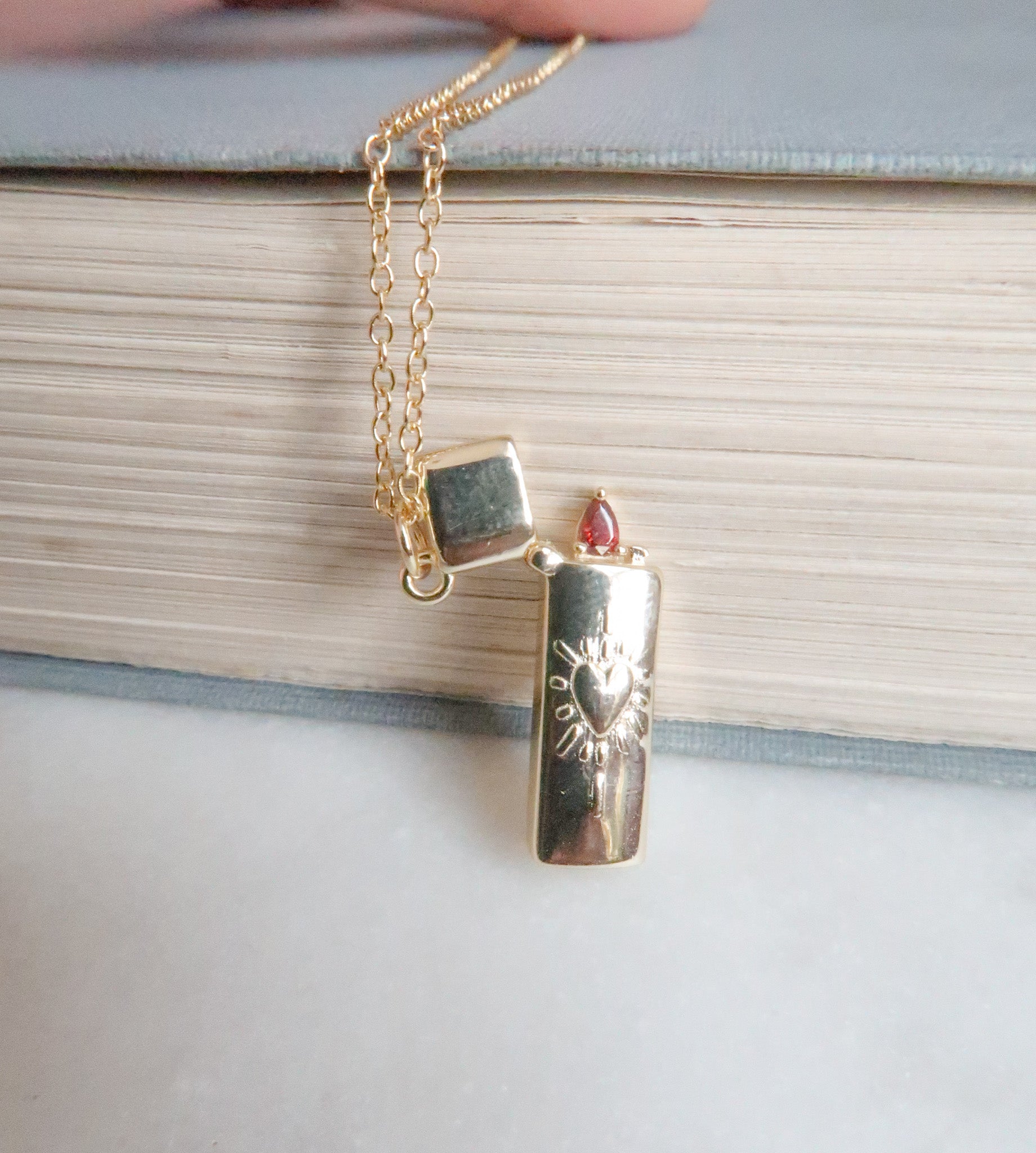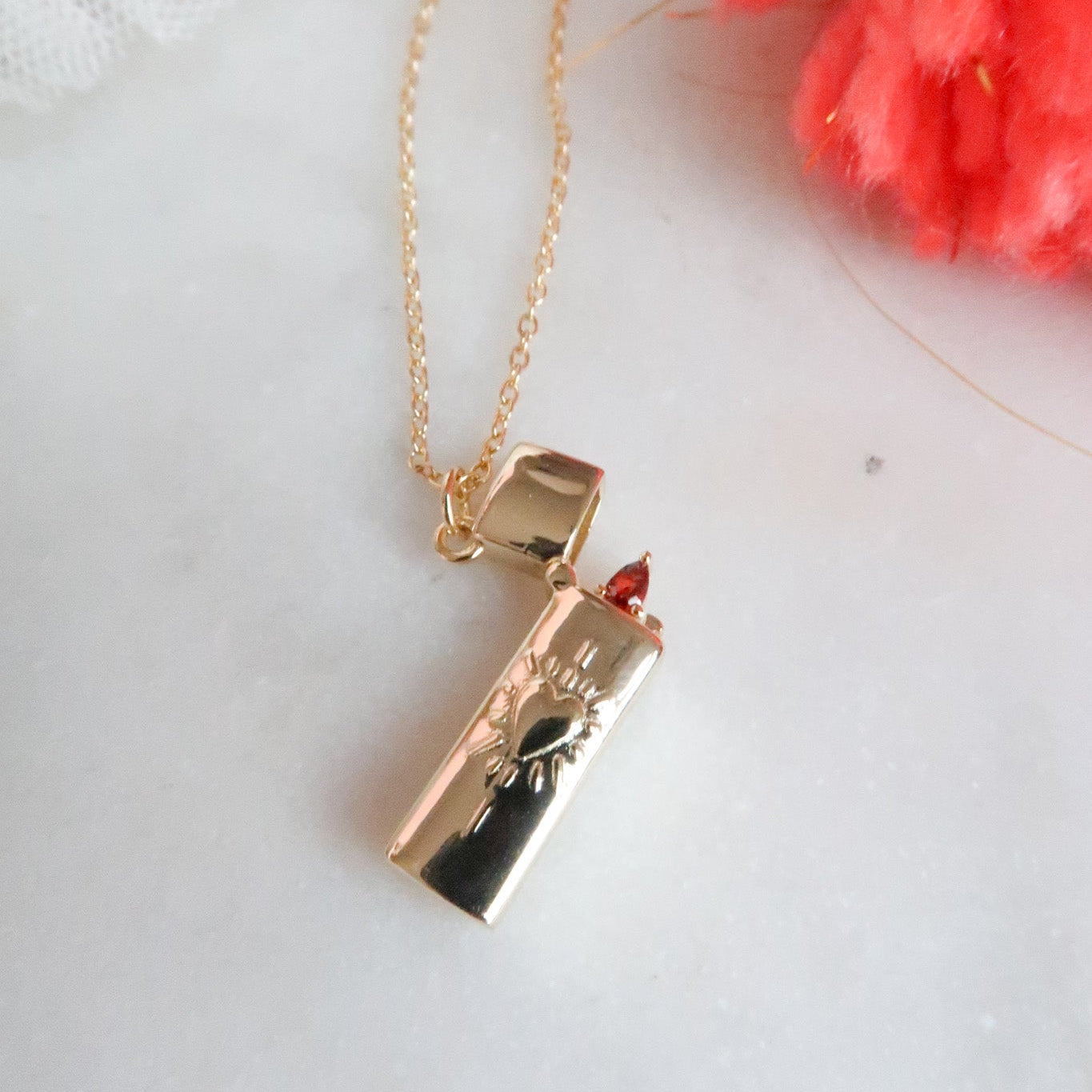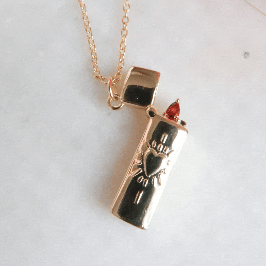 The Fireheart Lighter Necklace is a hidden spark for the dark days, inspired by the fierce resilience and quiet strength woven through Sarah J. Maas’s Throne of Glass series. Designed as a miniature opening lighter, this whimsical necklace reveals a glowing fuchsia cubic zirconia flame inside, a symbol of survival, hope, and the fire that refuses to go out. A tiny glowing heart adds a sentimental touch on the lighter, making it feel like a secret promise carried close to your chest. Both nostalgic and empowering, this fantasy inspired necklace is perfect for romantasy readers, sentimental souls, and anyone who believes even the smallest flame can light the way forward.