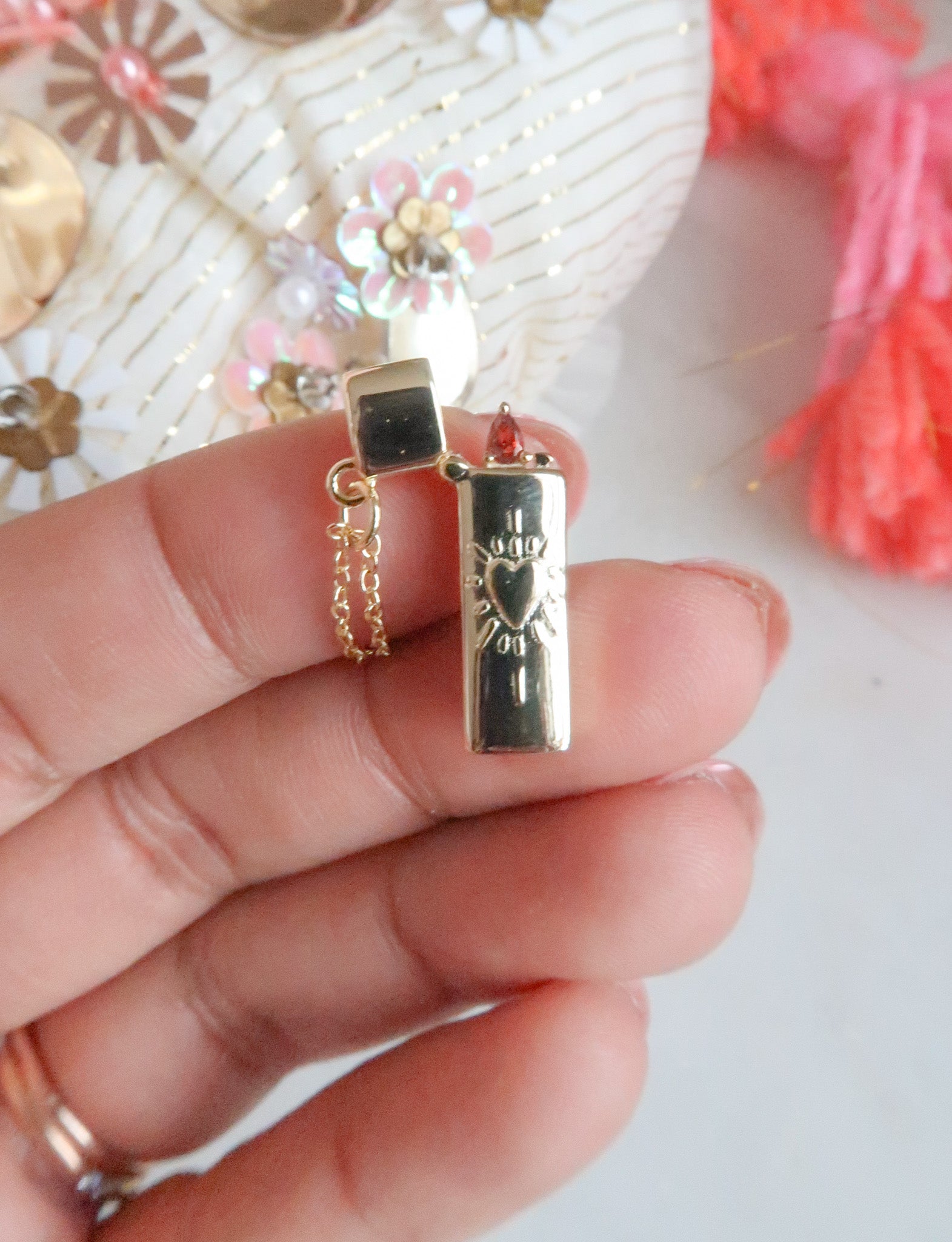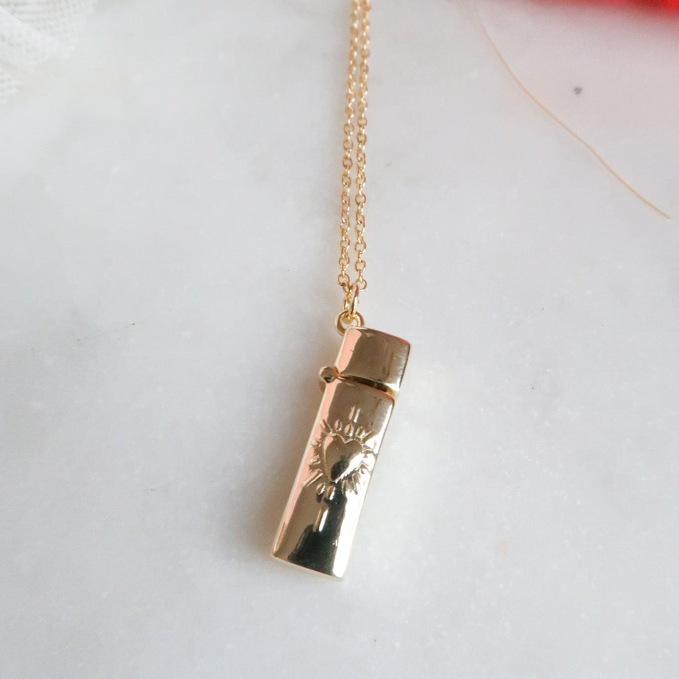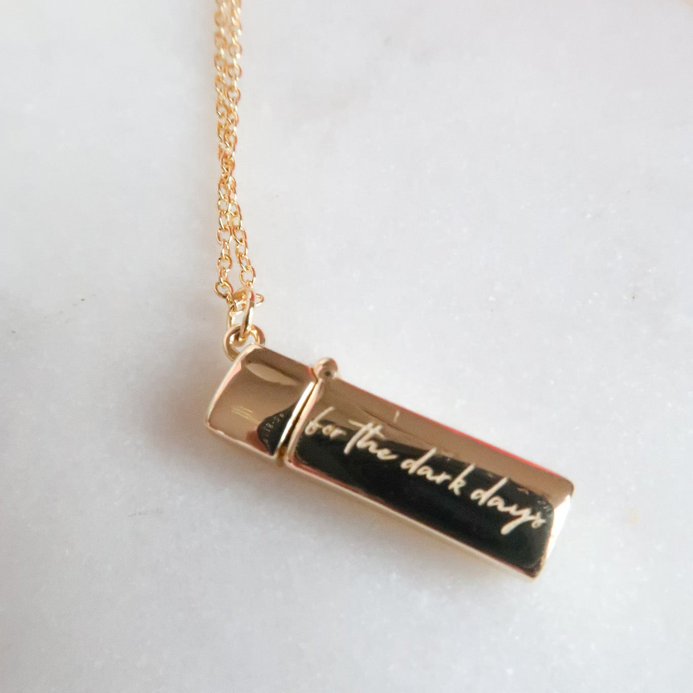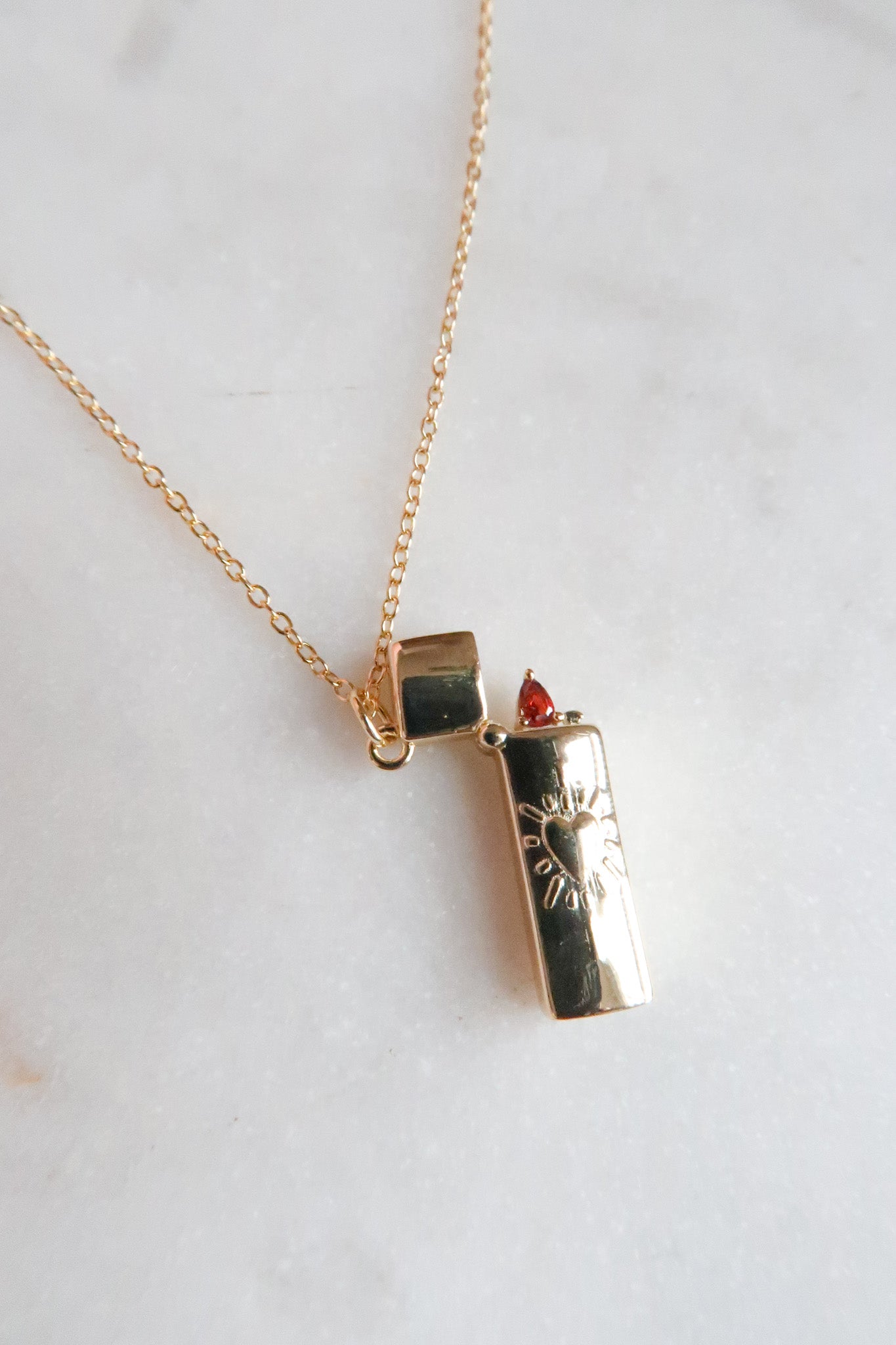 The Fireheart Lighter Necklace is a hidden spark for the dark days, inspired by the fierce resilience and quiet strength woven through Sarah J. Maas’s Throne of Glass series. Designed as a miniature opening lighter, this whimsical necklace reveals a glowing fuchsia cubic zirconia flame inside, a symbol of survival, hope, and the fire that refuses to go out. A tiny glowing heart adds a sentimental touch on the lighter, making it feel like a secret promise carried close to your chest. Both nostalgic and empowering, this fantasy inspired necklace is perfect for romantasy readers, sentimental souls, and anyone who believes even the smallest flame can light the way forward.