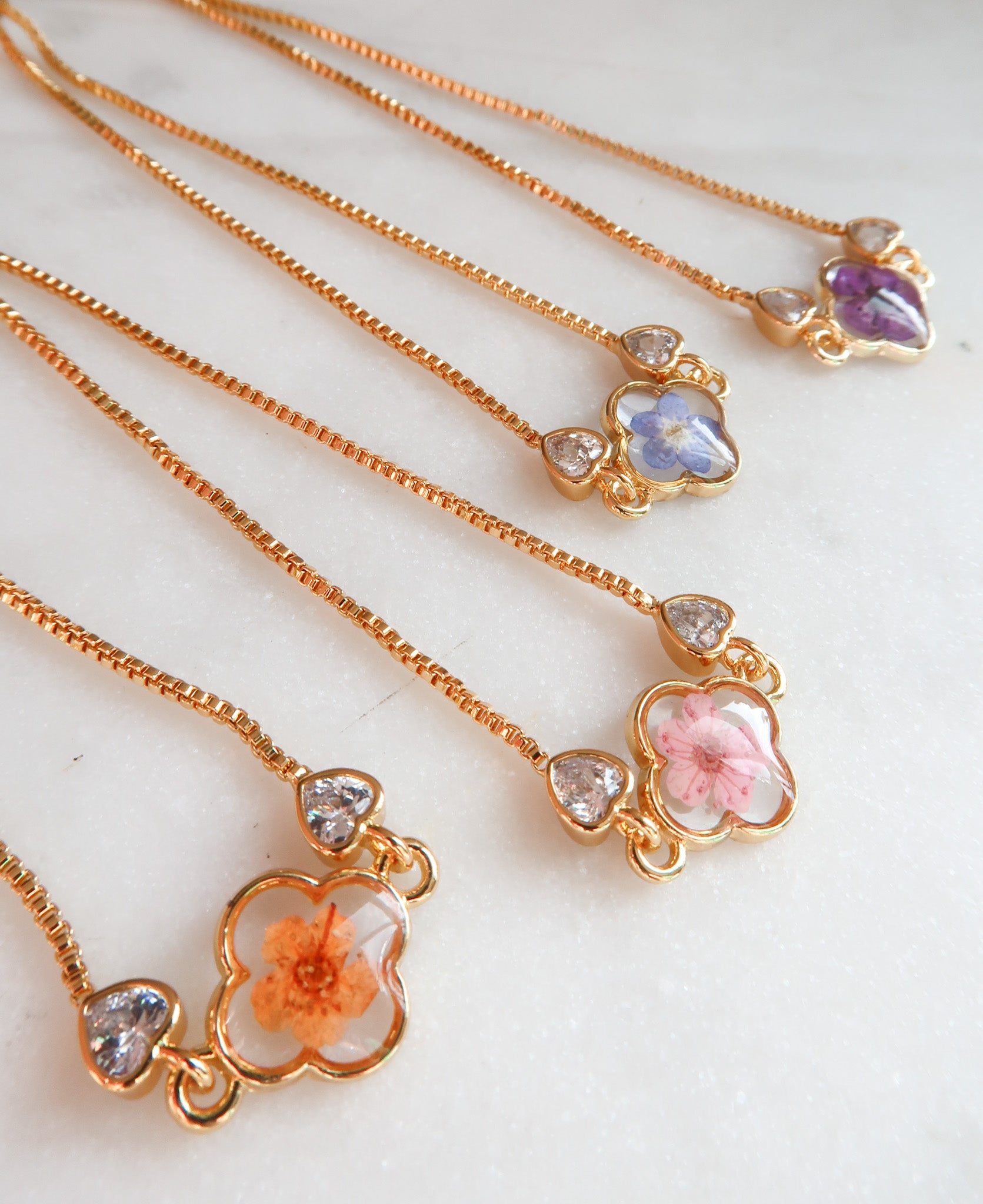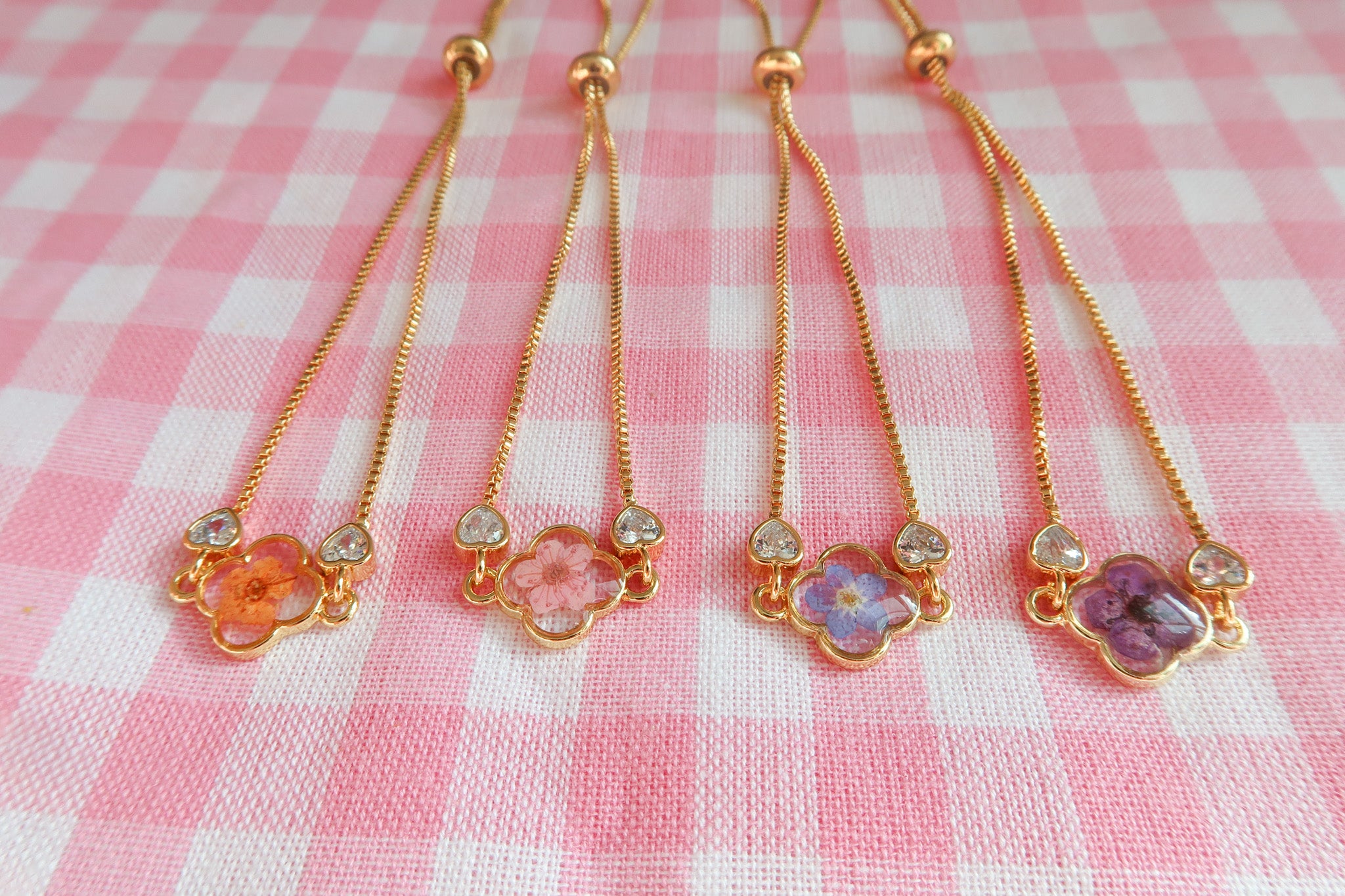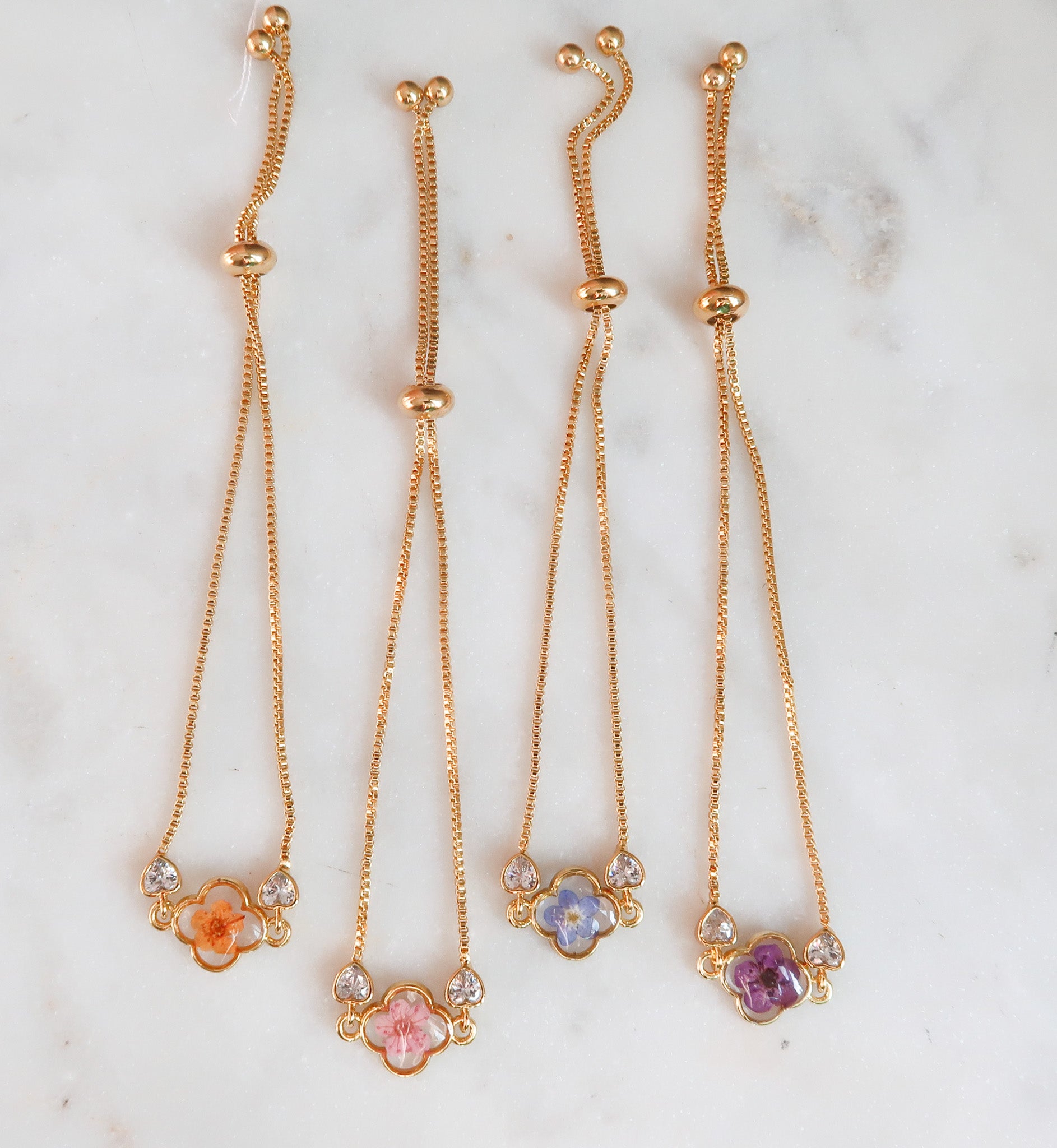 Flower Remedies Bracelets are tiny gardens worn on the wrist, where delicate dried blooms are set in resin. Each charm carries the magic of a moment paused, a petal pressed between pages, or a scent remembered long after the bouquet has faded. These bracelets are for those who believe in the gentle healing of nature, the poetry of small gestures, and the comfort found in collecting pieces of the world that make the heart bloom.