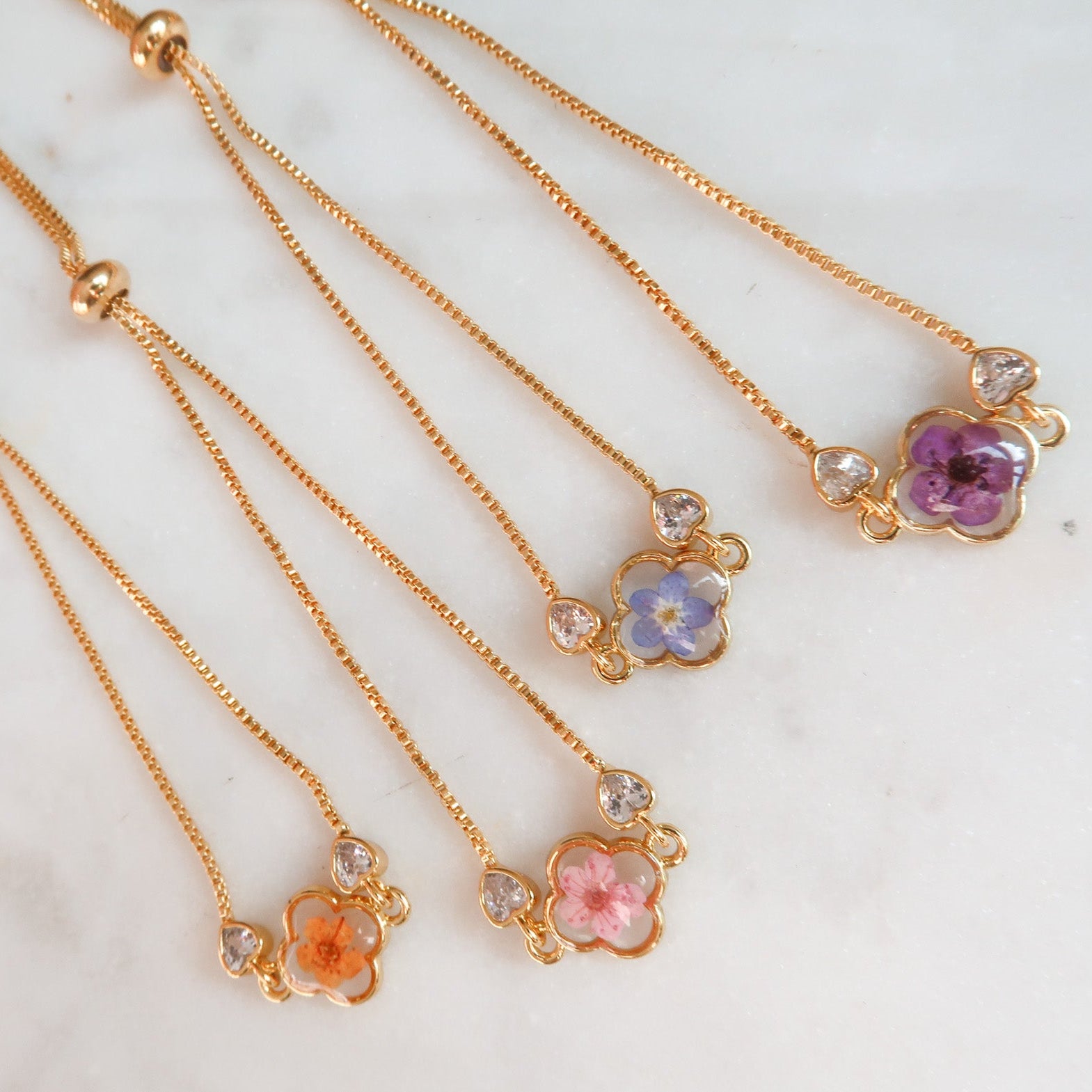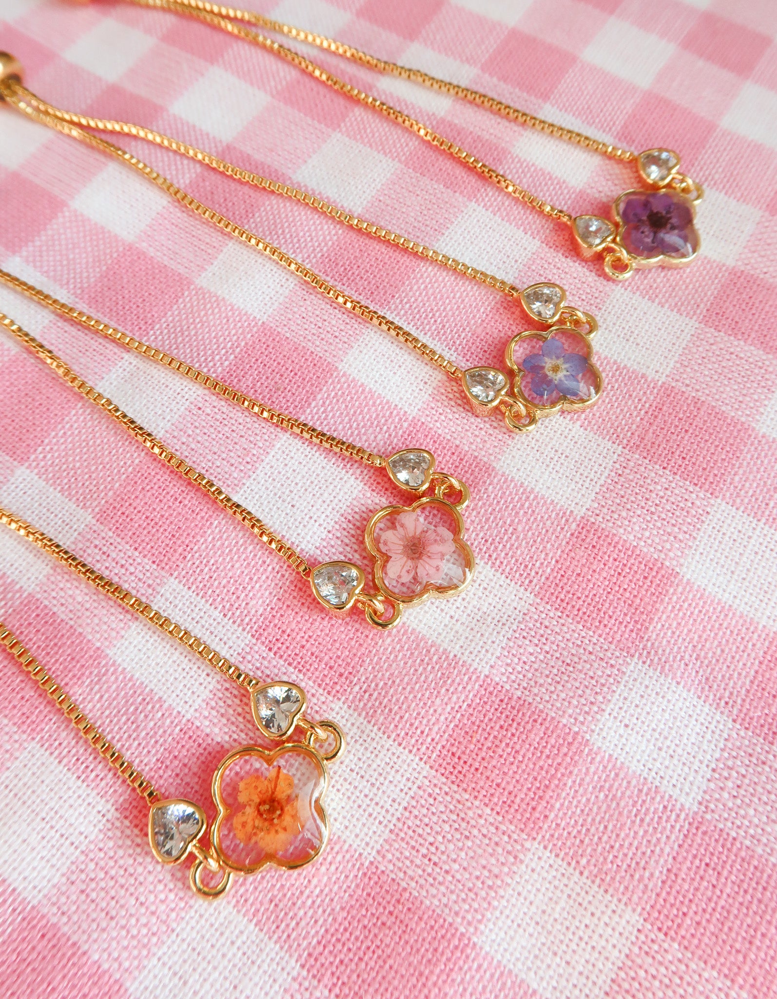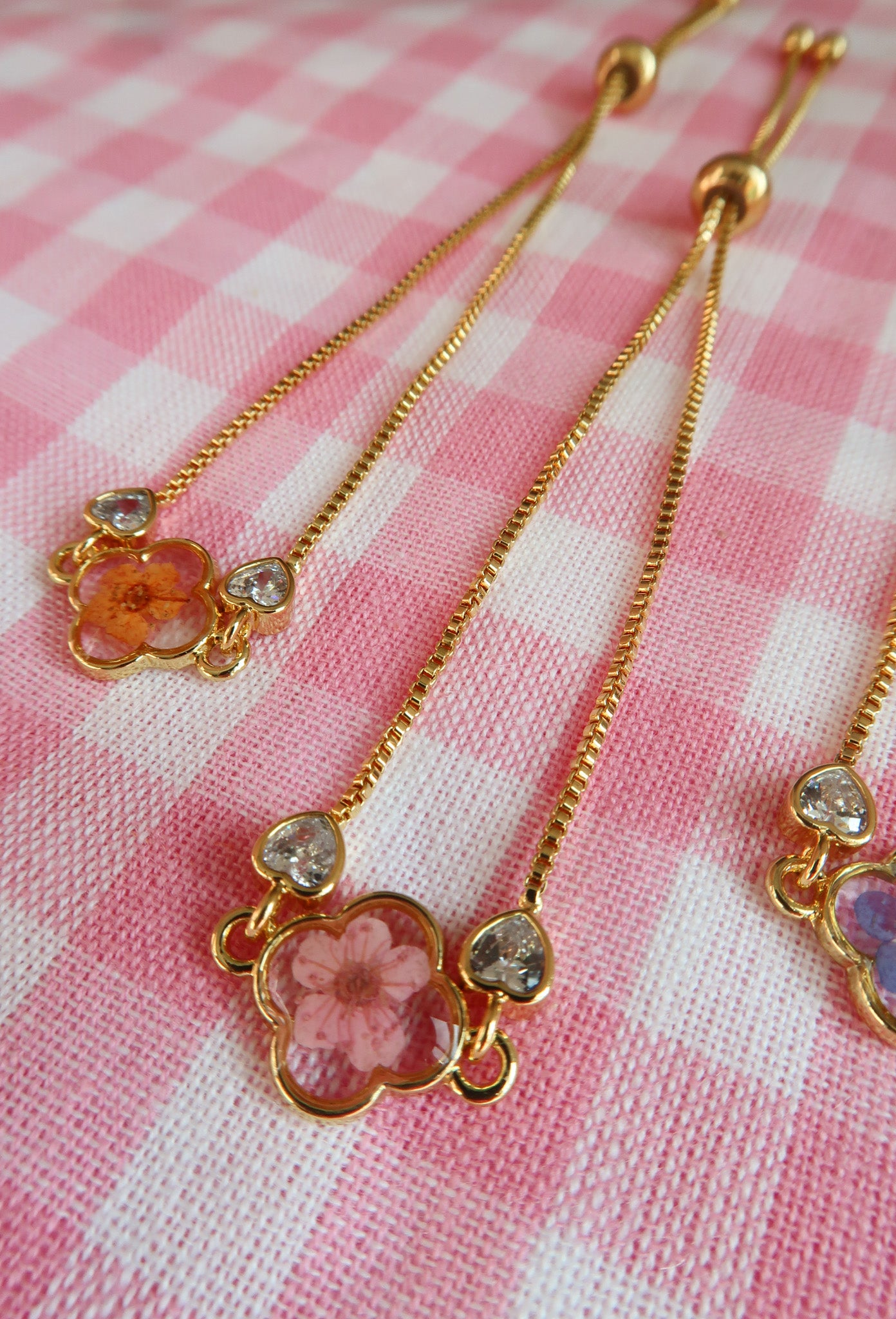 Flower Remedies Bracelets are tiny gardens worn on the wrist, where delicate dried blooms are set in resin. Each charm carries the magic of a moment paused, a petal pressed between pages, or a scent remembered long after the bouquet has faded. These bracelets are for those who believe in the gentle healing of nature, the poetry of small gestures, and the comfort found in collecting pieces of the world that make the heart bloom.