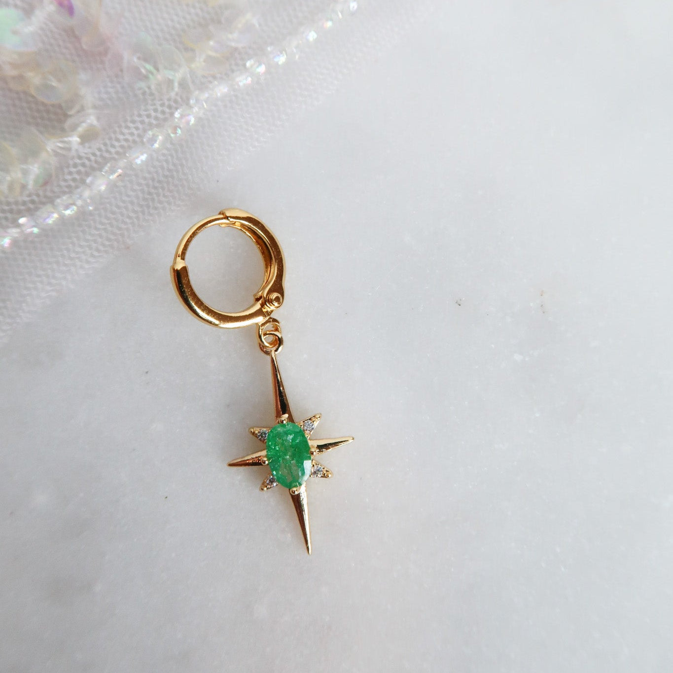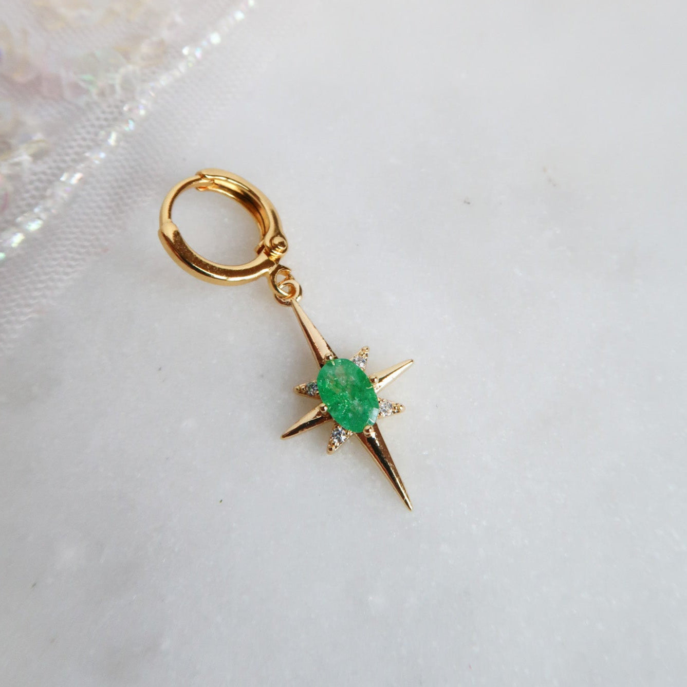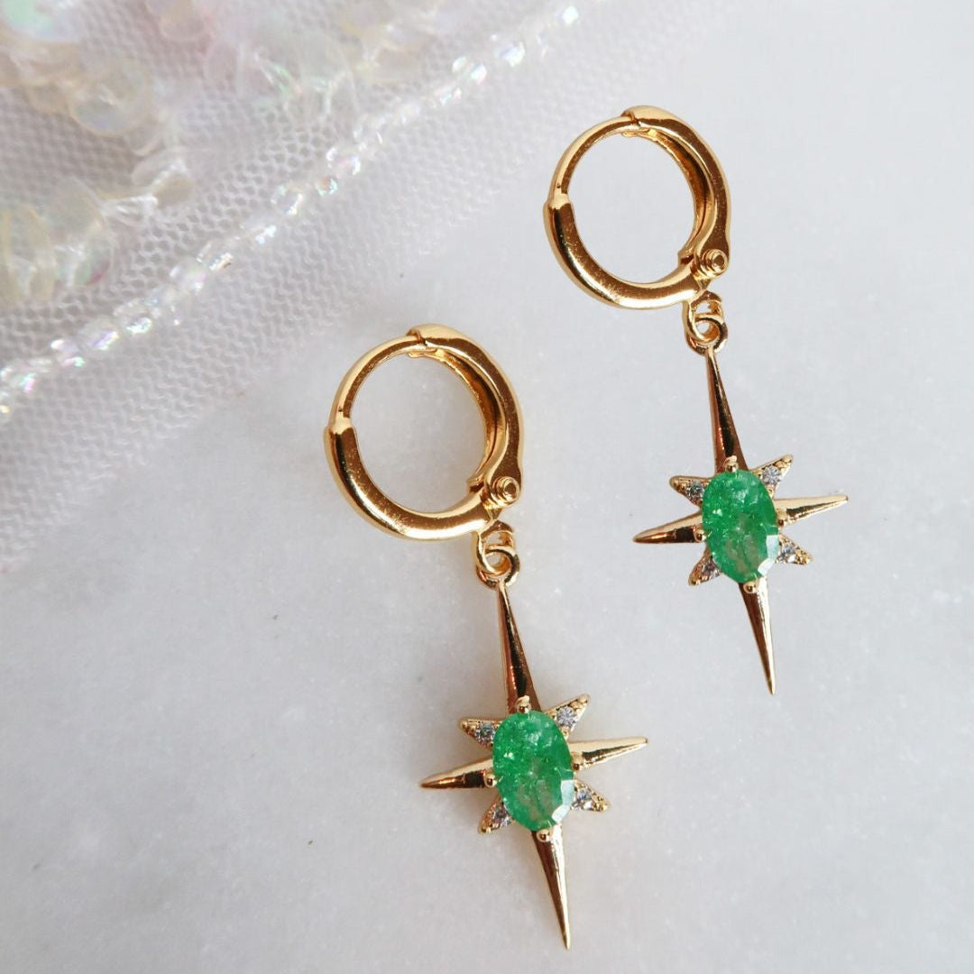 The Forest of Stars Earrings are a whispered memory of nights beneath emerald canopies, where the world feels hushed and infinite. Featuring green cubic zirconia star charms that glimmer like fireflies caught between branches, these earrings hold the magic of getting lost in wonder and the comfort of knowing the universe is always watching back. Forest of Stars is for the ones who see constellations in tree lines, who find poetry in shadows, and who carry the wilderness with them wherever they go. A dreamy pair of star earrings for wanderers, romantics, and lovers of celestial jewelry.