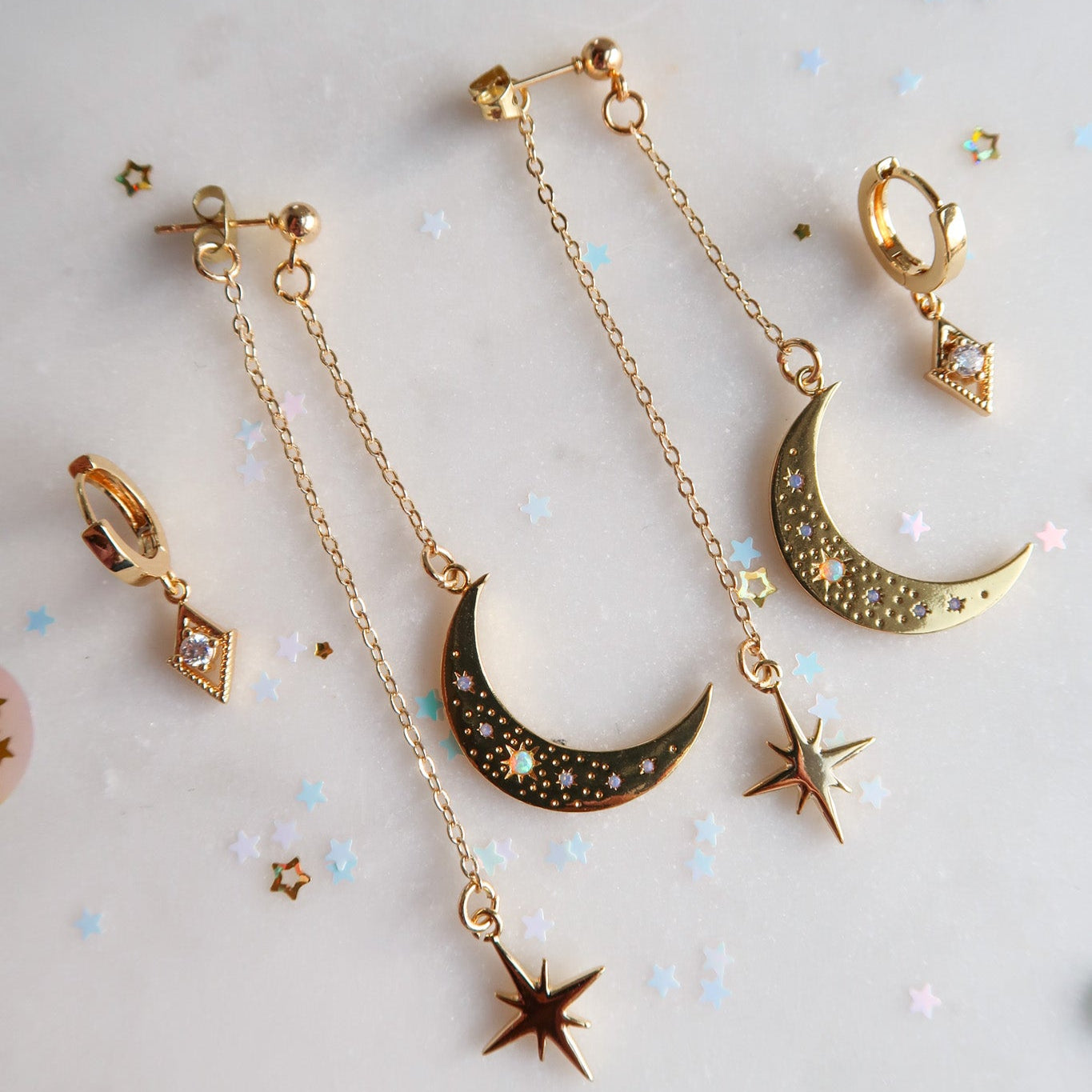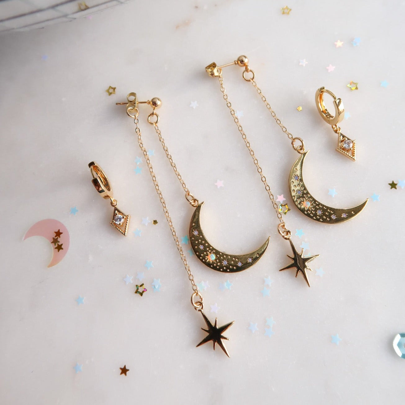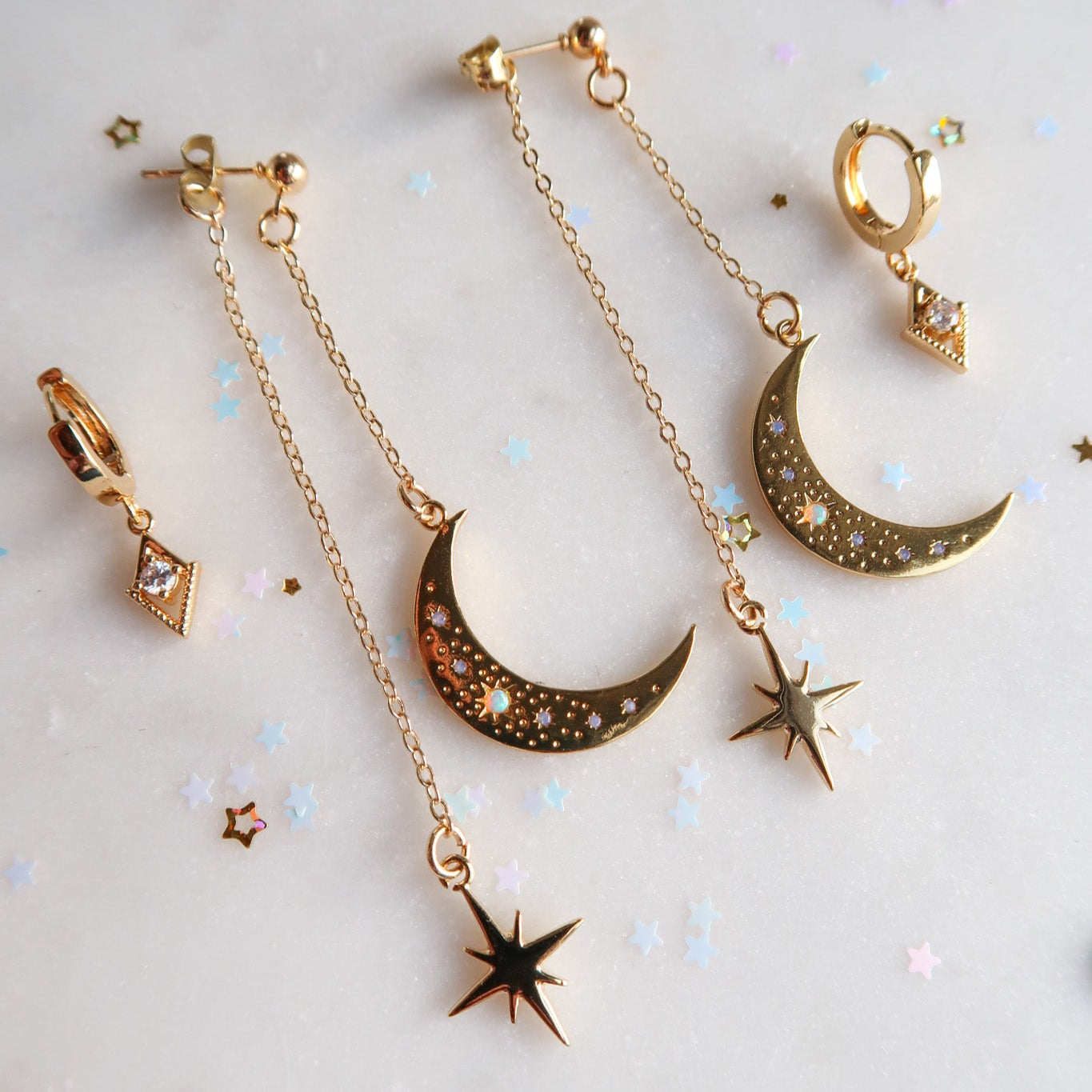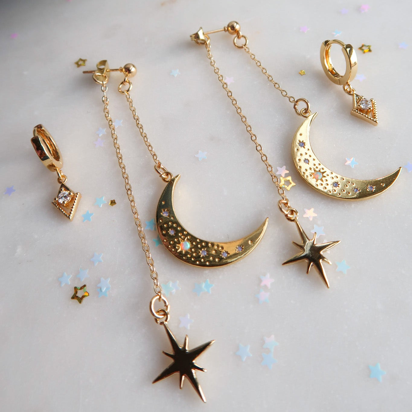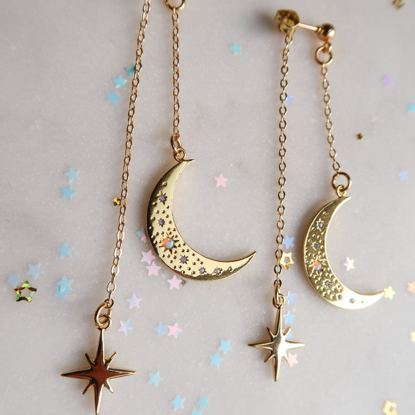 The Kiss Me at Midnight earrings are gold plated moon and star earrings that capture the magic of late-night wishes and celestial love stories. Designed for everyday wear with a dreamy, stargazed touch, these earrings are for the ones who believe in serendipity, in sparks under moonlight, and in the beauty of being soft and bold all at once. Whether you’re chasing constellations or dancing through your own midnight moment, let these earrings remind you that the universe always meets you where your heart is, especially when it’s wide open.