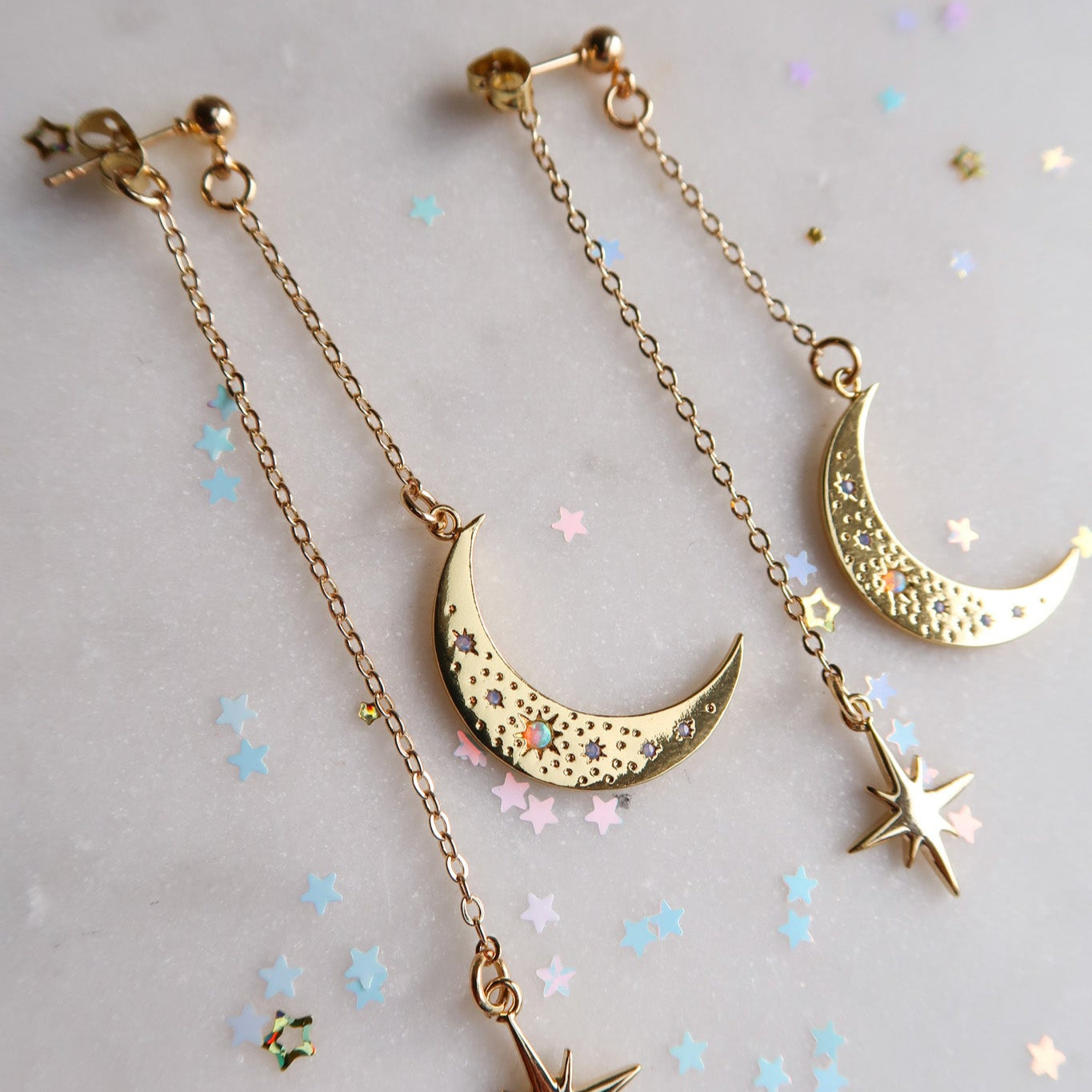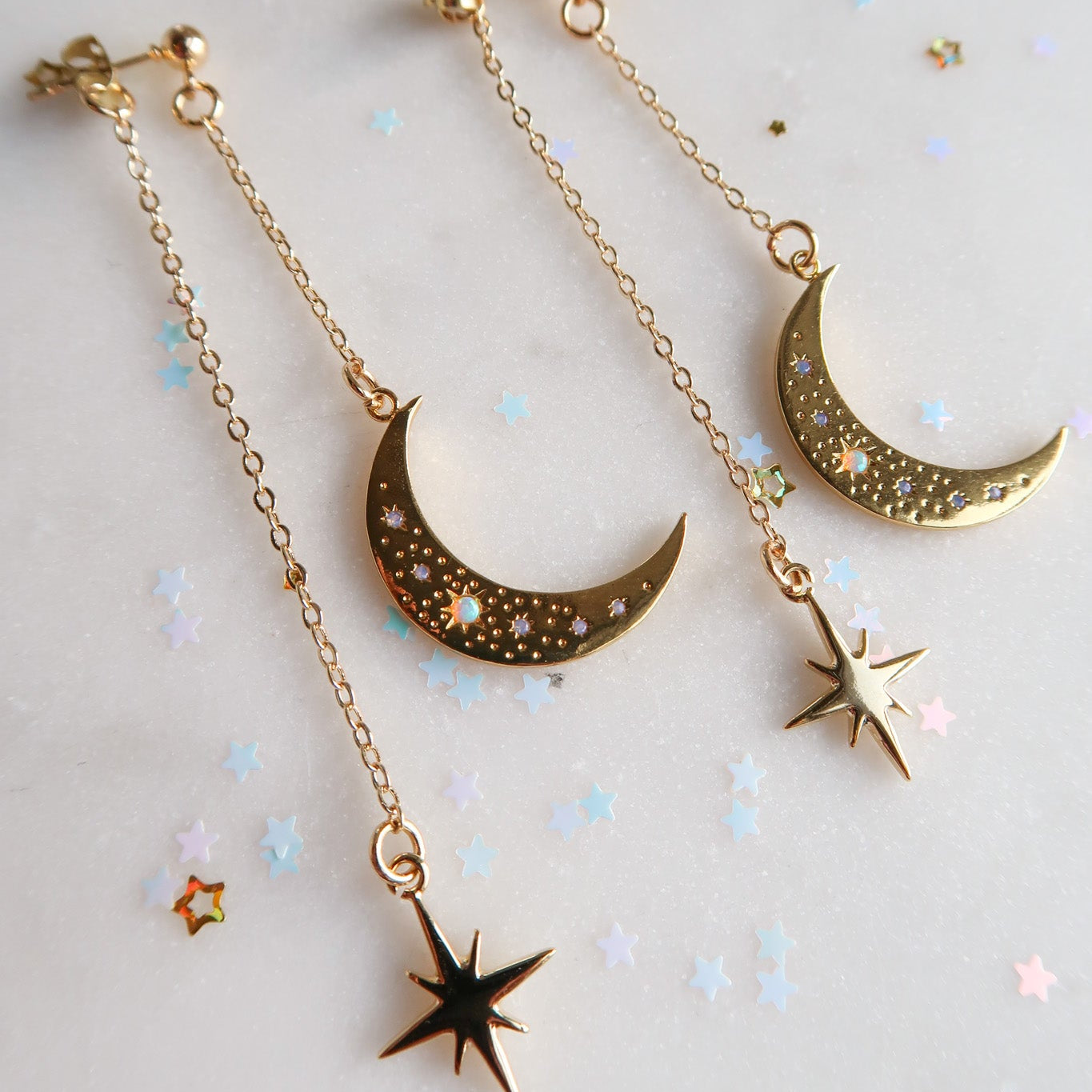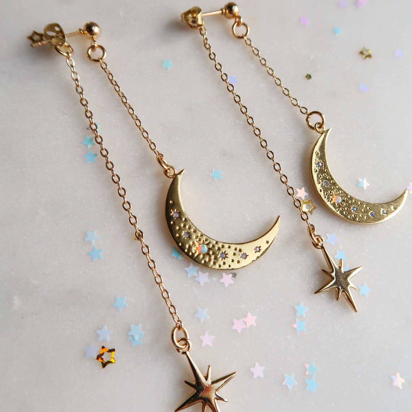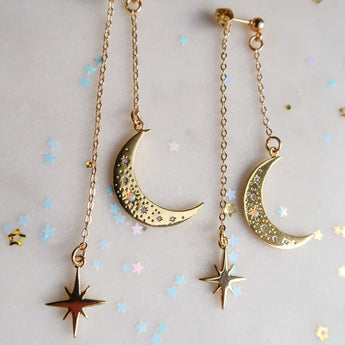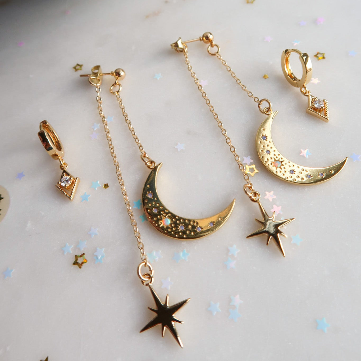 The Kiss Me at Midnight earrings are gold plated moon and star earrings that capture the magic of late-night wishes and celestial love stories. Designed for everyday wear with a dreamy, stargazed touch, these earrings are for the ones who believe in serendipity, in sparks under moonlight, and in the beauty of being soft and bold all at once. Whether you’re chasing constellations or dancing through your own midnight moment, let these earrings remind you that the universe always meets you where your heart is, especially when it’s wide open.