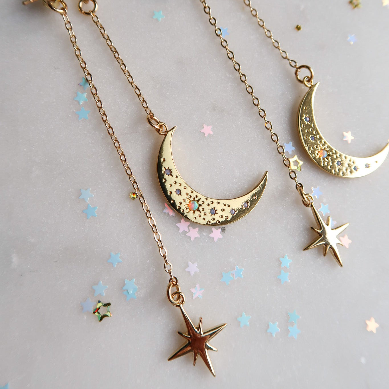 - 2 1/4" Gold-plated Brass Cable Chain to star, 1" to moon