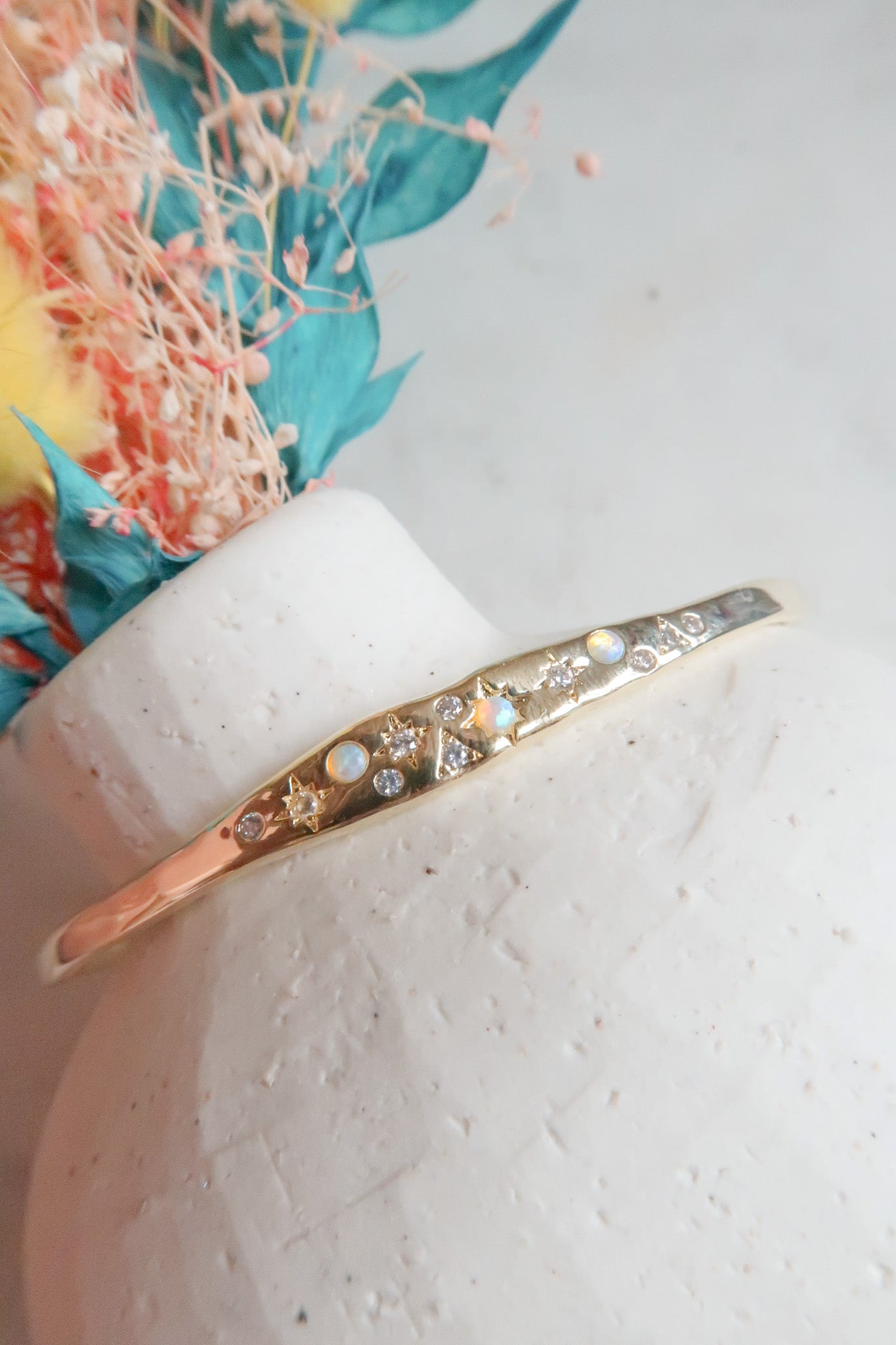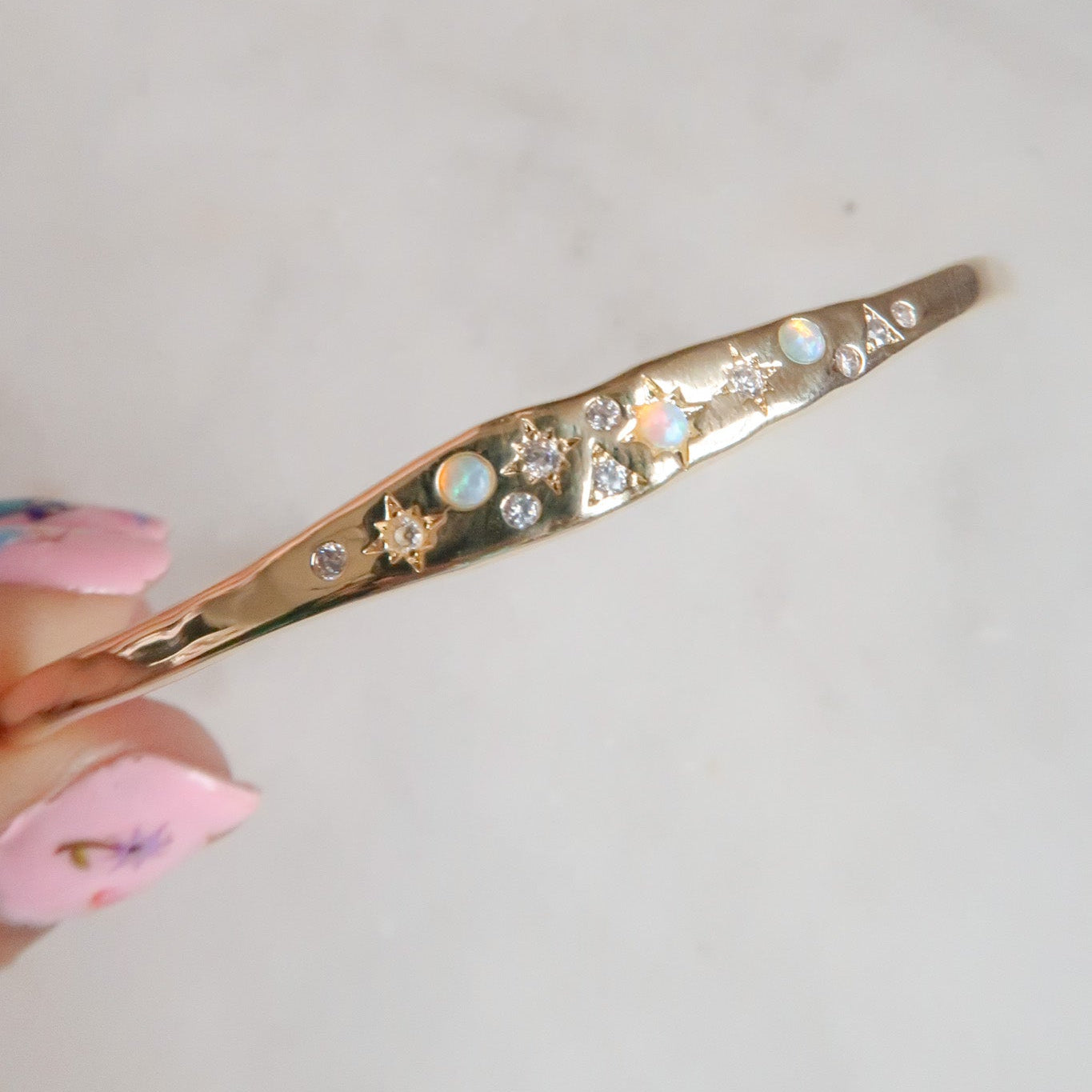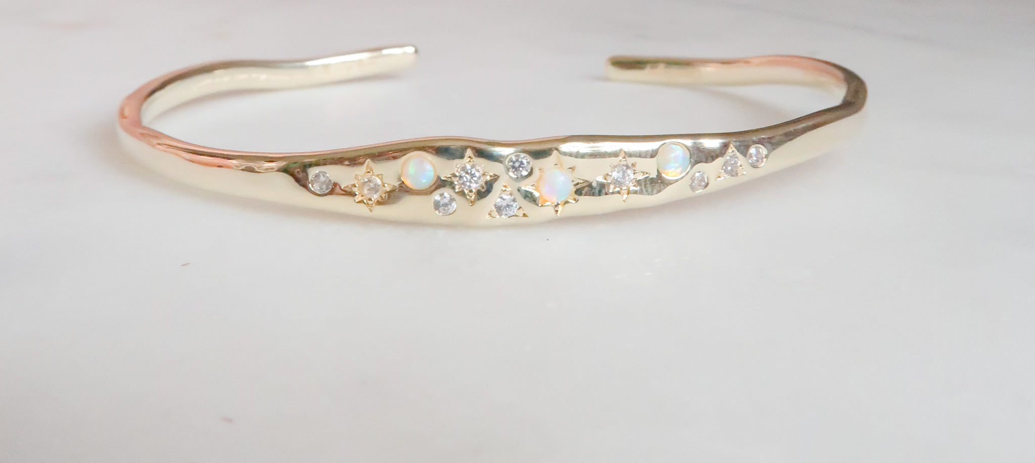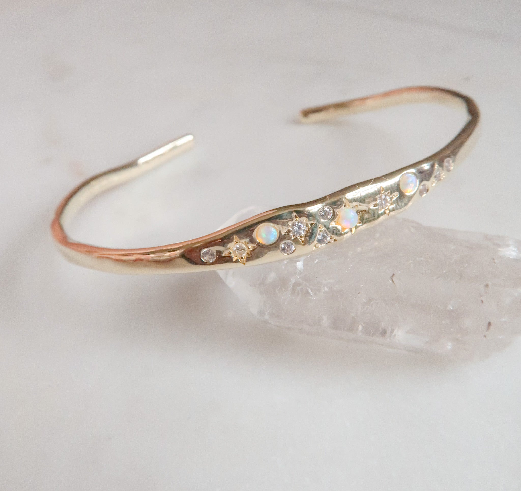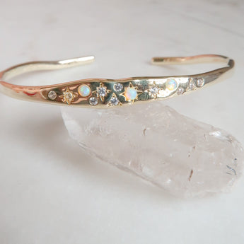 - 14k Gold Plated Brass Celestial Cuff Bangle