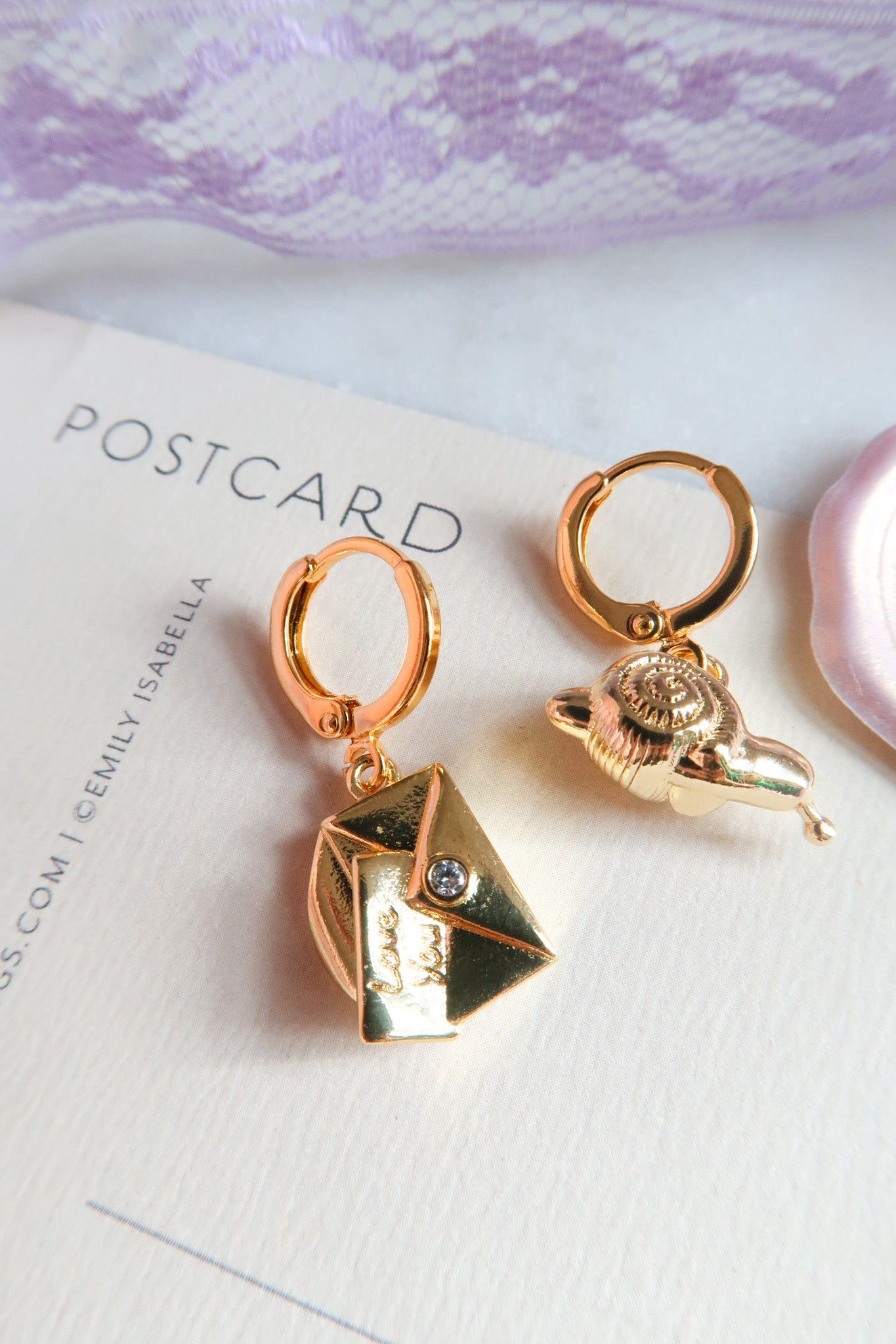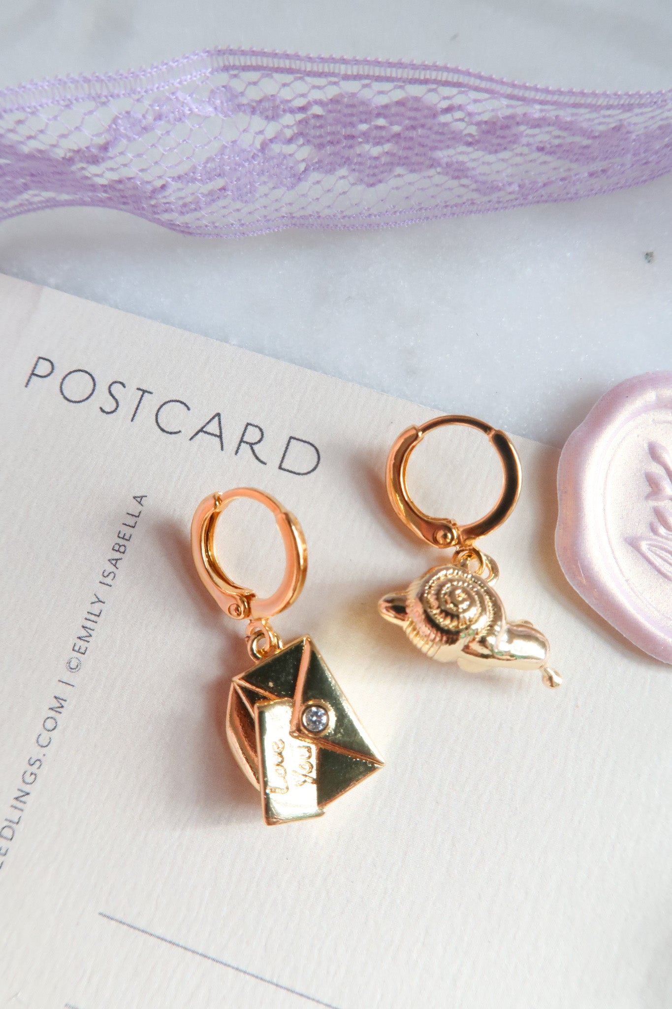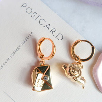Our Snail Mail Huggie Earrings capture the romance of words written slowly and feelings that arrive exactly when they are meant to. One huggie features a tiny wandering snail while the other holds a delicate love letter peeking out of an envelope, creating a mismatched story about patience, longing, and connection that unfolds over time. Designed for sentimental hearts and old soul romantics, these whimsical earrings feel like handwritten confessions tucked into your pocket and carried through ordinary days. Perfect for lovers of cottagecore jewelry, nostalgic accessories, and meaningful pieces that celebrate slow love and thoughtful moments.