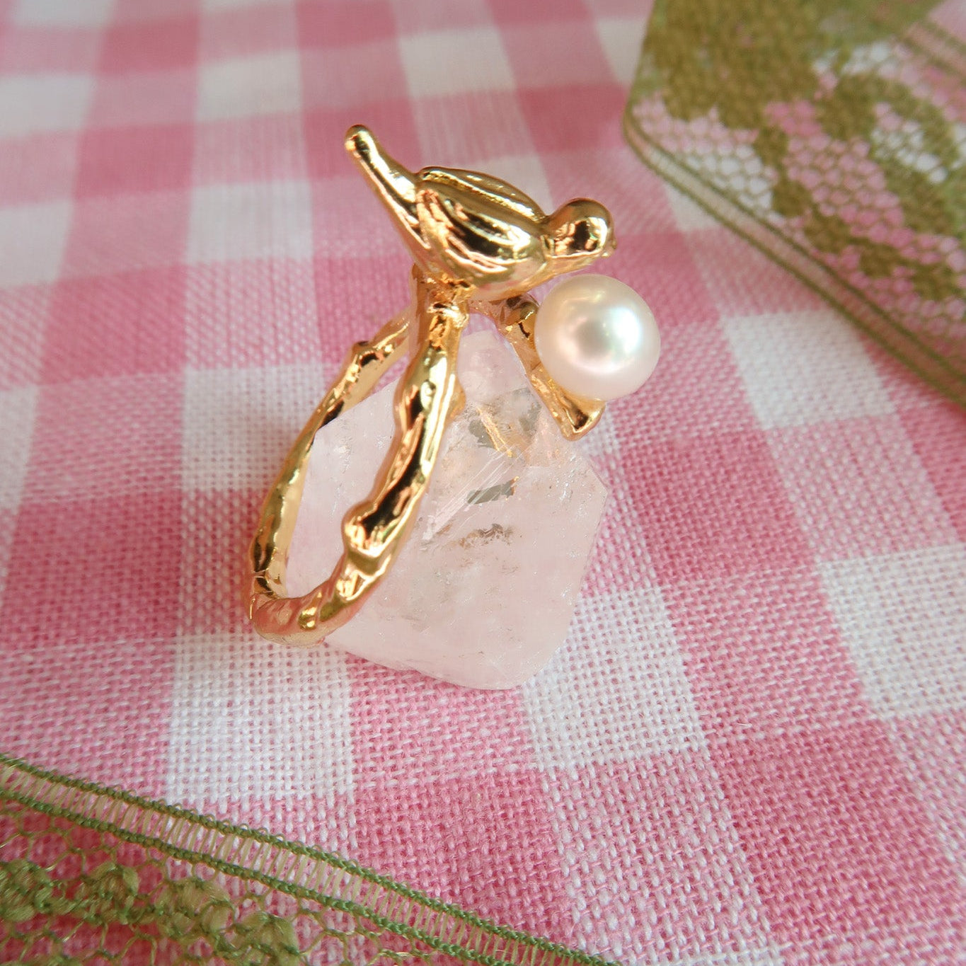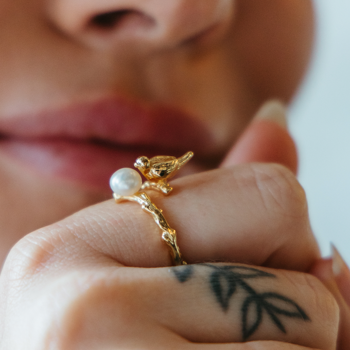 Straight on til Morning is a whimsical ode to the magic of Peter Pan, capturing the thrill of flight and endless possibility. Featuring a delicate bird and a glowing pearl, this adjustable ring evokes starlit skies, secret adventures, and the bittersweet ache of moments that feel both fleeting and eternal. Perfect for dreamers, romantics, and those who carry wonder in their hearts, this ring is a poetic reminder to chase the horizon and follow the stars wherever they lead.