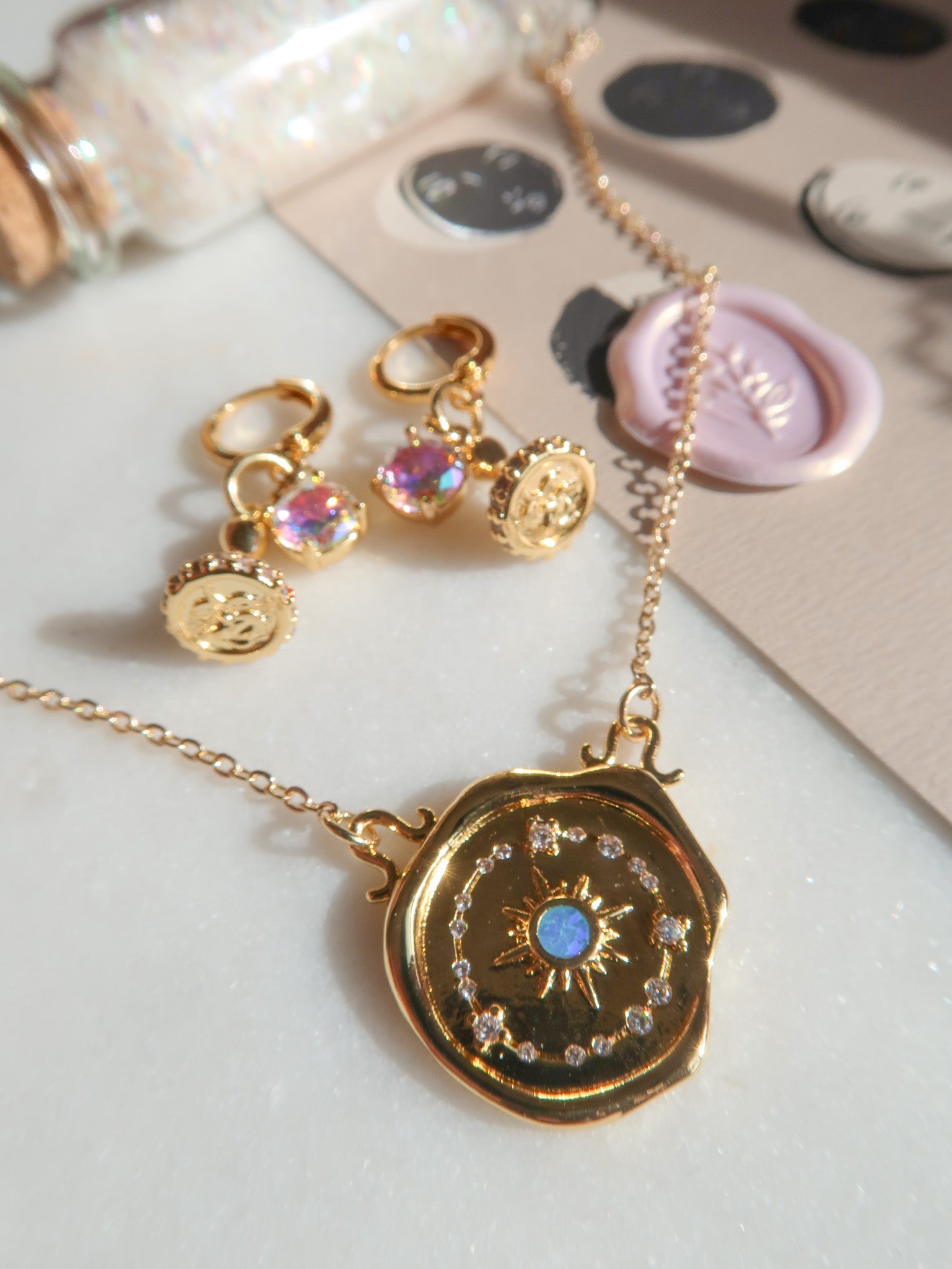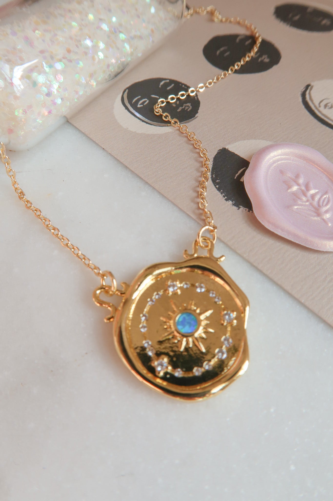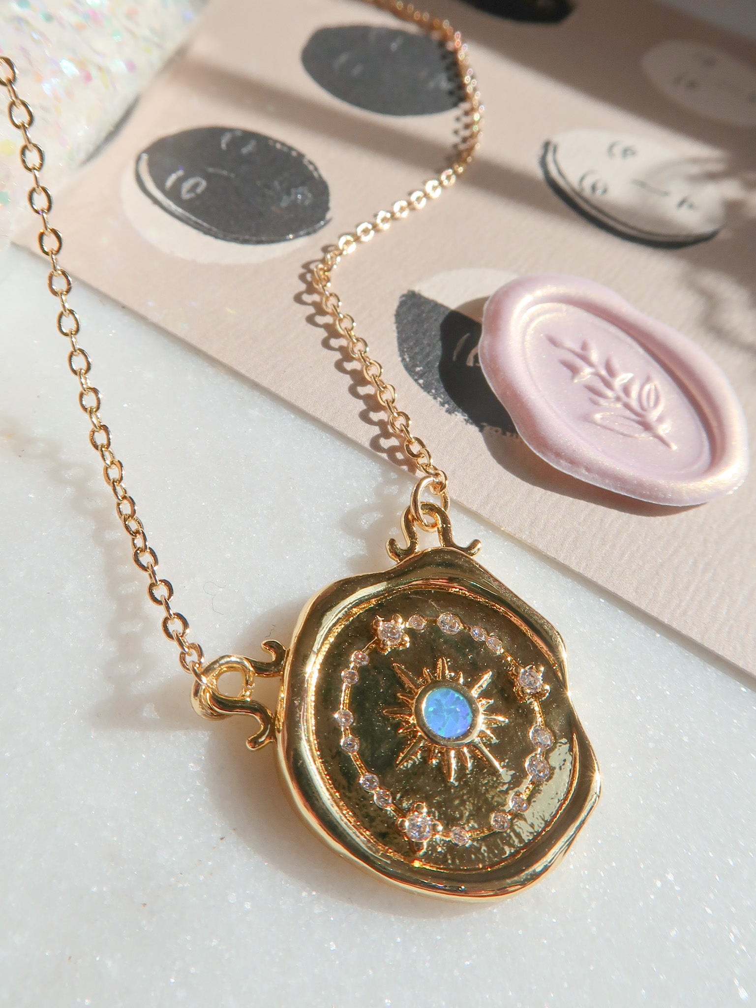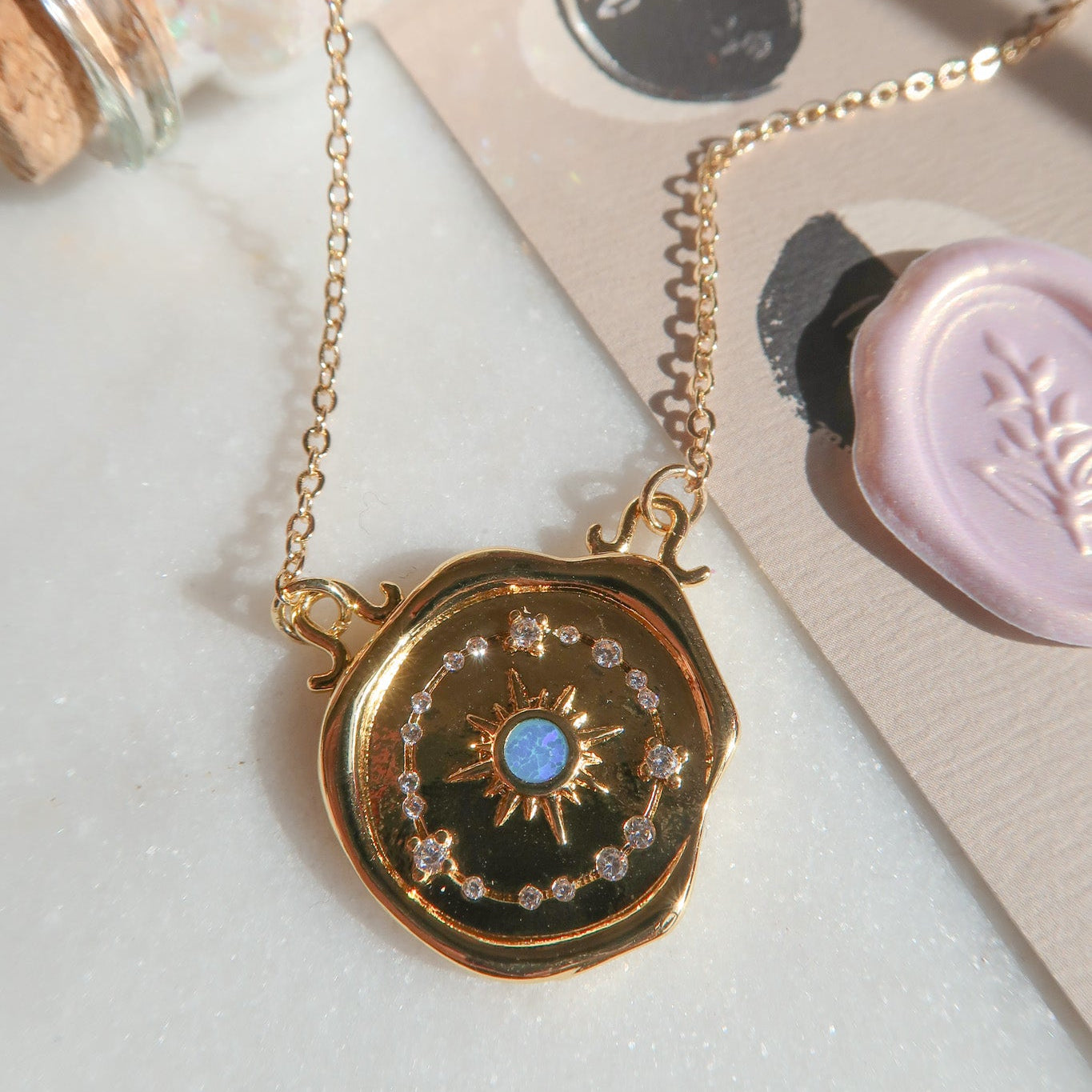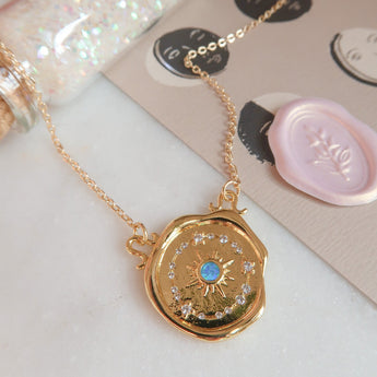 - Gold Filled Celestial Blue Opal Wax Seal Charm