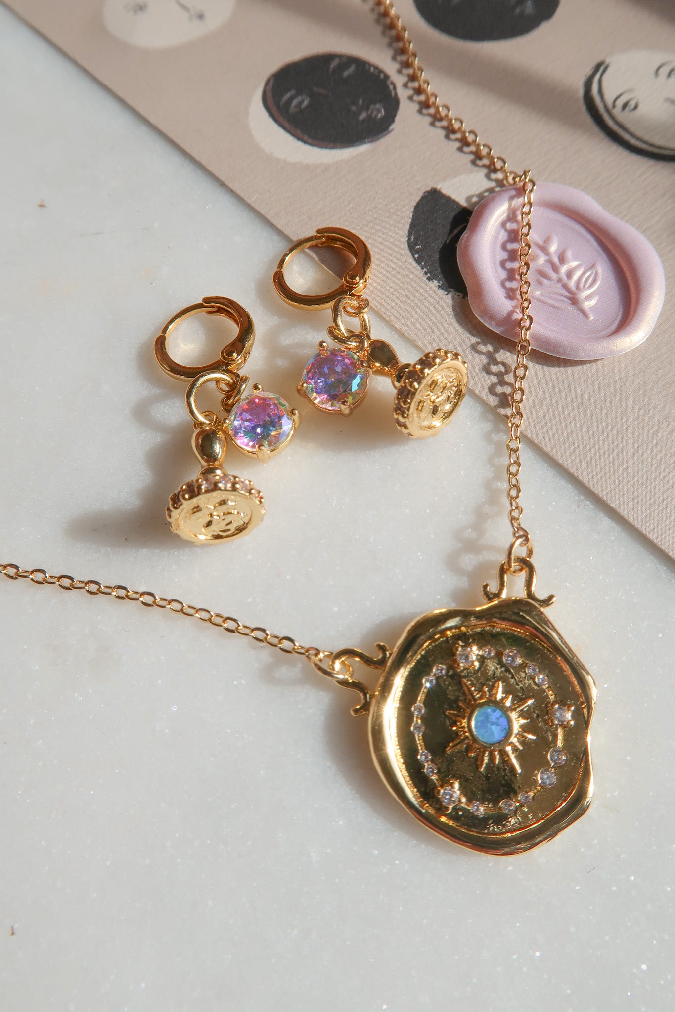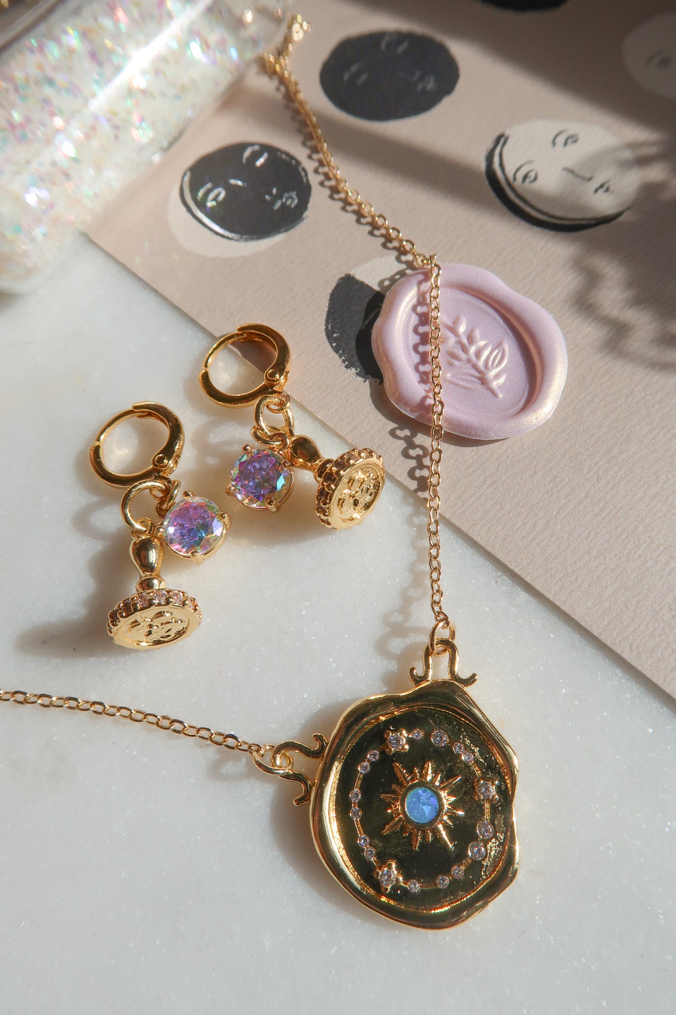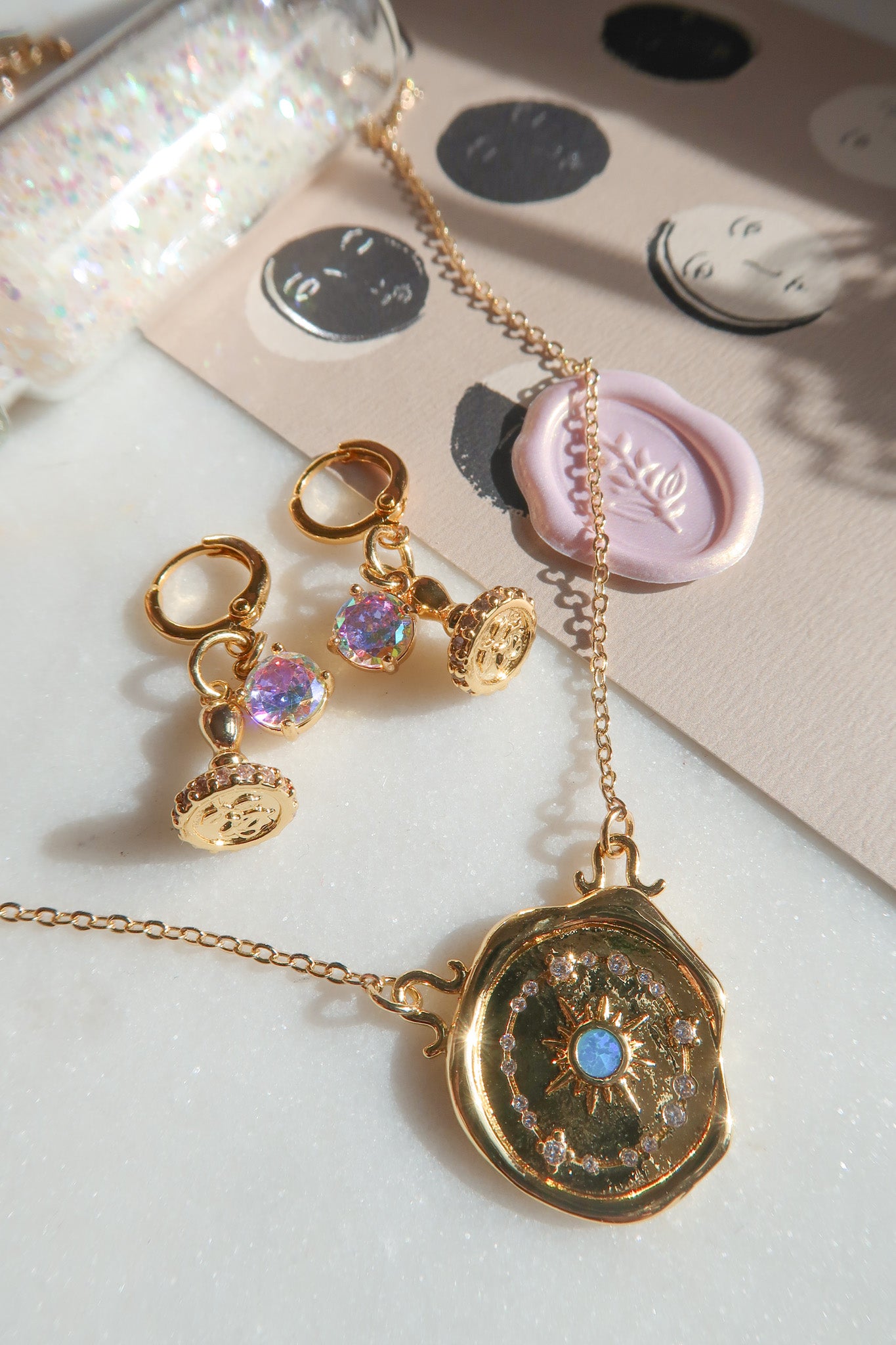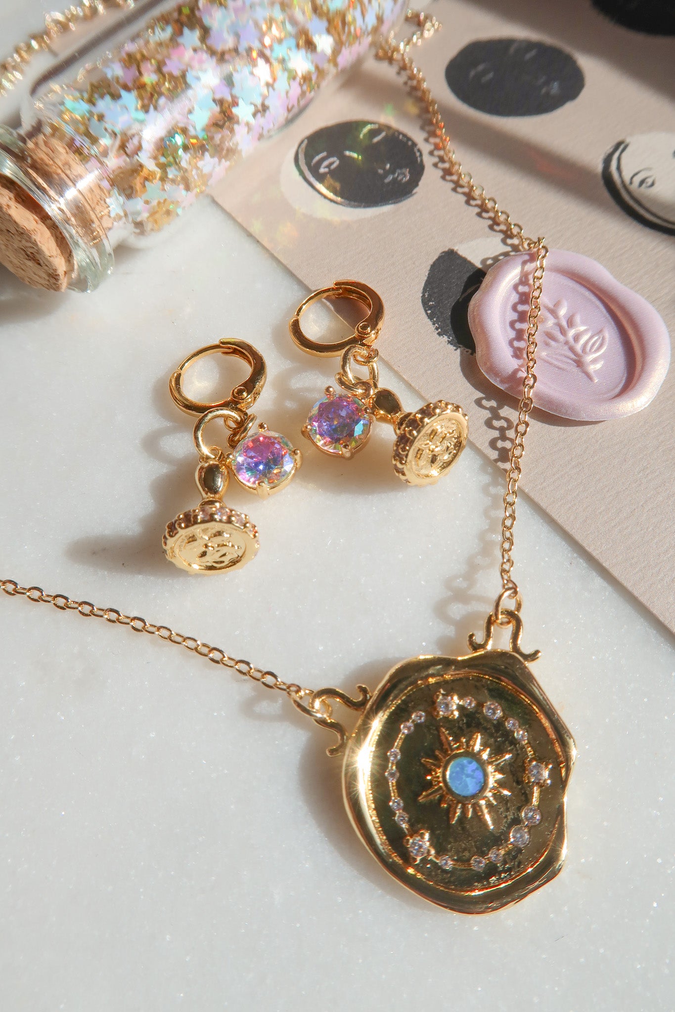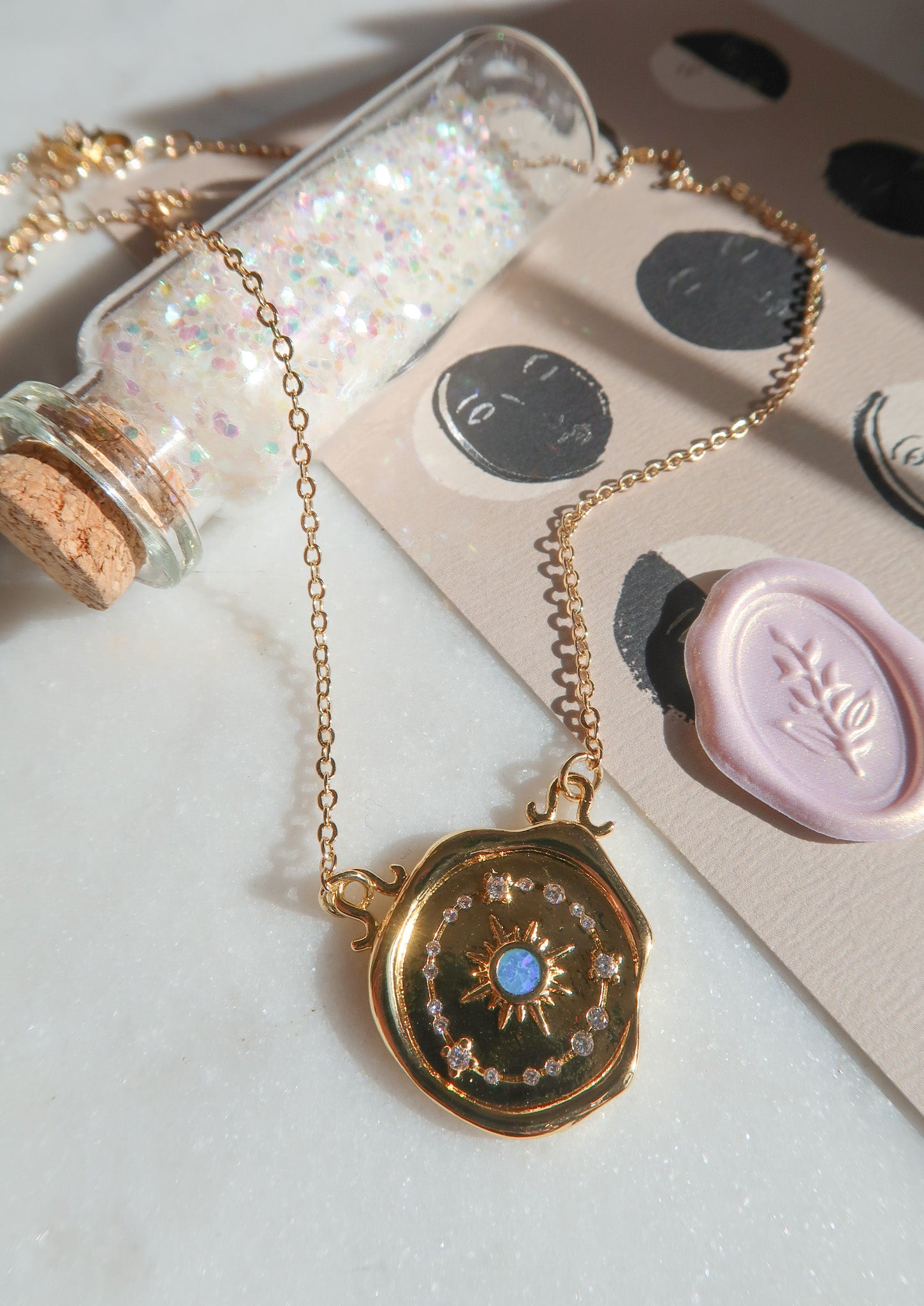 - Gold Filled Celestial Blue Opal Wax Seal Charm