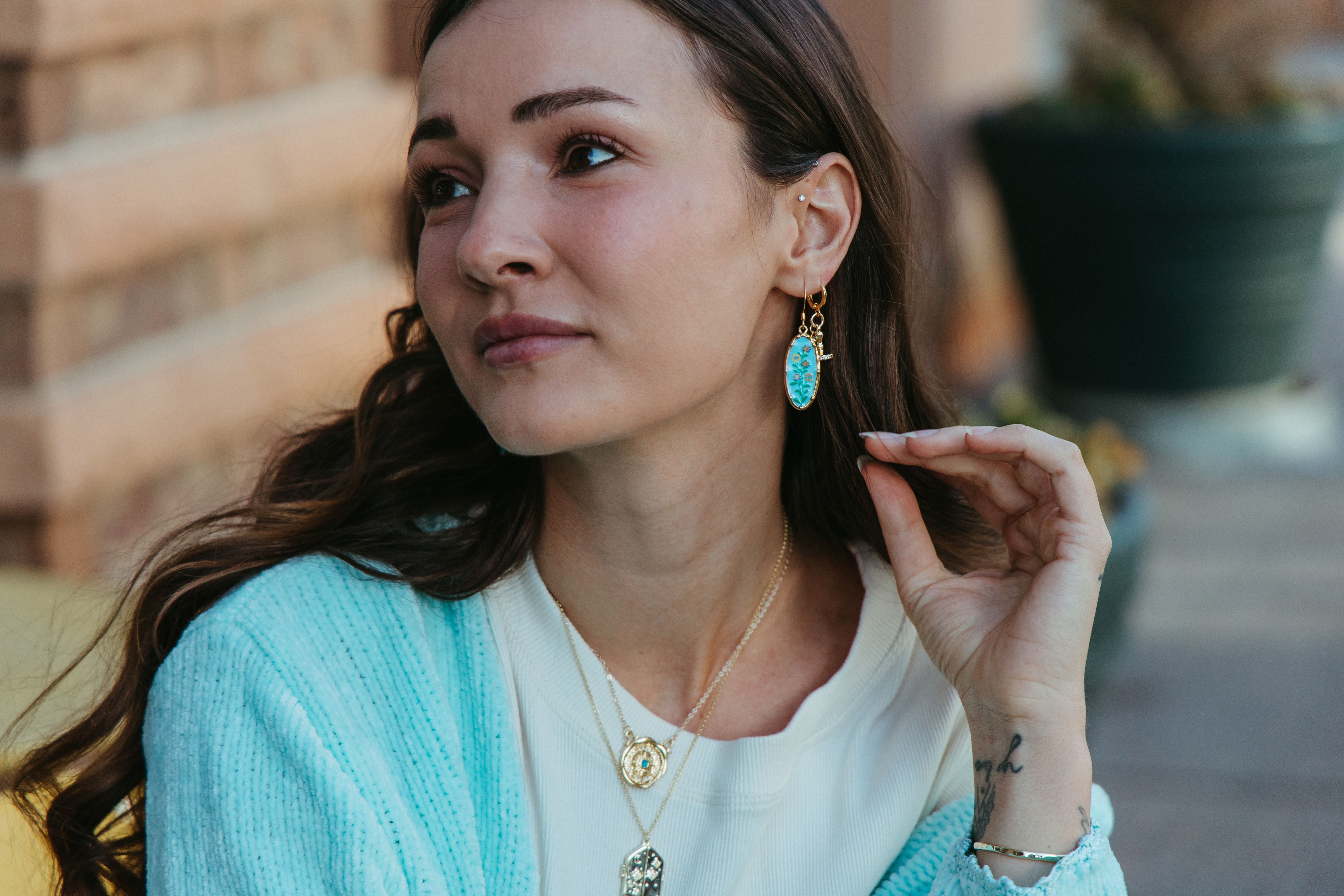 Our To Future Me Wax Seal Charm Necklace is a promise sealed for dreamers who write letters to the versions of themselves still becoming. At the center rests a glowing blue opal framed in a vintage inspired wax seal charm, symbolizing words left unsent, hopes carried forward, and the courage to believe in tomorrow even when today feels uncertain. Softly nostalgic and deeply personal, this meaningful opal necklace feels like a keepsake pulled from a journal page or a memory box filled with half written dreams. Designed for sentimental souls, writers at heart, and lovers of poetic jewelry that holds intention, reflection, and gentle hope close to the skin.