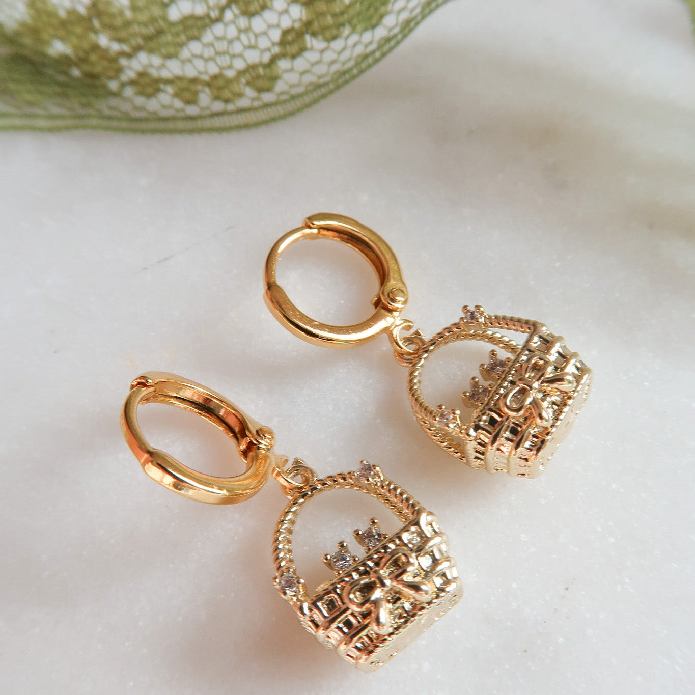 - Gold Filled Cubic Zirconia Picnic Basket Charm x 2